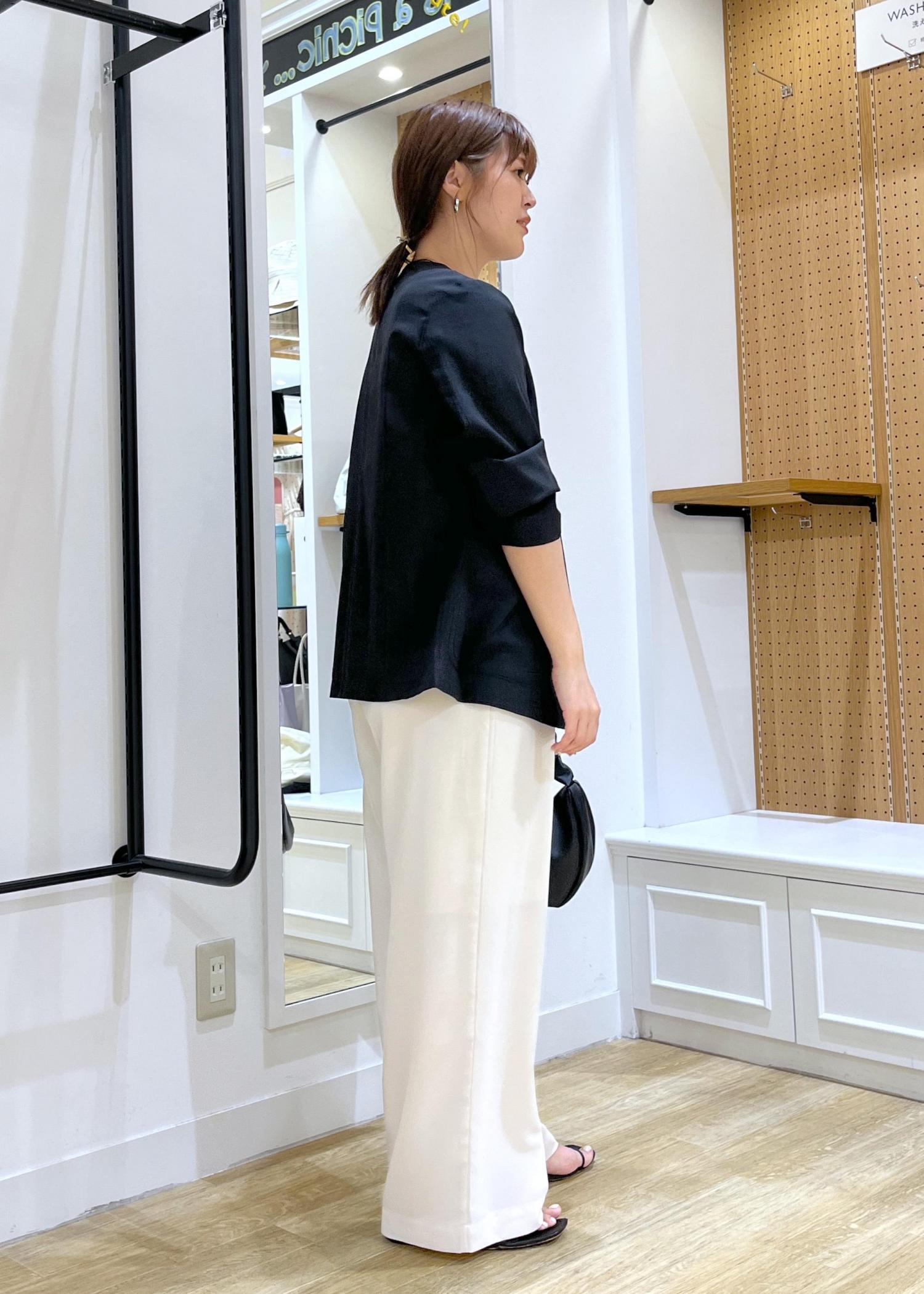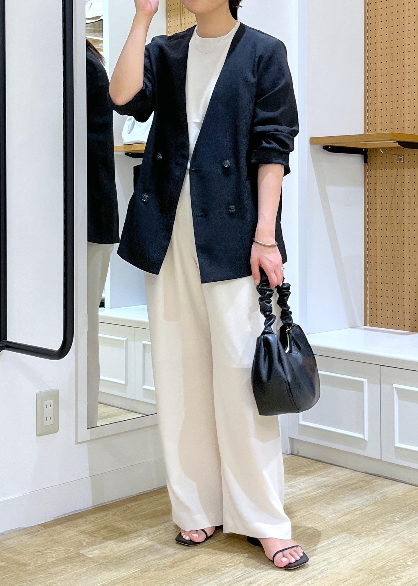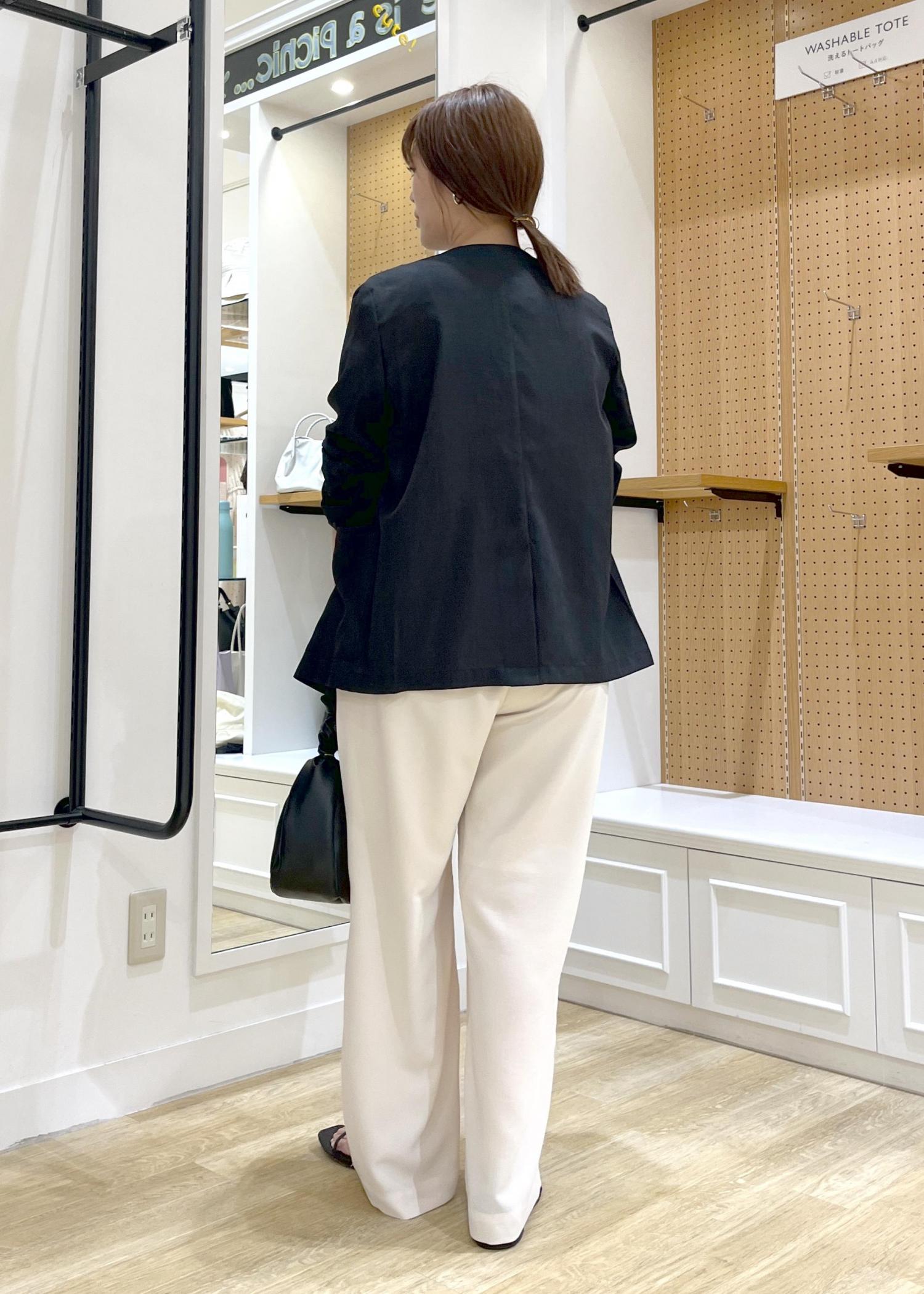 涼しく着れる麻調ジャケットを使ったお仕事コーデです。