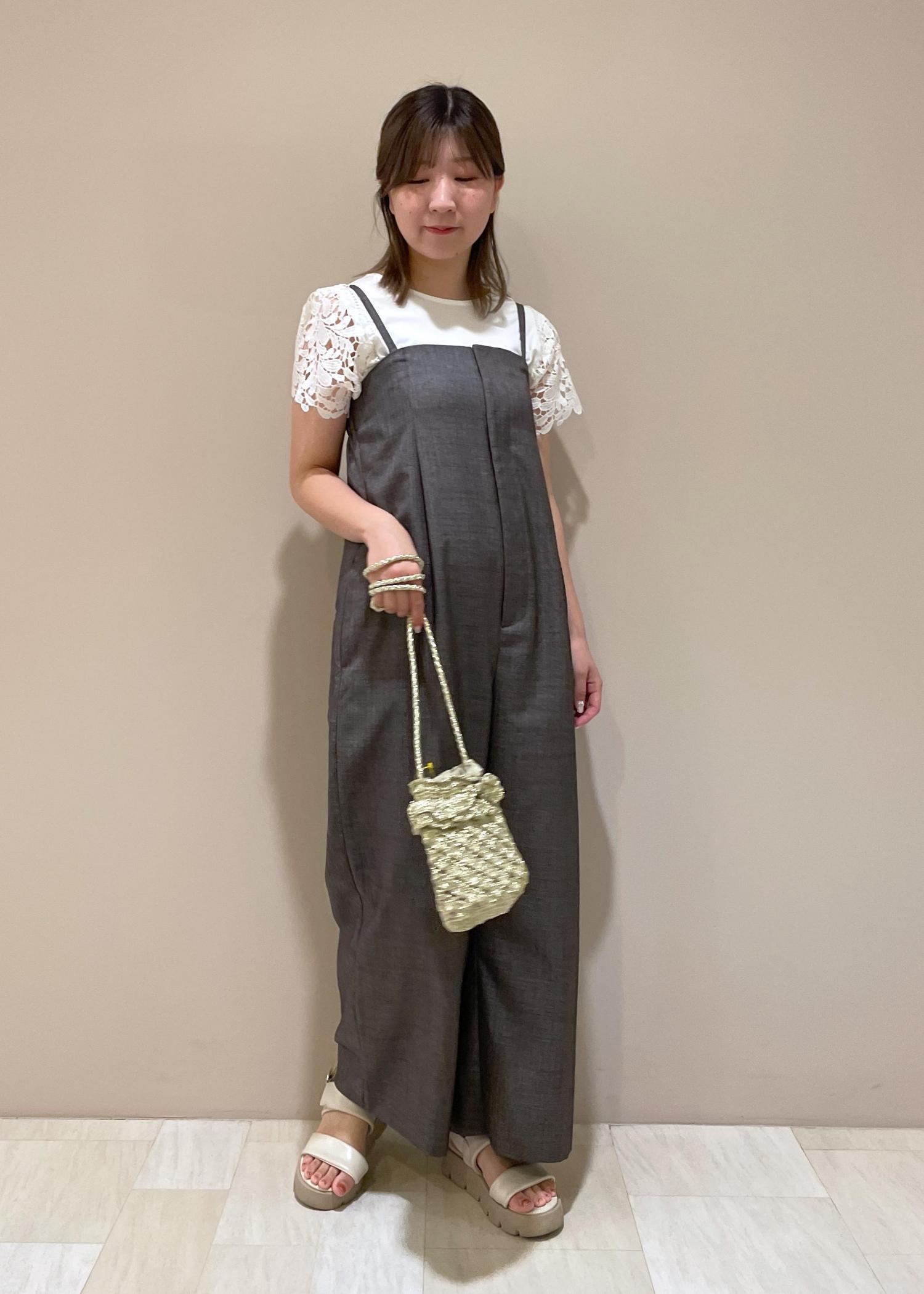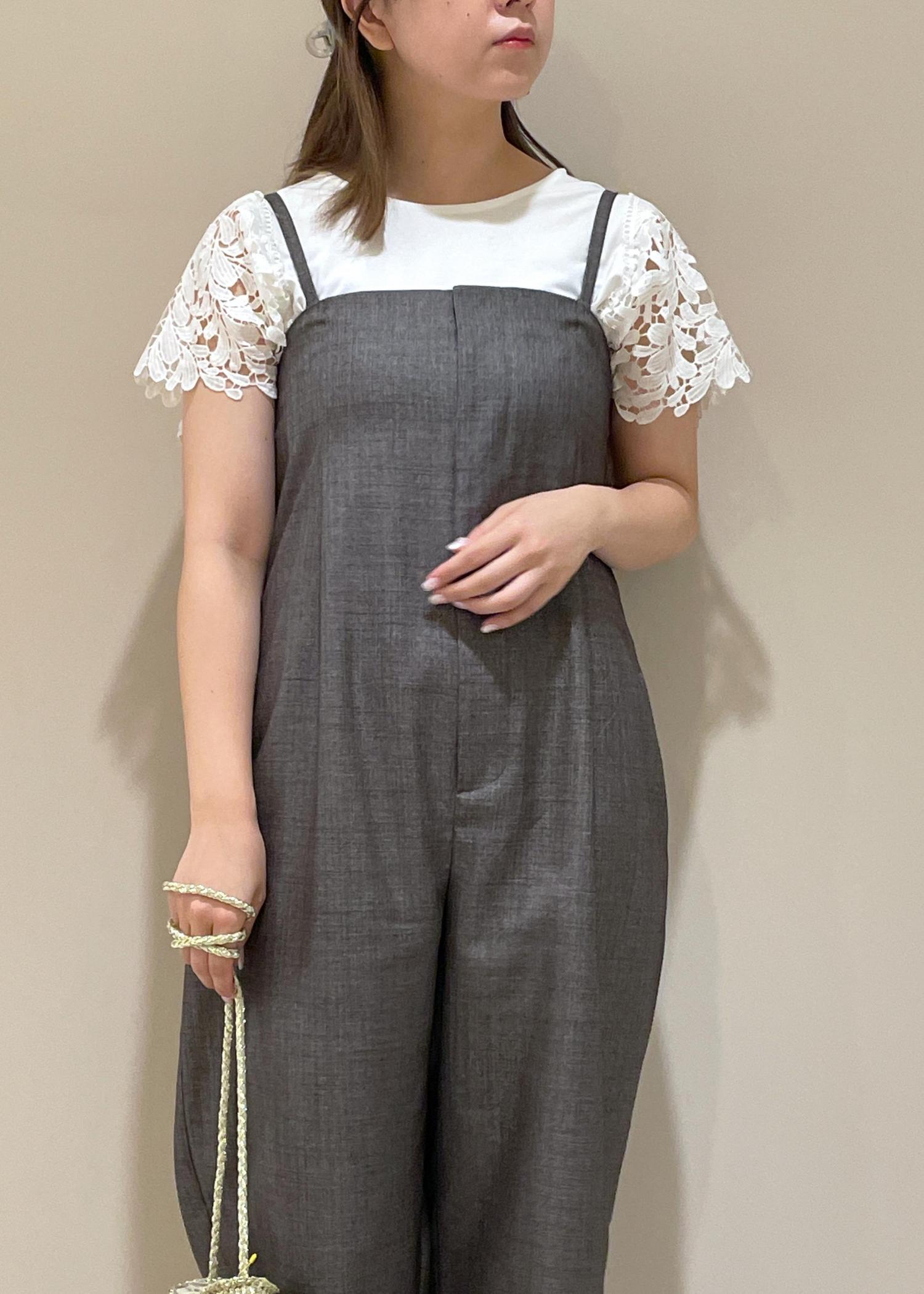 袖レースのトップスと合わせて涼し気な印象に。