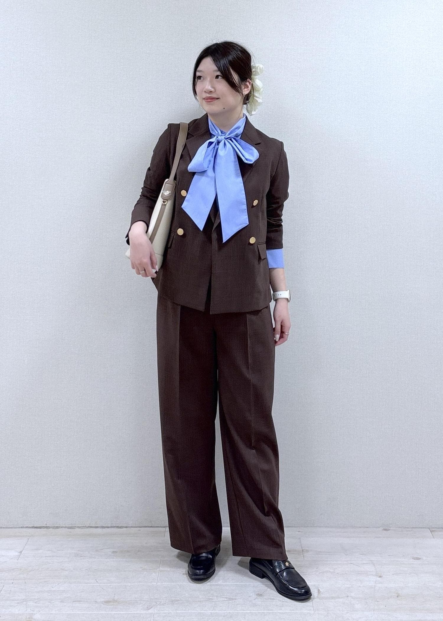 コンパクトなカーデを合わせて、スッキリ見えるスタイリングにしました◎
