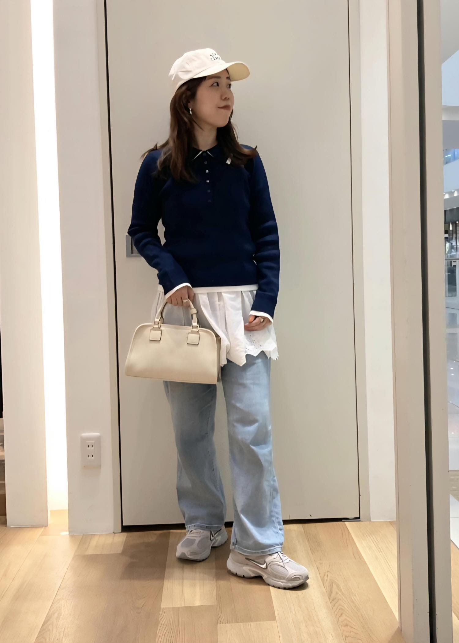 差し色で黄色のバッグでアクセントに。