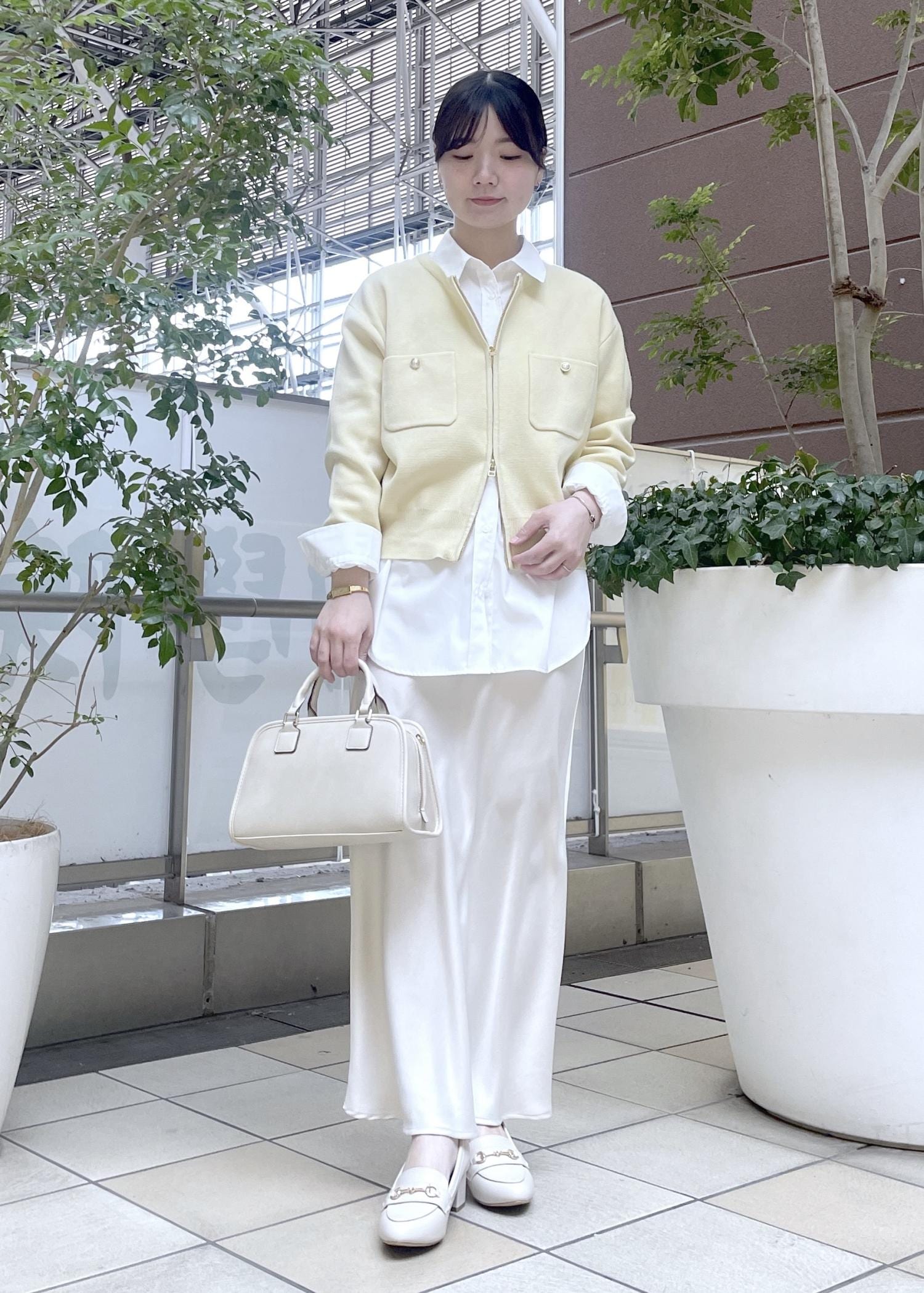 胸元は高めなのでデコルテも開き過ぎず合わせやすいです。