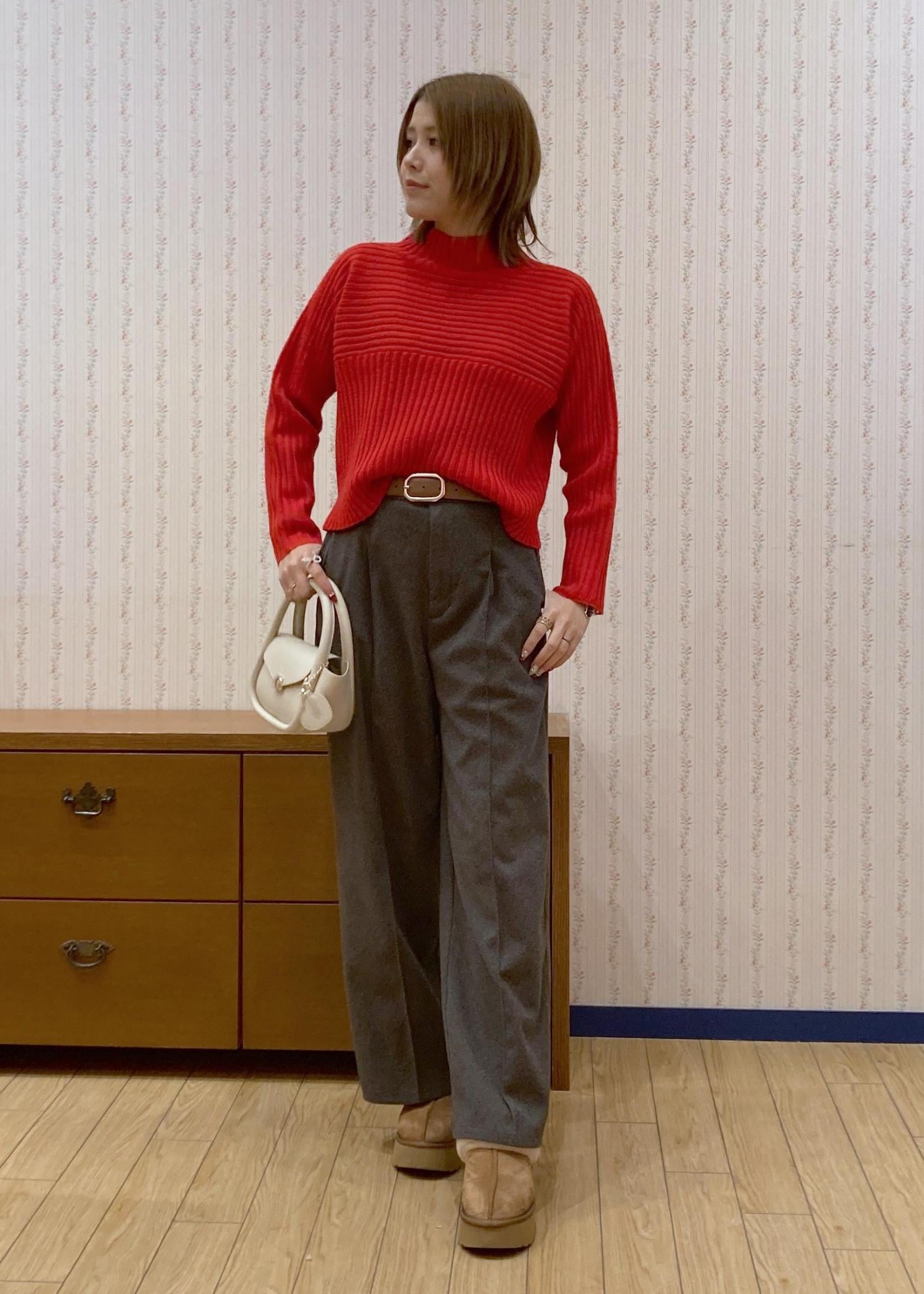全体的にゆるっとしたシルエットなので、トップスは前だけインしてウエストマークするとスッキリ見えます!