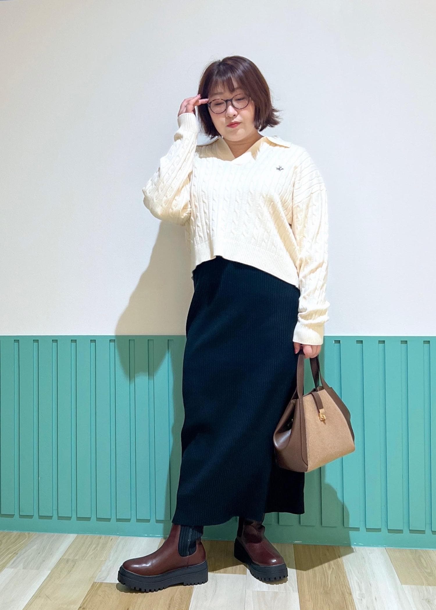 ナロースカートを合わせ大人ヘルシーなコーデに仕上げました。