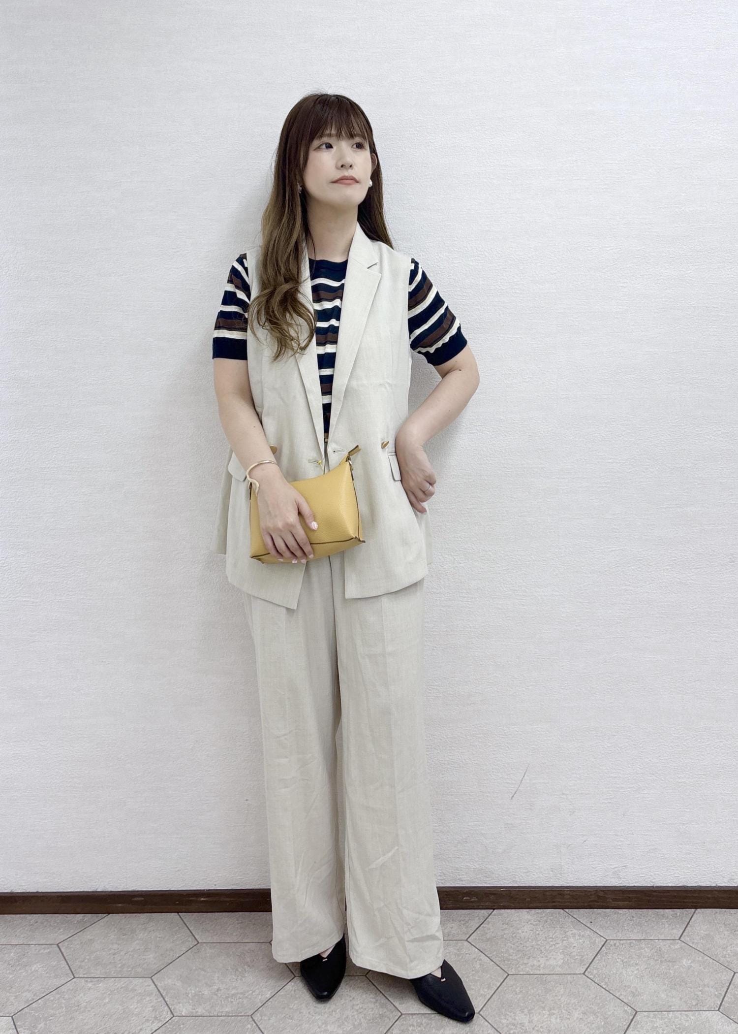 ニットは、肩部分の幅をもたせたゼロスリーブでノースリーブに抵抗ある方でも挑戦しやすいアイテムになっています。