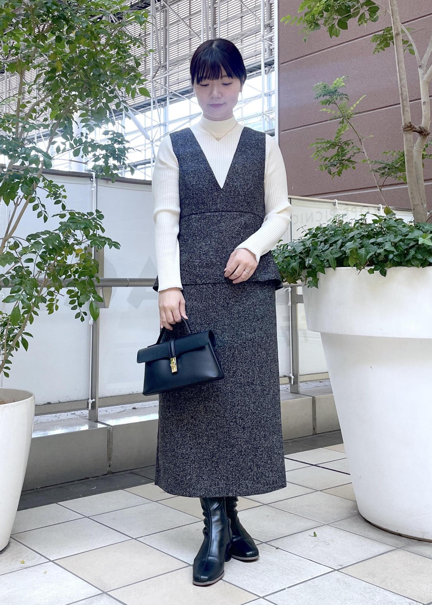 全体をモノトーンでまとめて大人カジュアルな着こなしにしました。