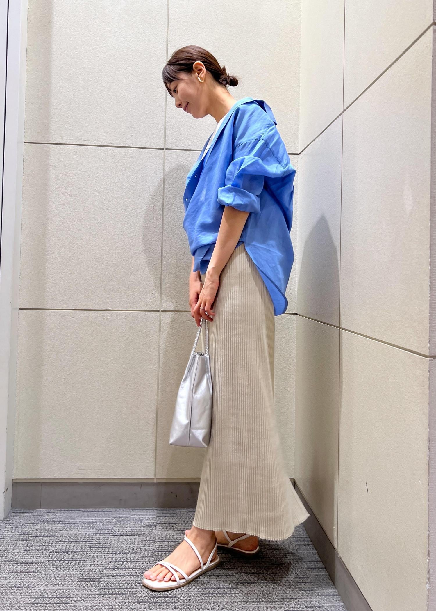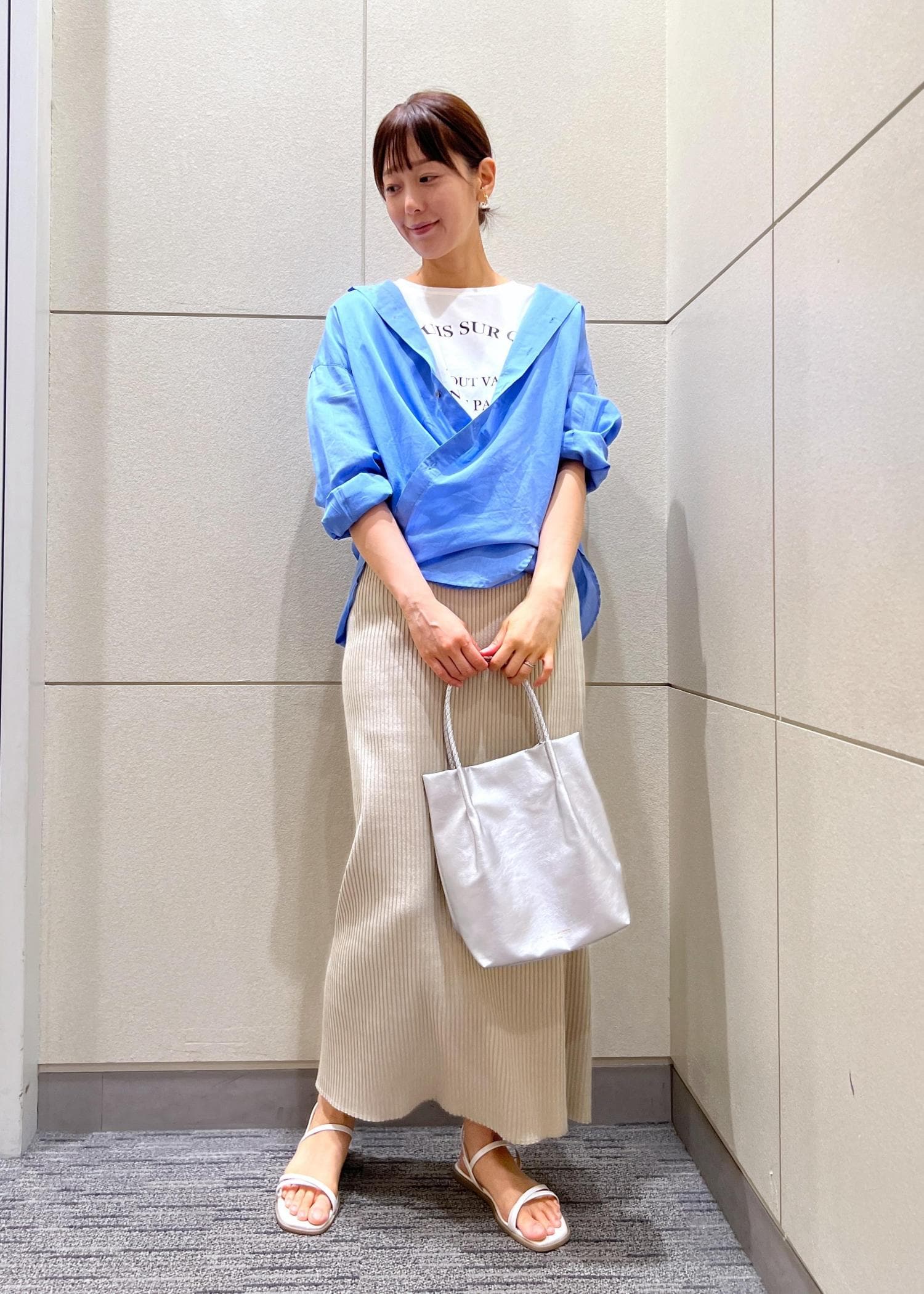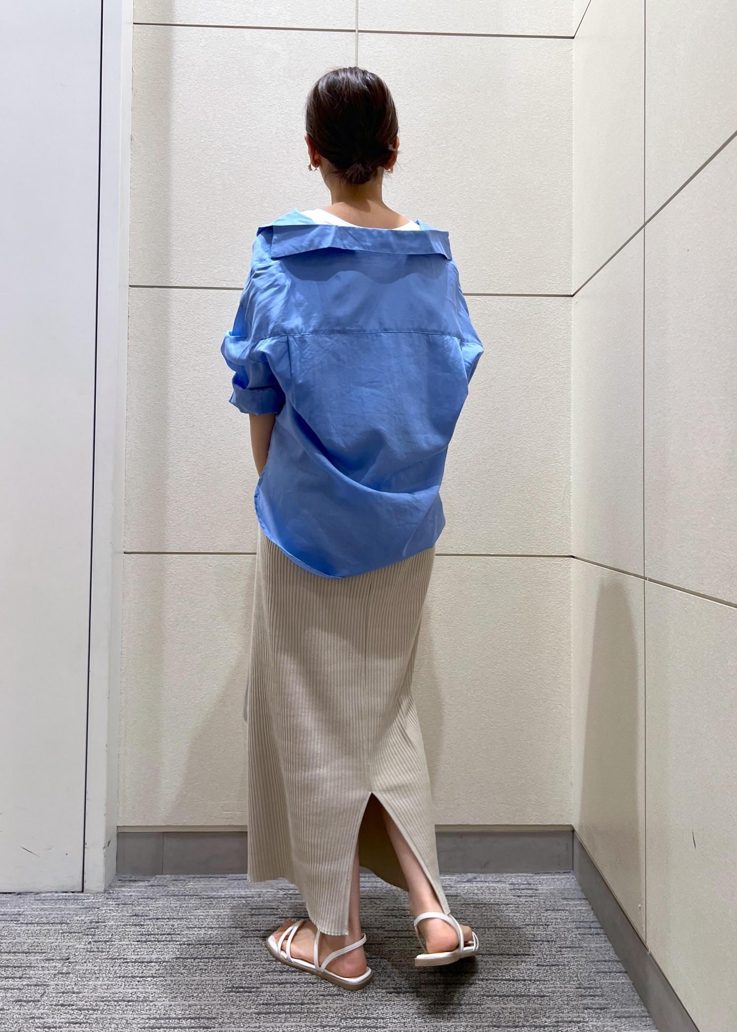 シルク混のカジュアルシャツは2way仕様になっているので、カシュクールにしても羽織にしても◎