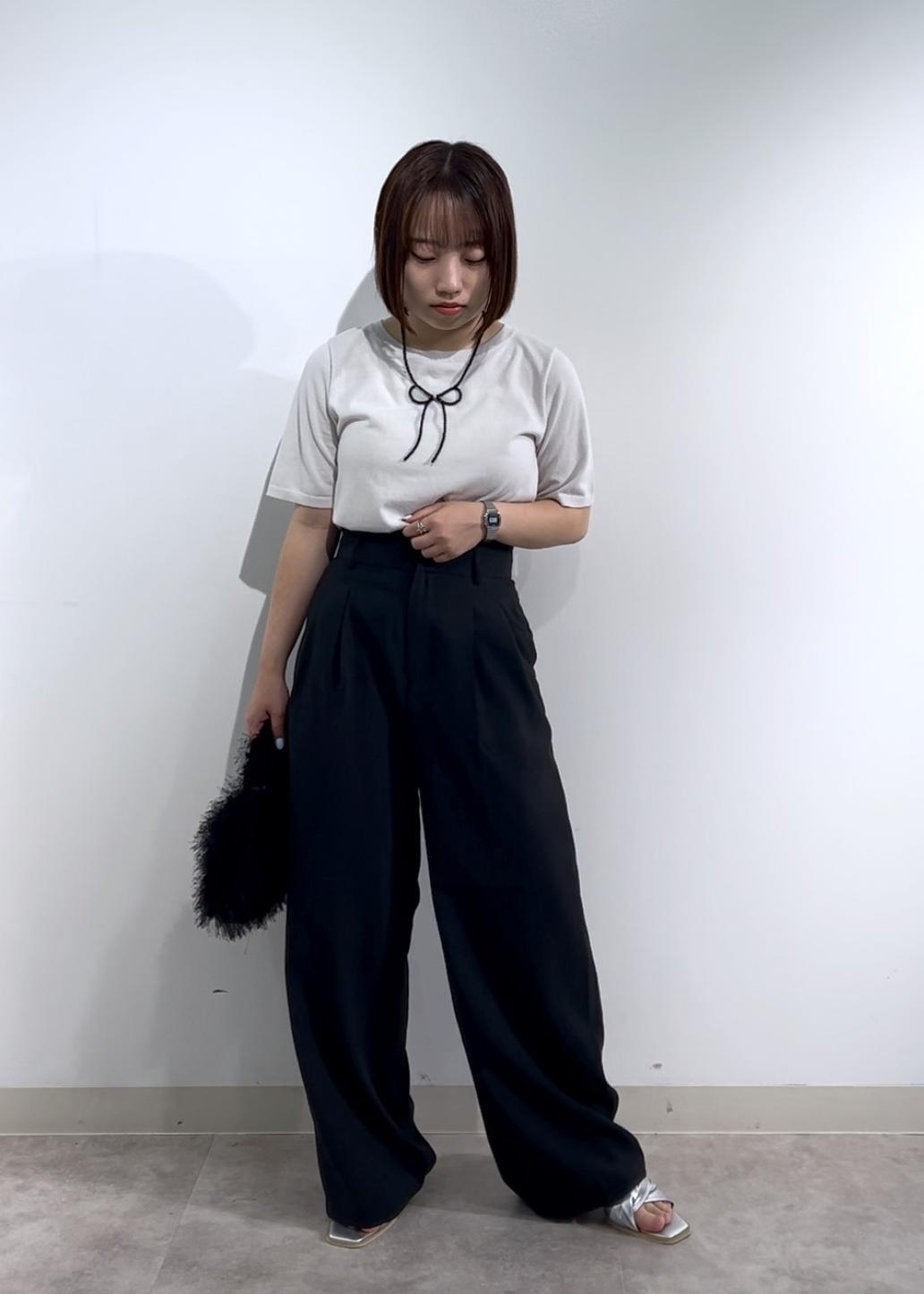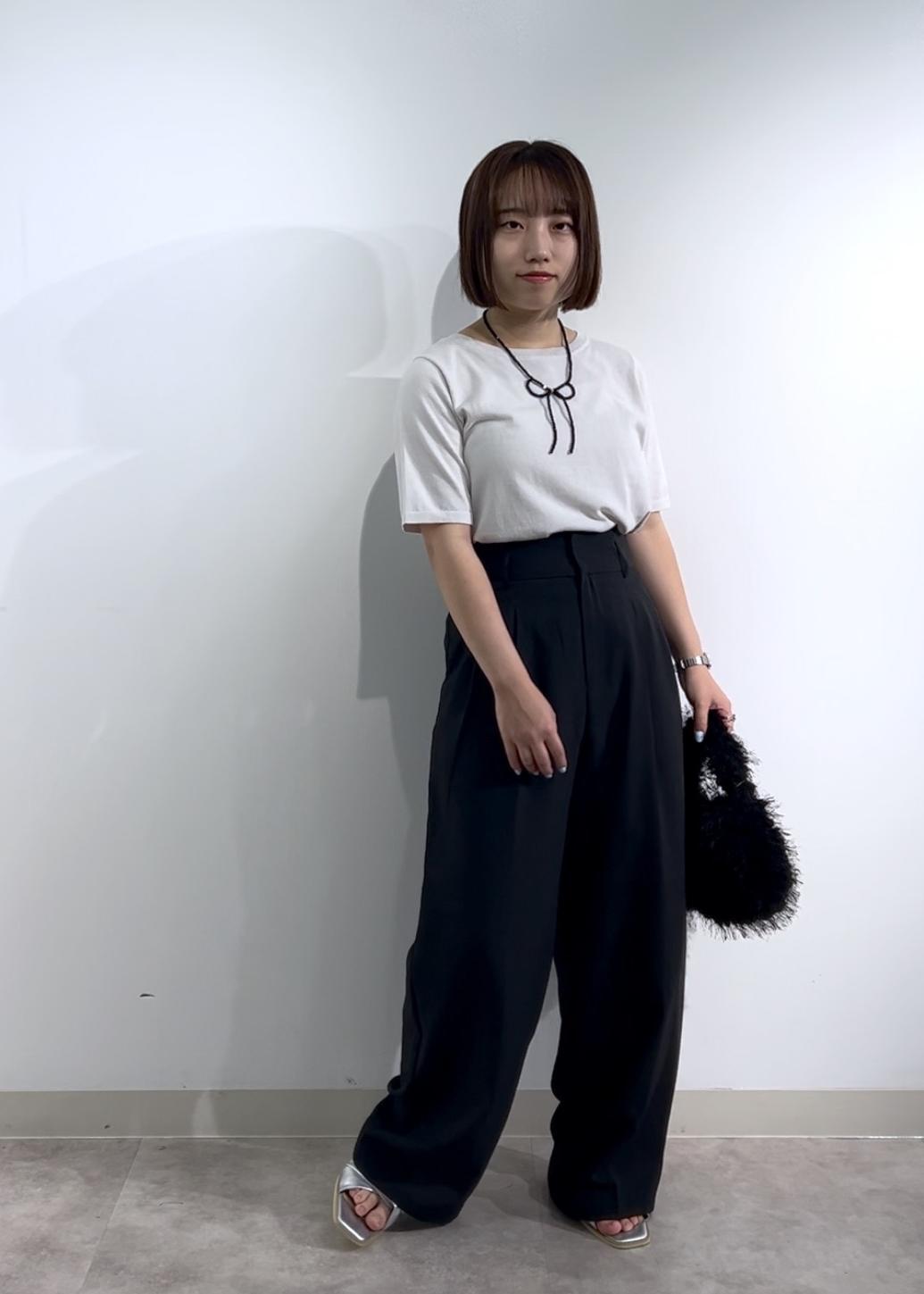シンプルめなコーデですが、ネックレスやバッグを存在感のあるものにしてバランスをとりました。