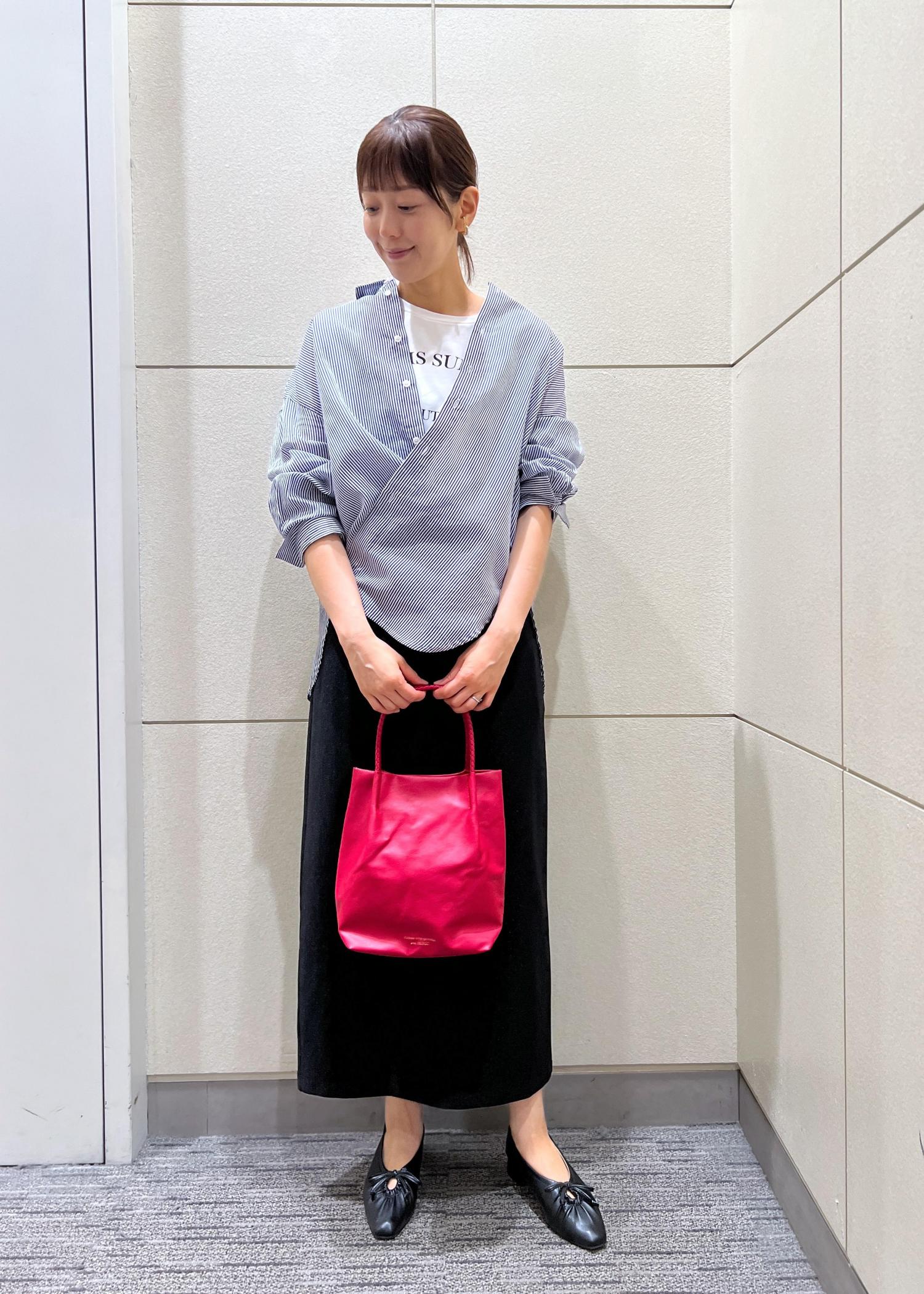 ラメが散りばめられたIラインシルエットはとても万能な1枚です