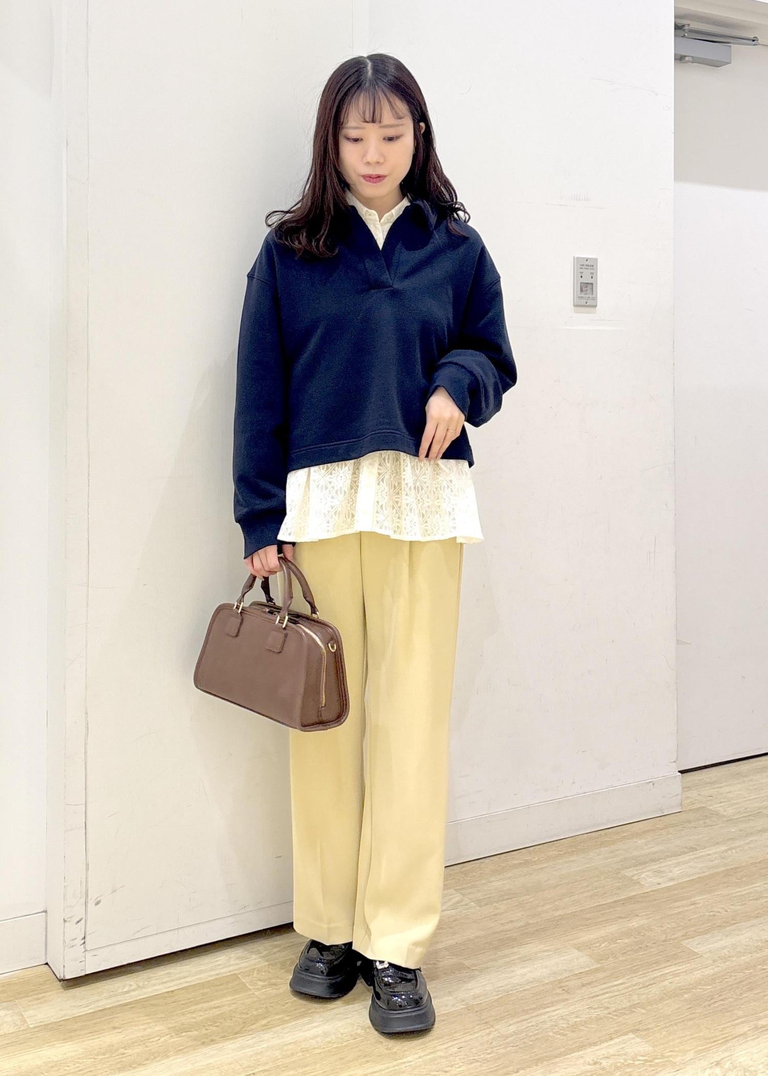 フリルのショルダーを合わせることで、メリハリ+可愛らしさが出てパジャマ感が無くなりますよ◎
