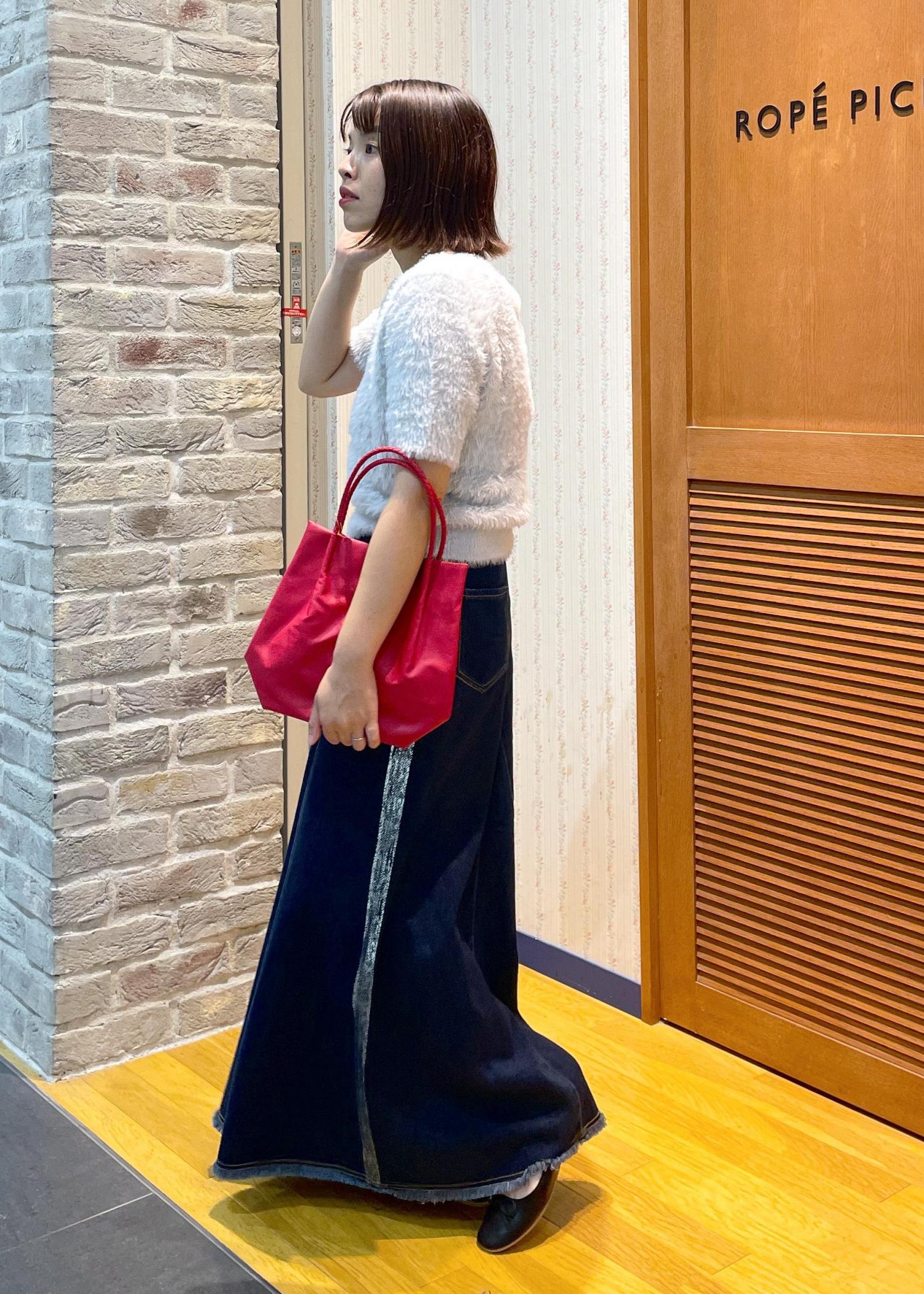 ベーシックカラーのコーディネートだったので、赤のバッグを差し色に合わせました◎