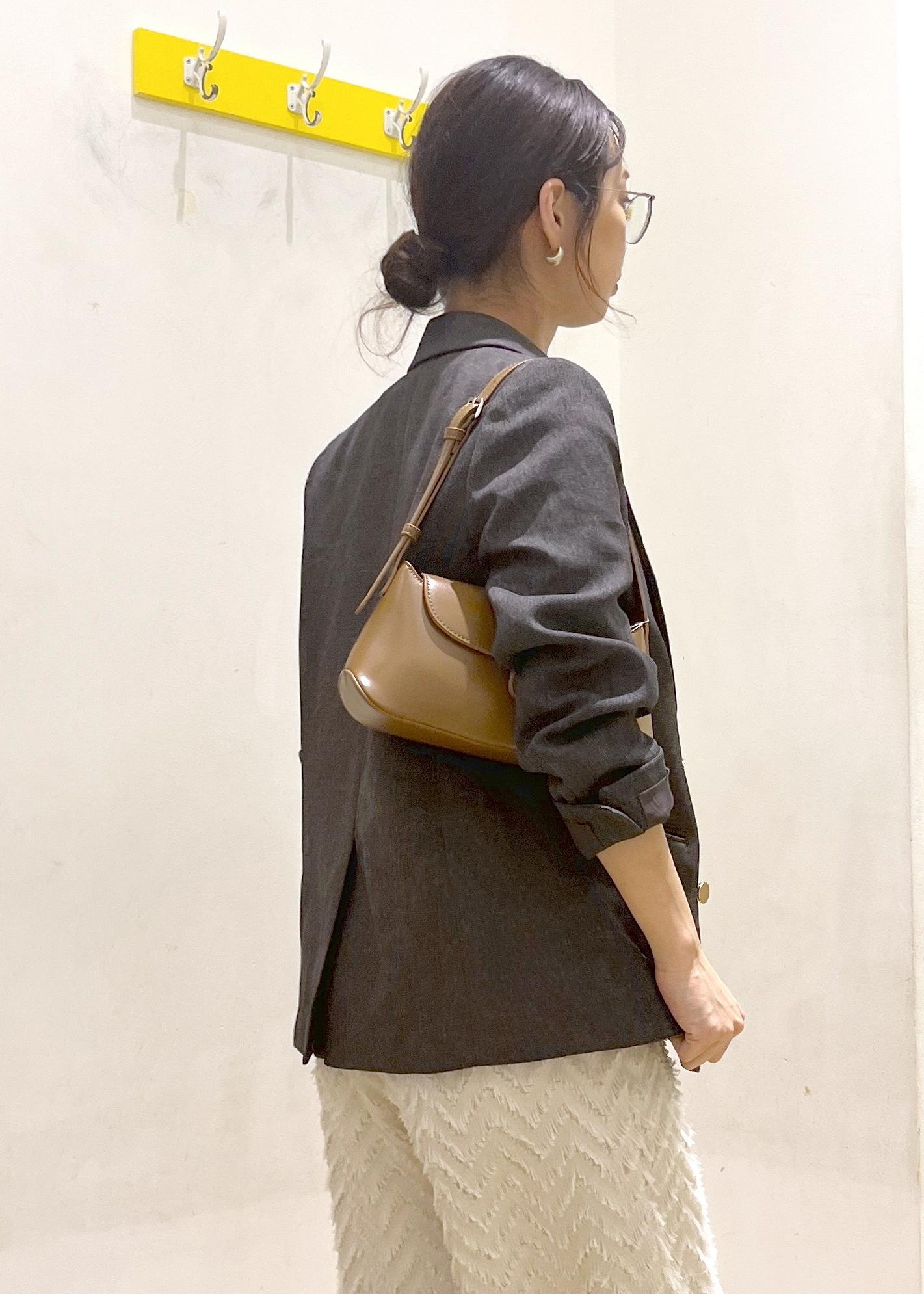オンオフ使えるアイテムですが今回はカジュアルに着崩してコーディネートしてみました。