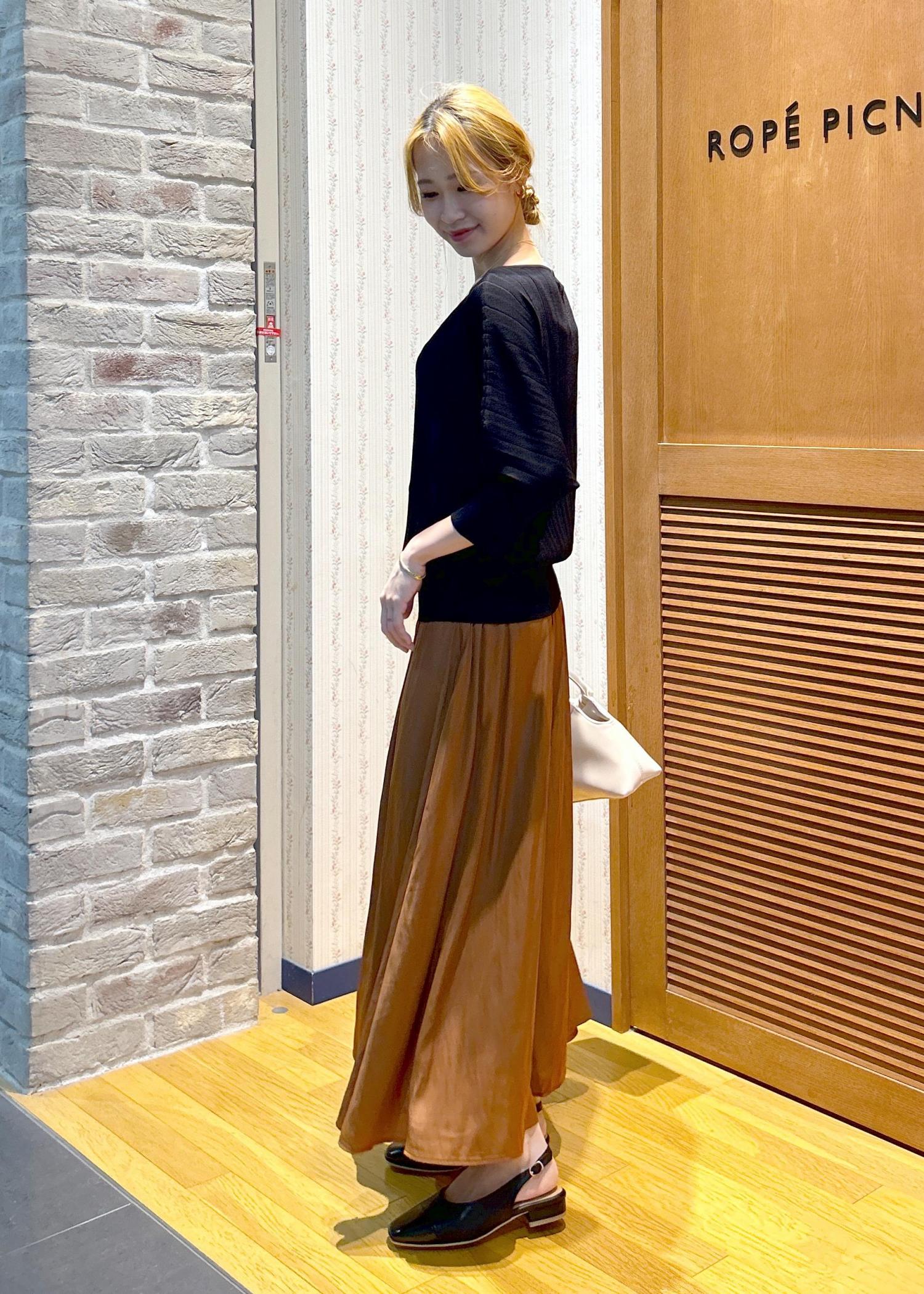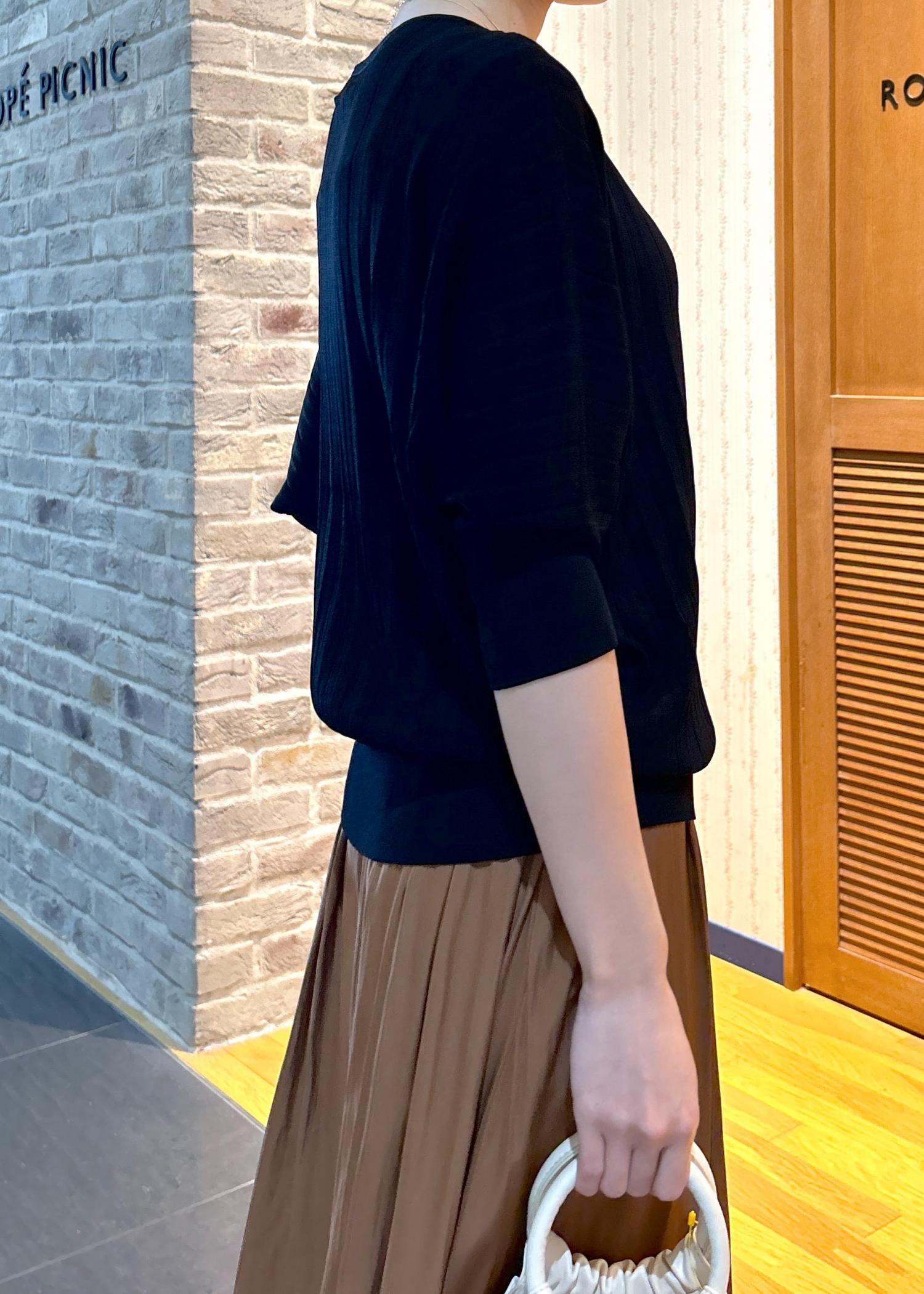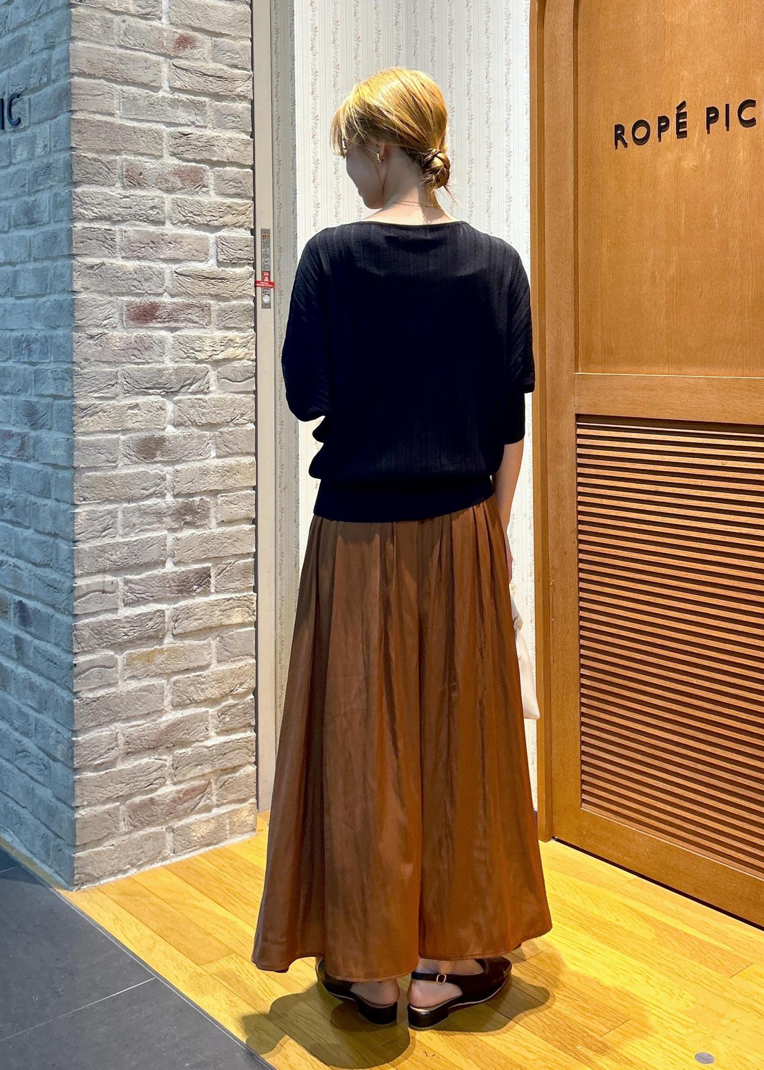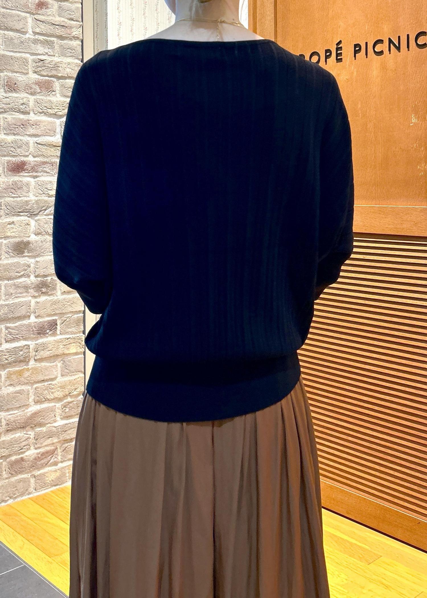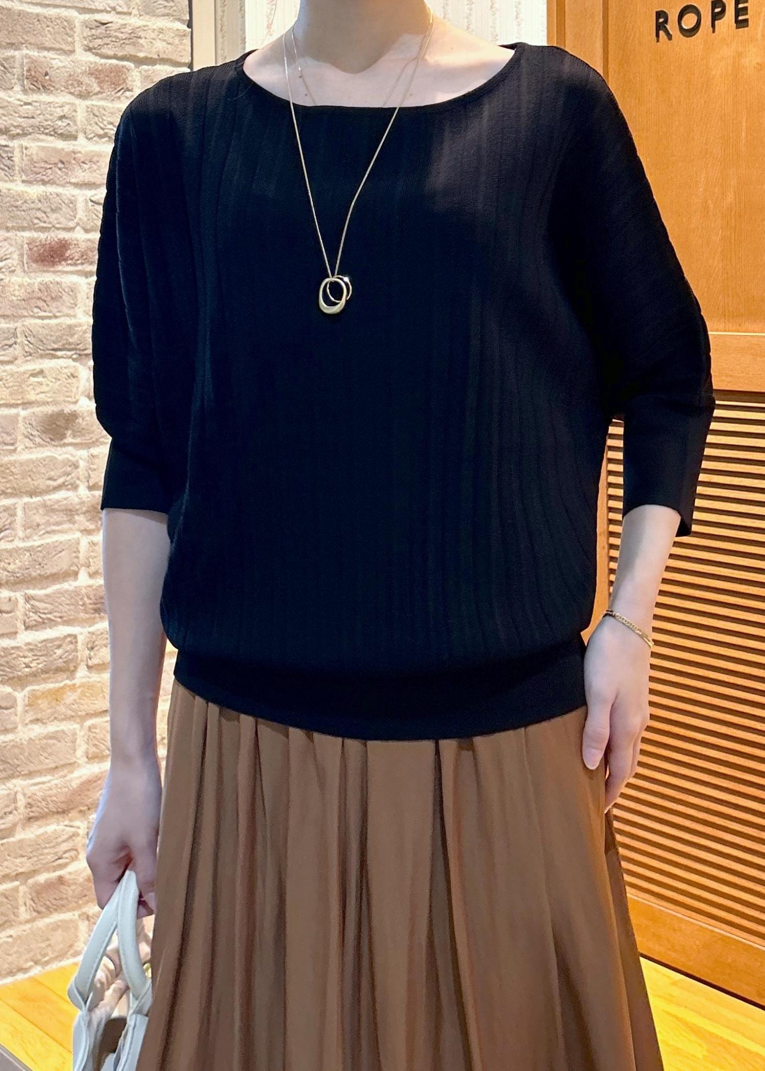 ゆったりしたドルマンニットにブラウンのパンツで今から秋まで着られる秋スタイリングにしました。