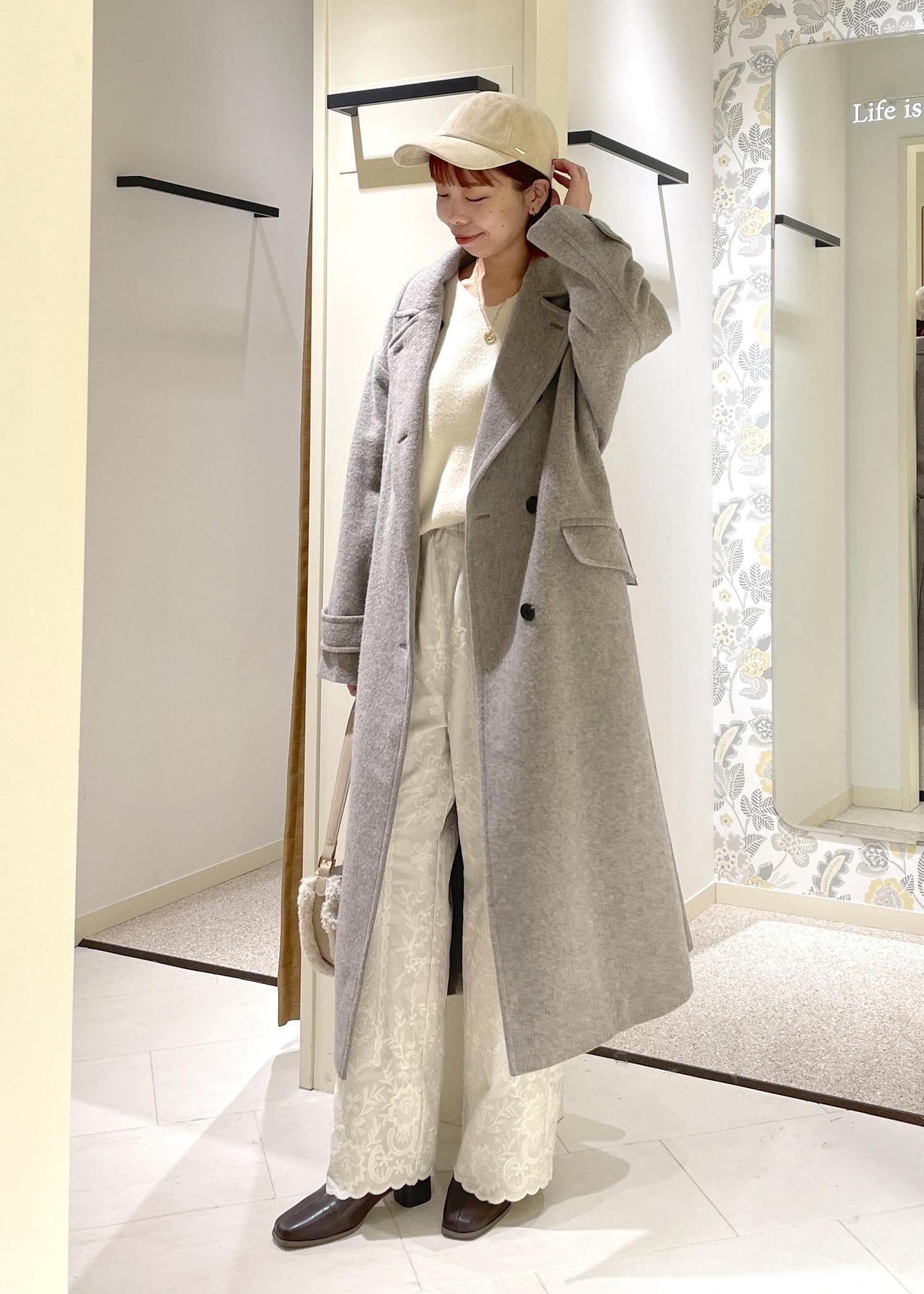 女性らしいふわっとしたプリーツスカートにヒールアップローファーを合わせ、お出かけにぴったりのスタイリングにまとめました。