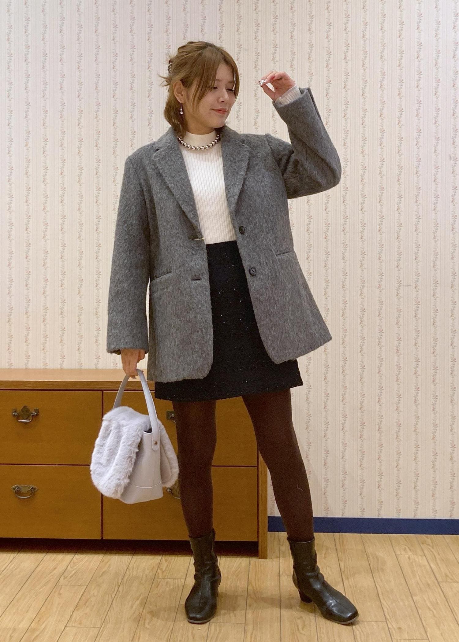 シンプルなニットトップスに広がり過ぎないワイドパンツを合わせた綺麗めコーディネート。