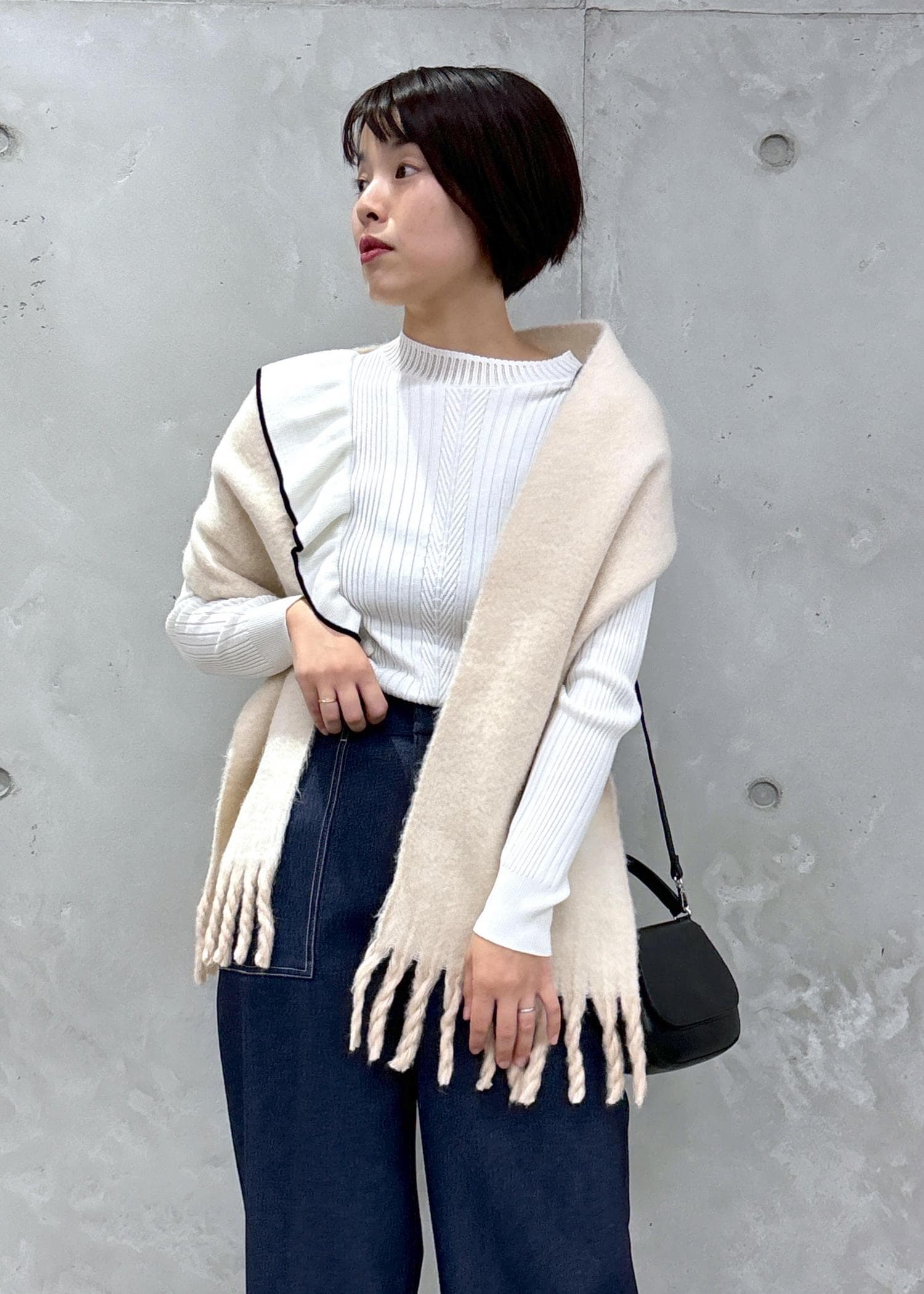 ふんわりボリュームマフラーを合わせることで冬っぽく、温かみのあるスタイルに◎