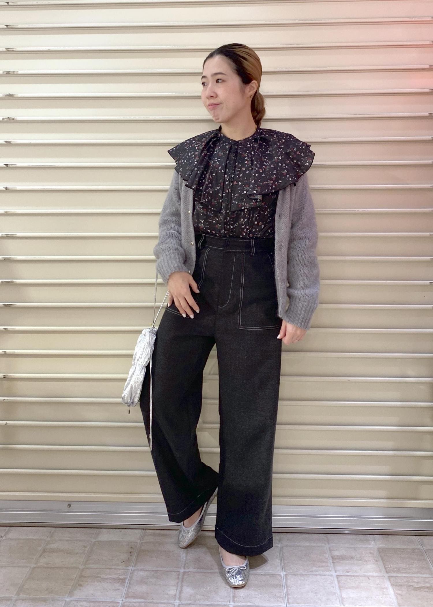 フリルカラーブラウスコーデ
