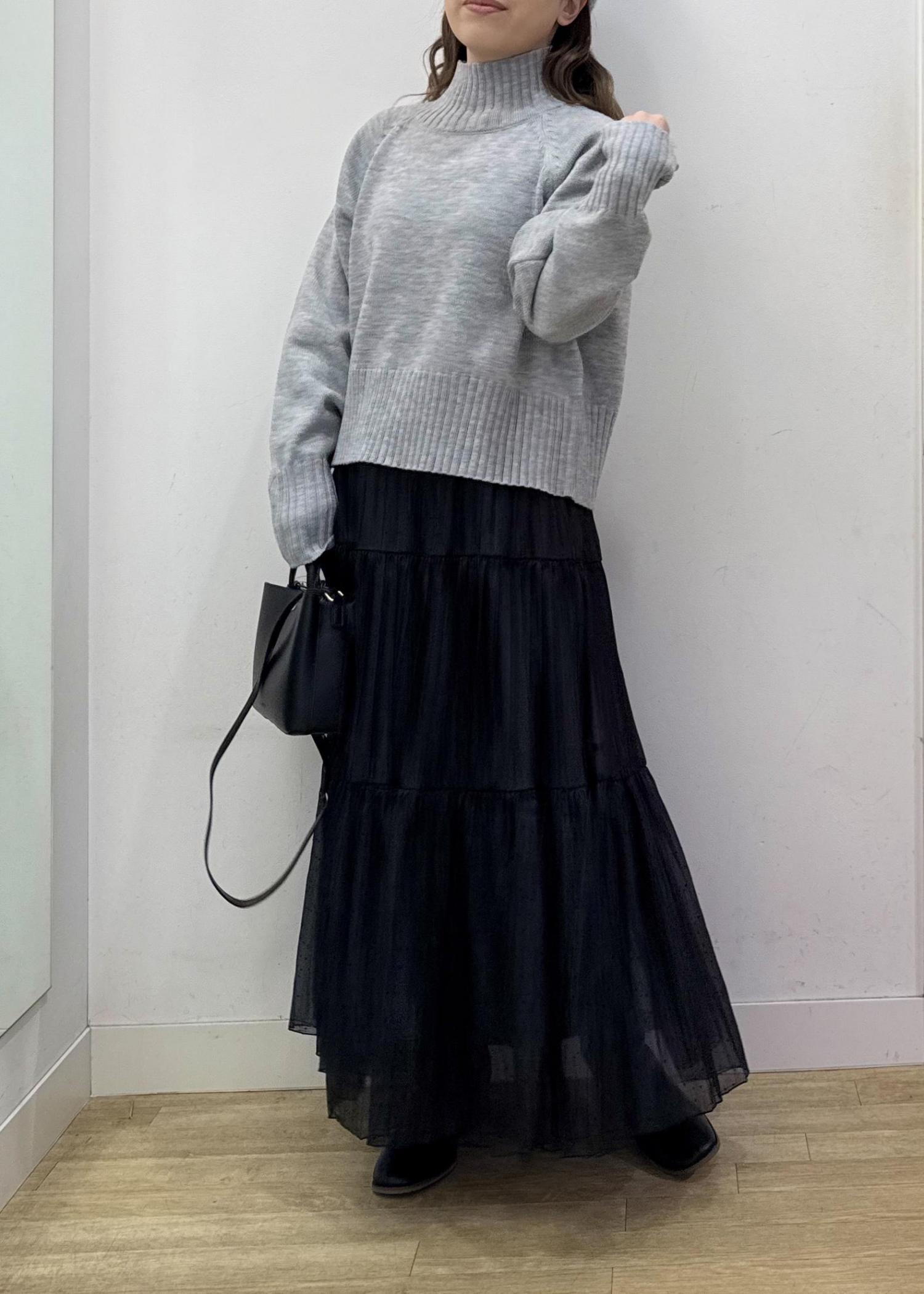 モコモコしすぎない厚みでアウターインもしやすいオススメニットです。