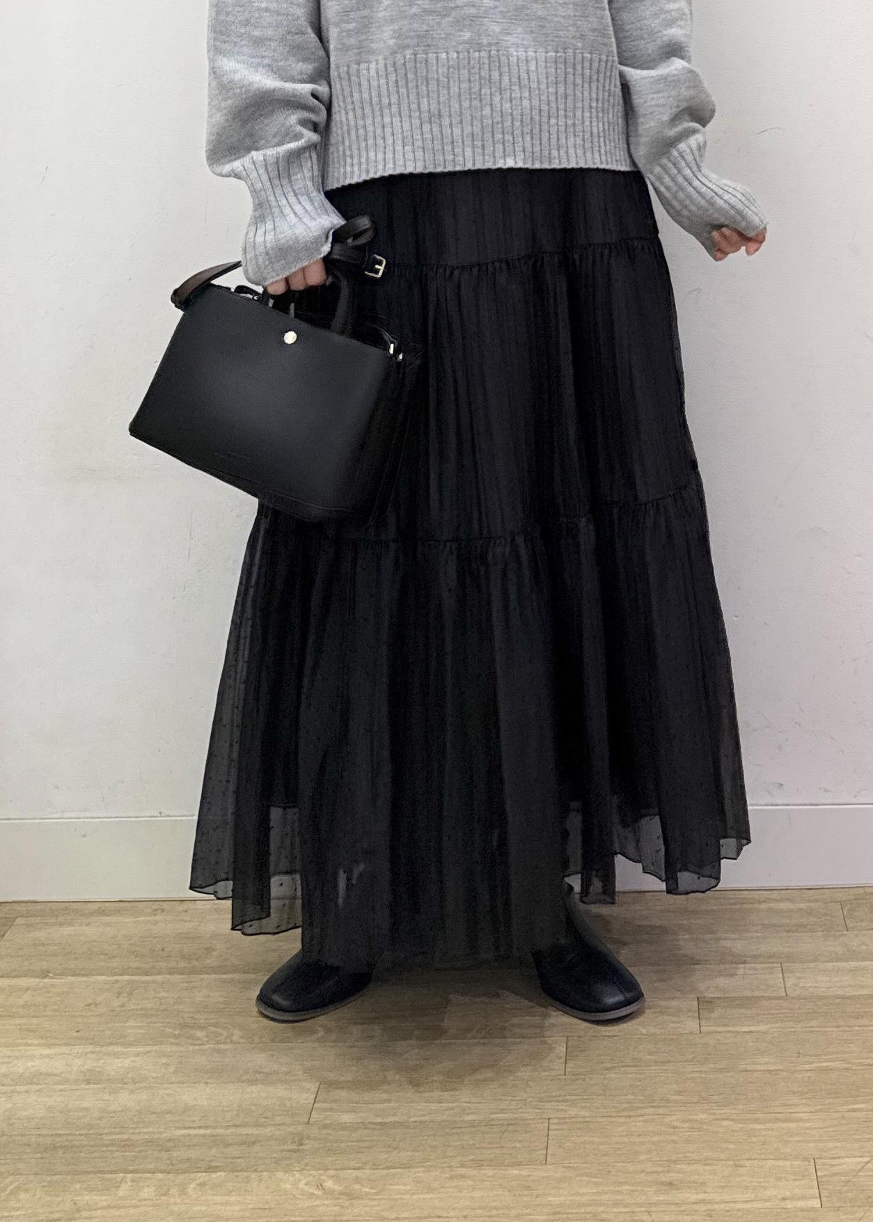 シアー感のある軽めの素材感で、細かいドット柄とティアードデザインがポイント!