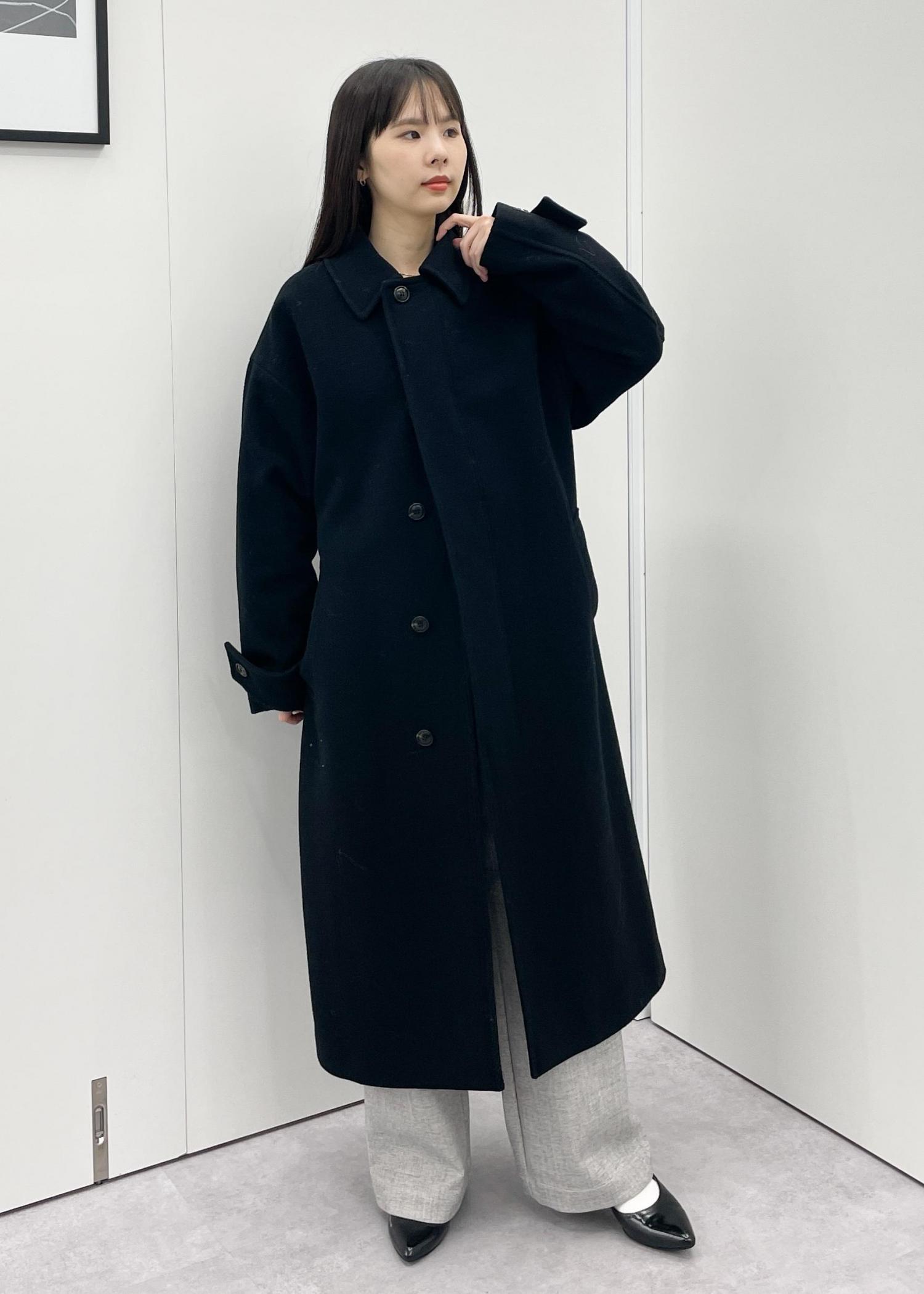 ニットはゆったりめですが、コートやパンツはシルエットが綺麗なので綺麗め見えしてON/OFF問わず着用できるコーデにしました。