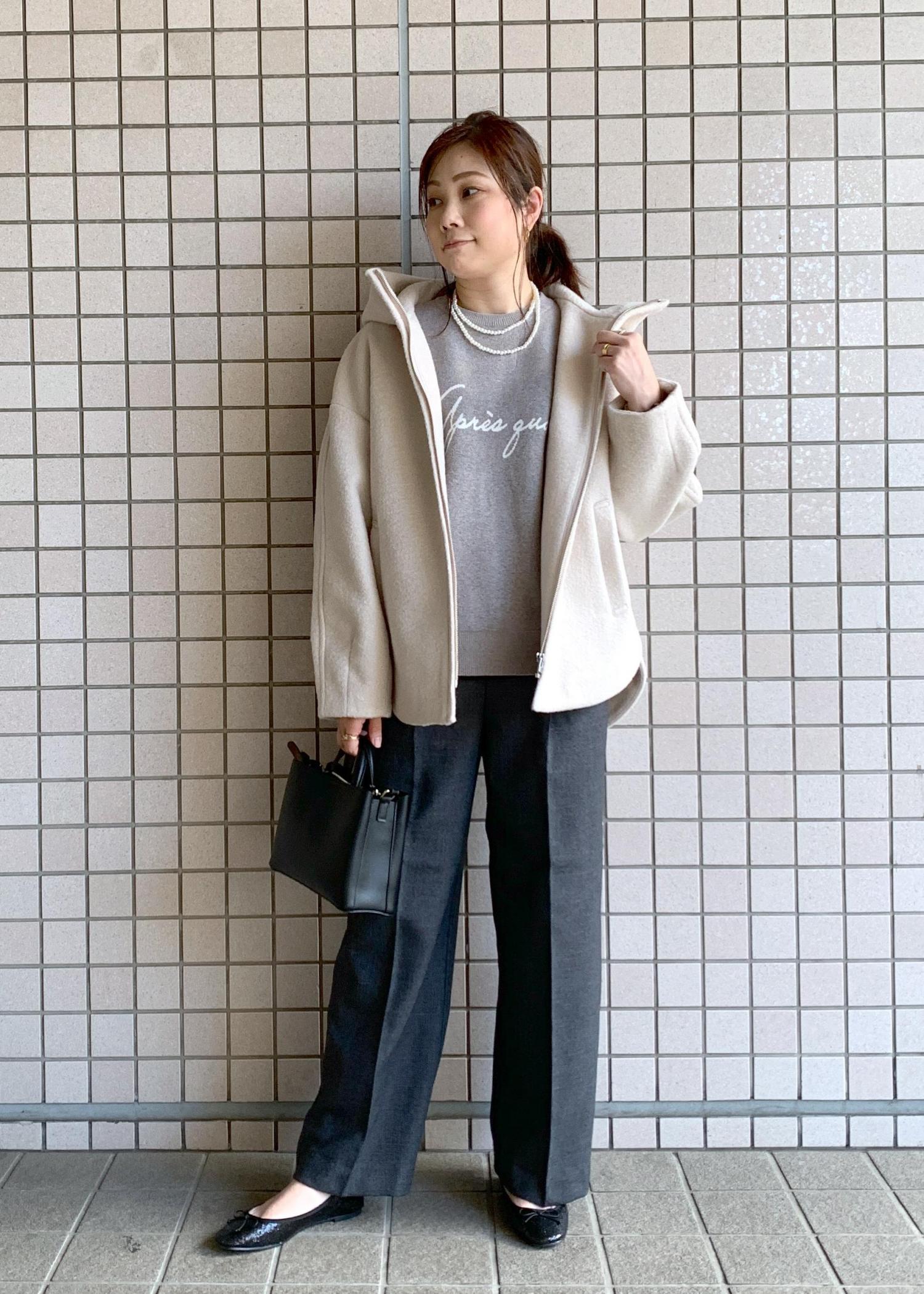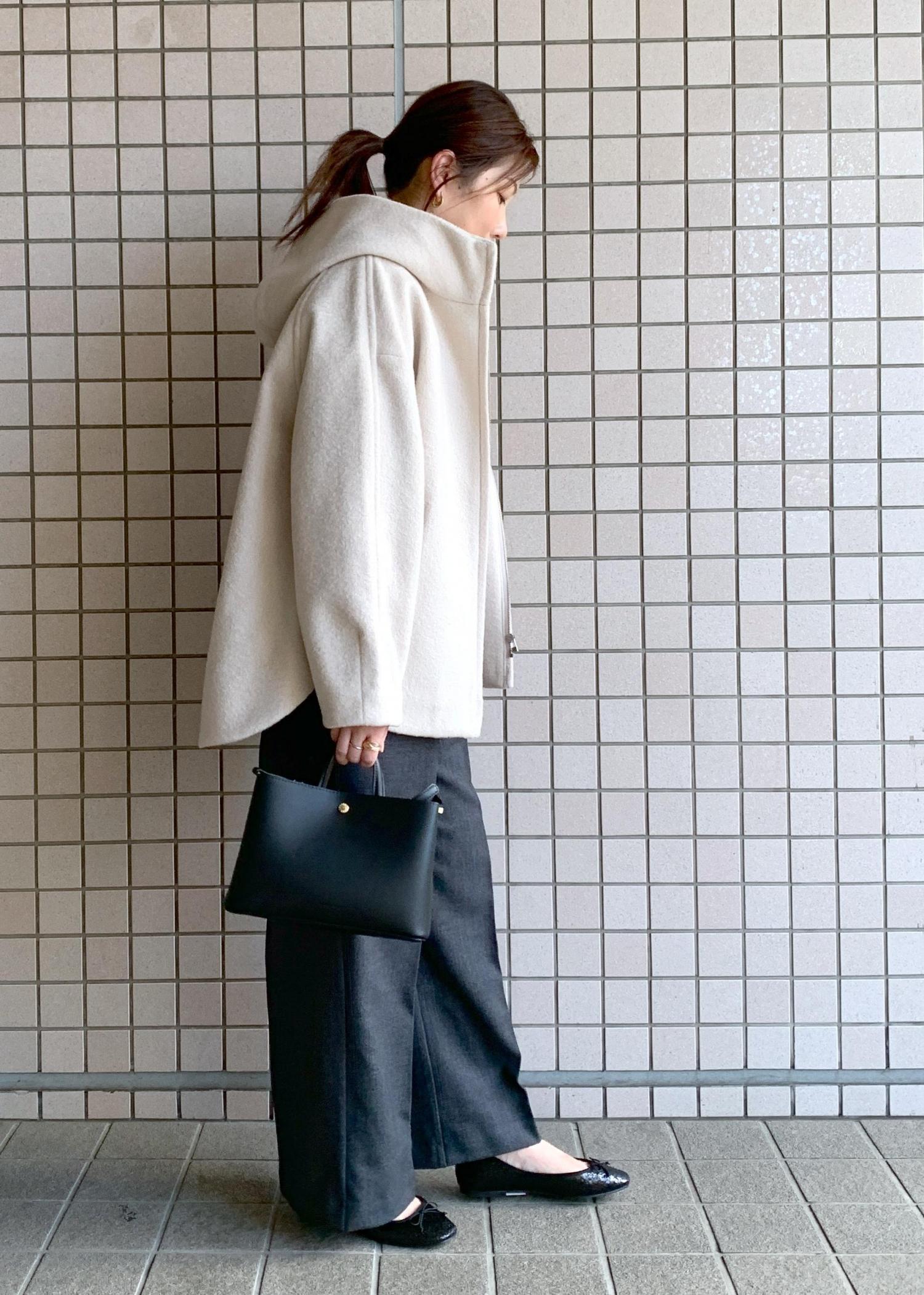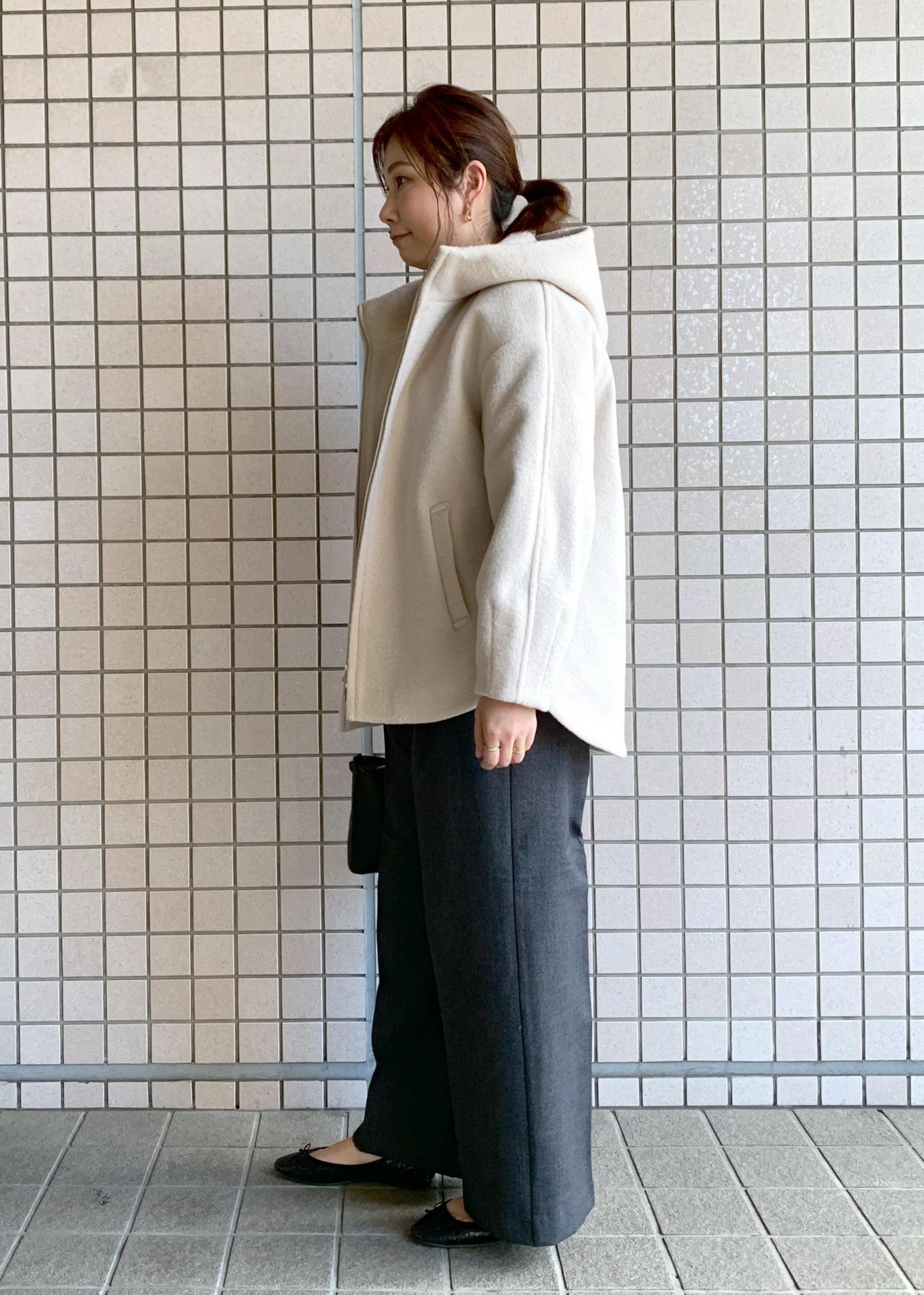 全体的に暗くなりすぎないように、白系のアウターを合わせました☺︎