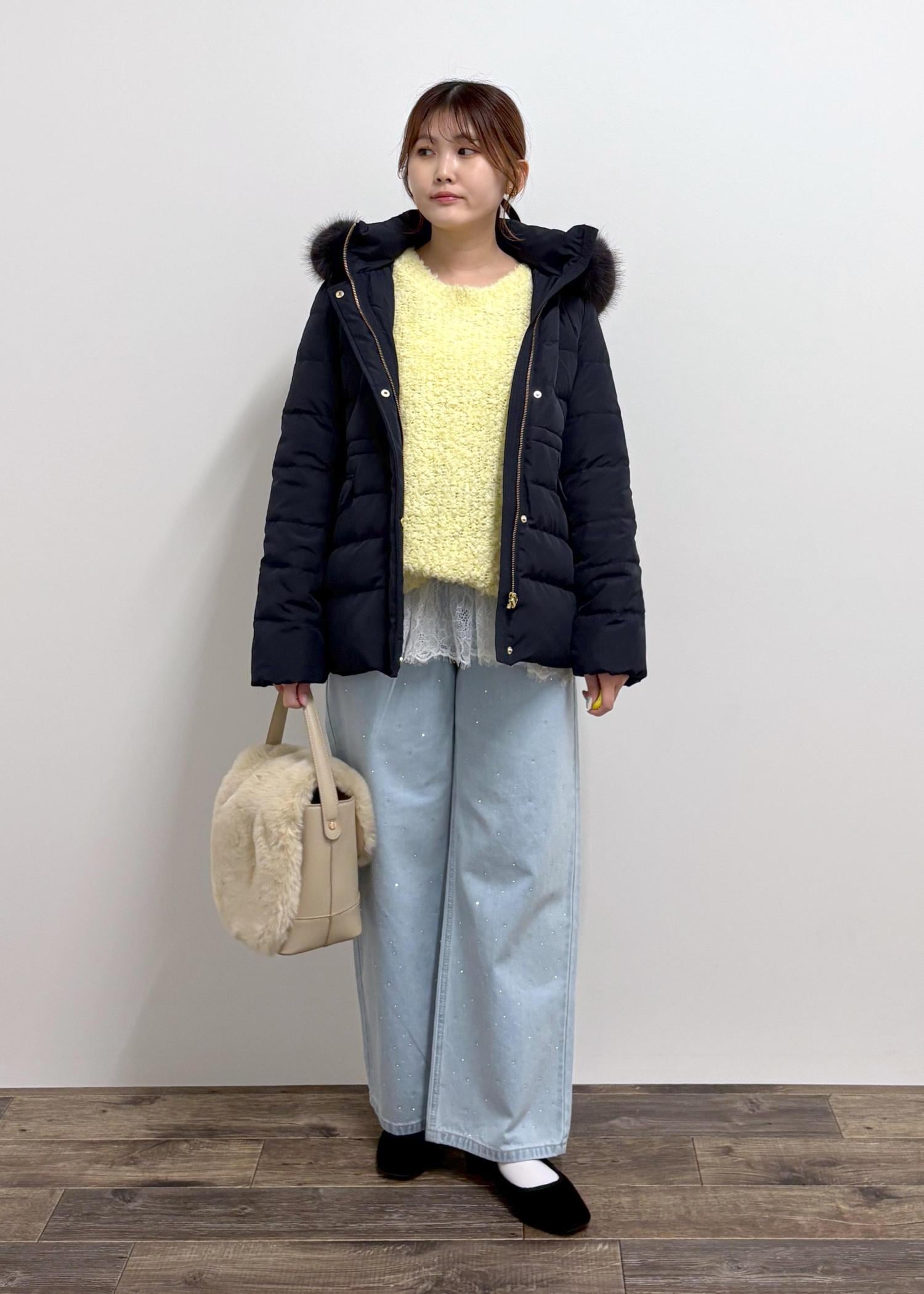 ふわふわした風合いがとてもかわいいニットもアウターとの相性◎