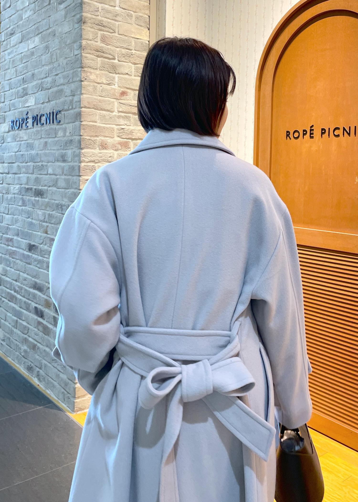 柔らかいグレーが品良く決まるロングコートを使った通勤コーデです!