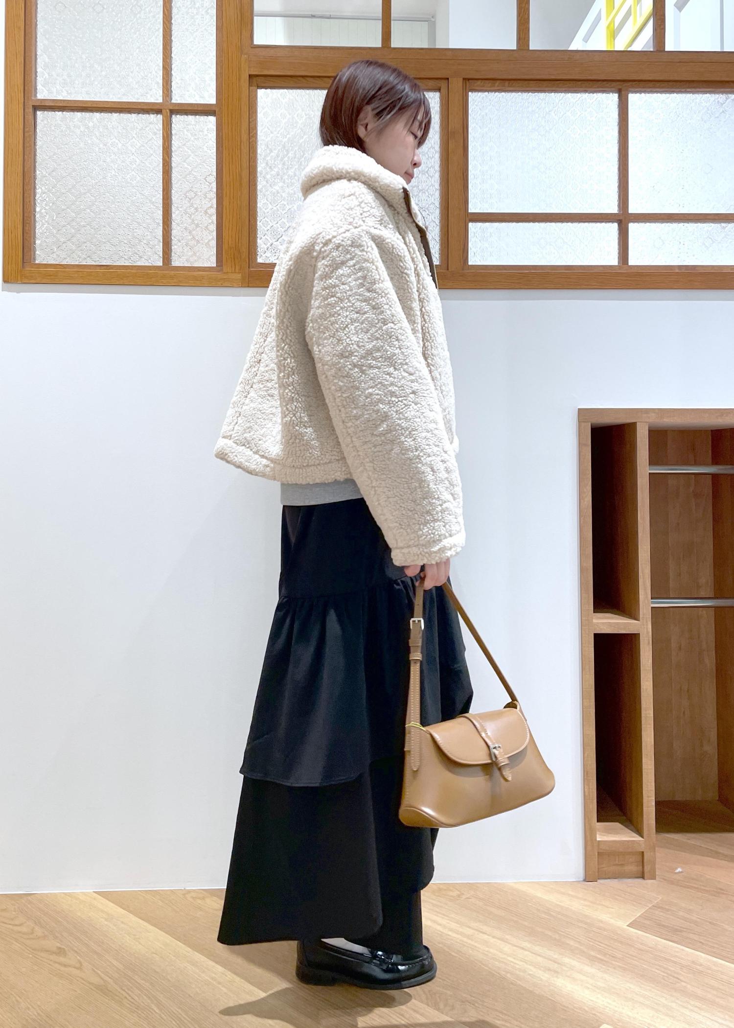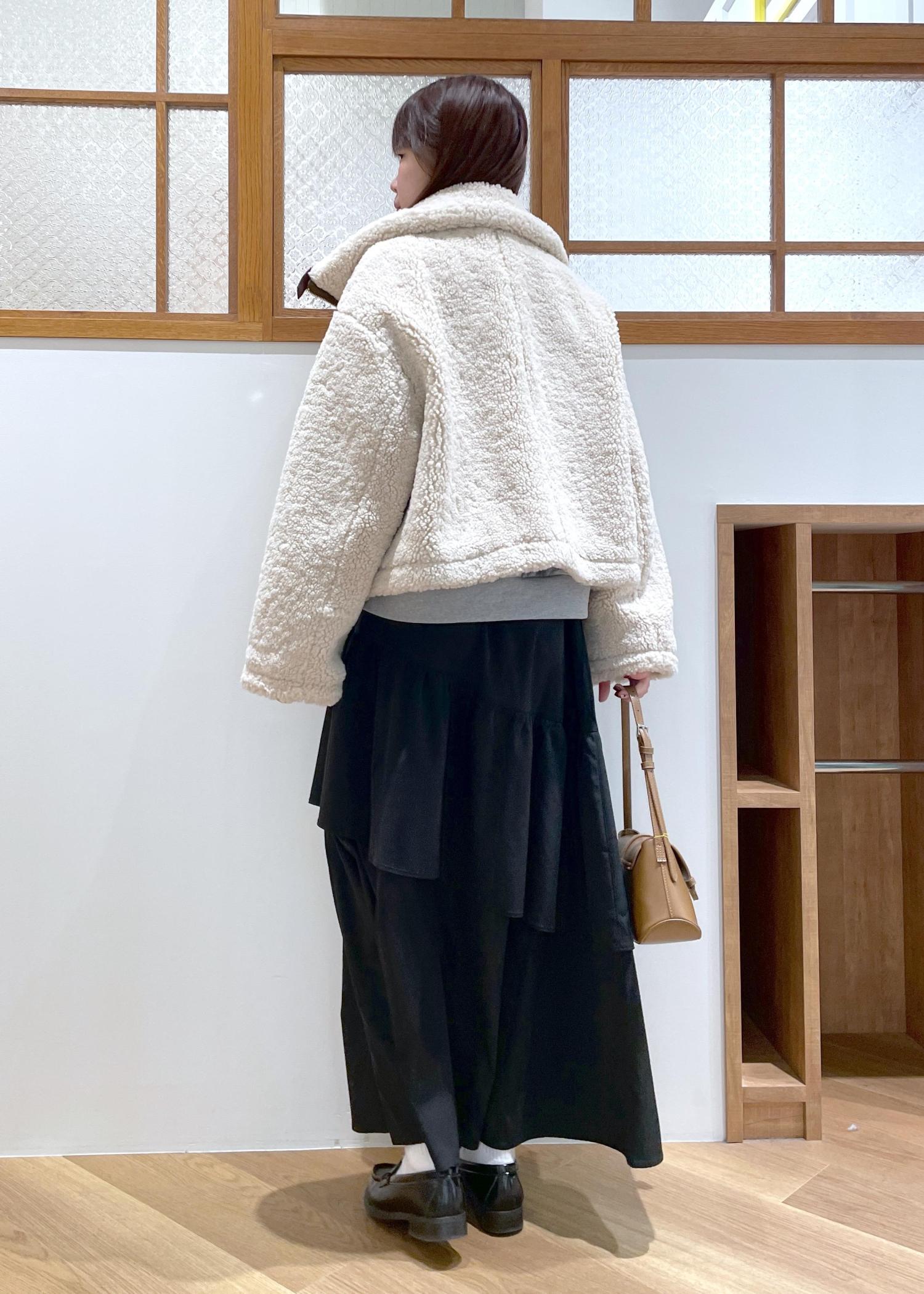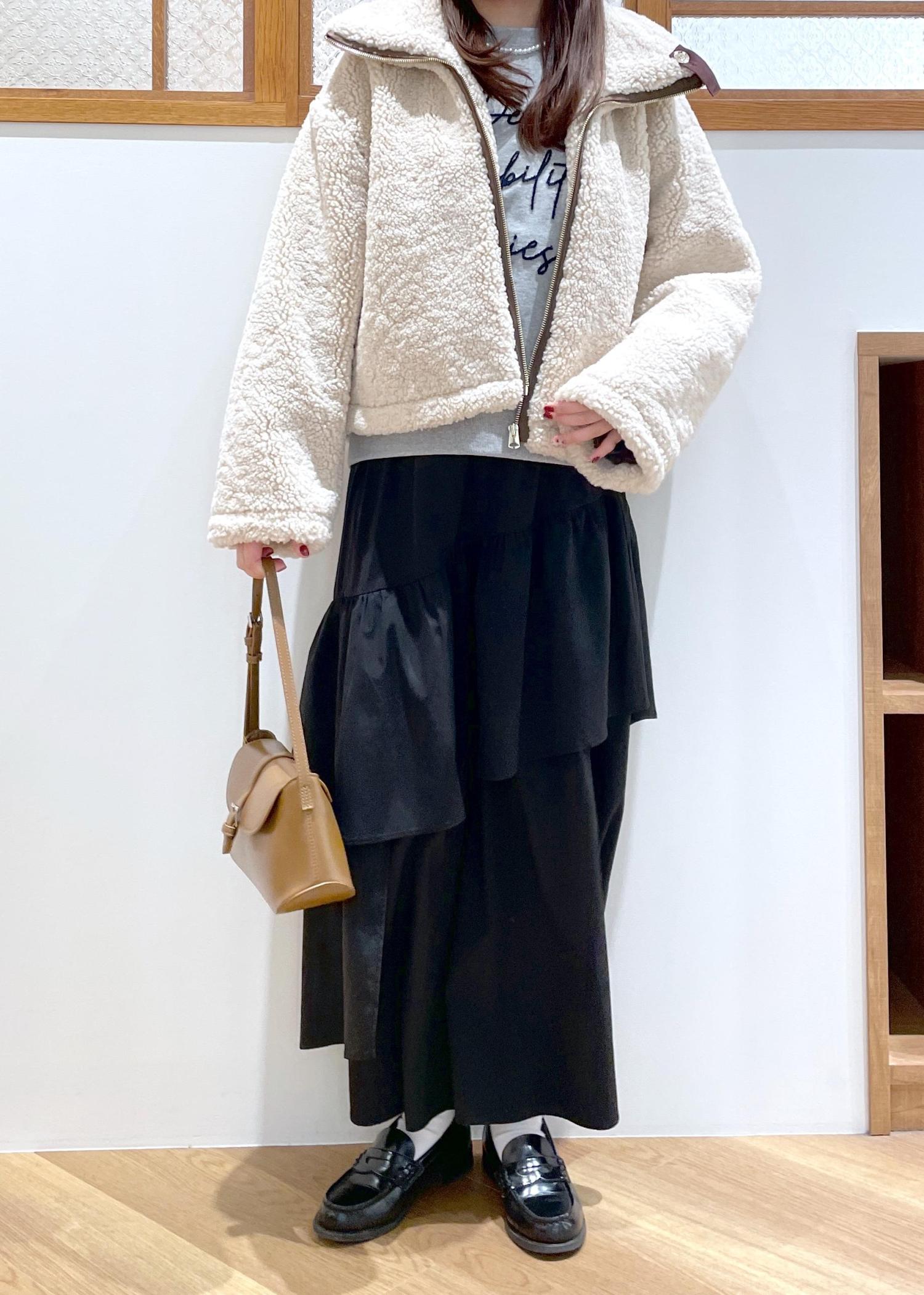 スウェットがカジュアルでなので、大きめのフリルのスカートと合わせ、甘辛ミックスな雰囲気を意識しました。