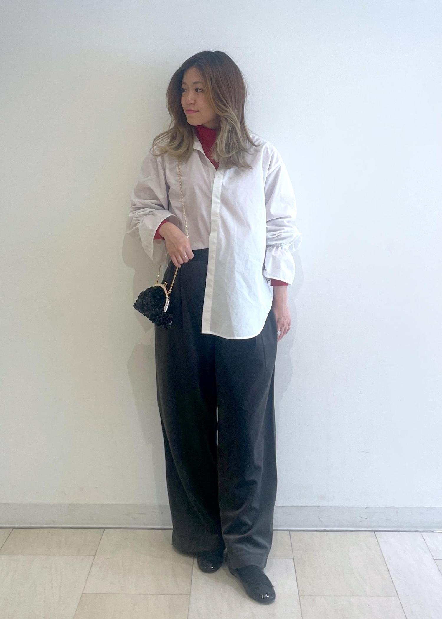 冬になると着たくなる赤ですが、全面に出るのはちょっと勇気が…という方にオススメです◎