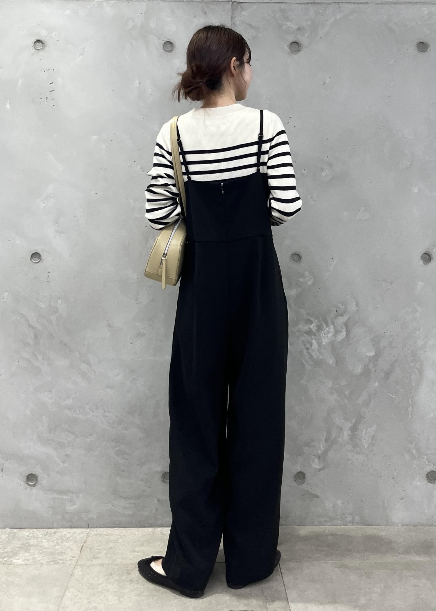 アウトレットROPÉ PICNIC【emur/エミュール】オールインワンブラック / 38¥13,090レビュー160cmですが、肩紐にアジャスタが着いておりちょうどフルレングスの長さで調節して着用しました。