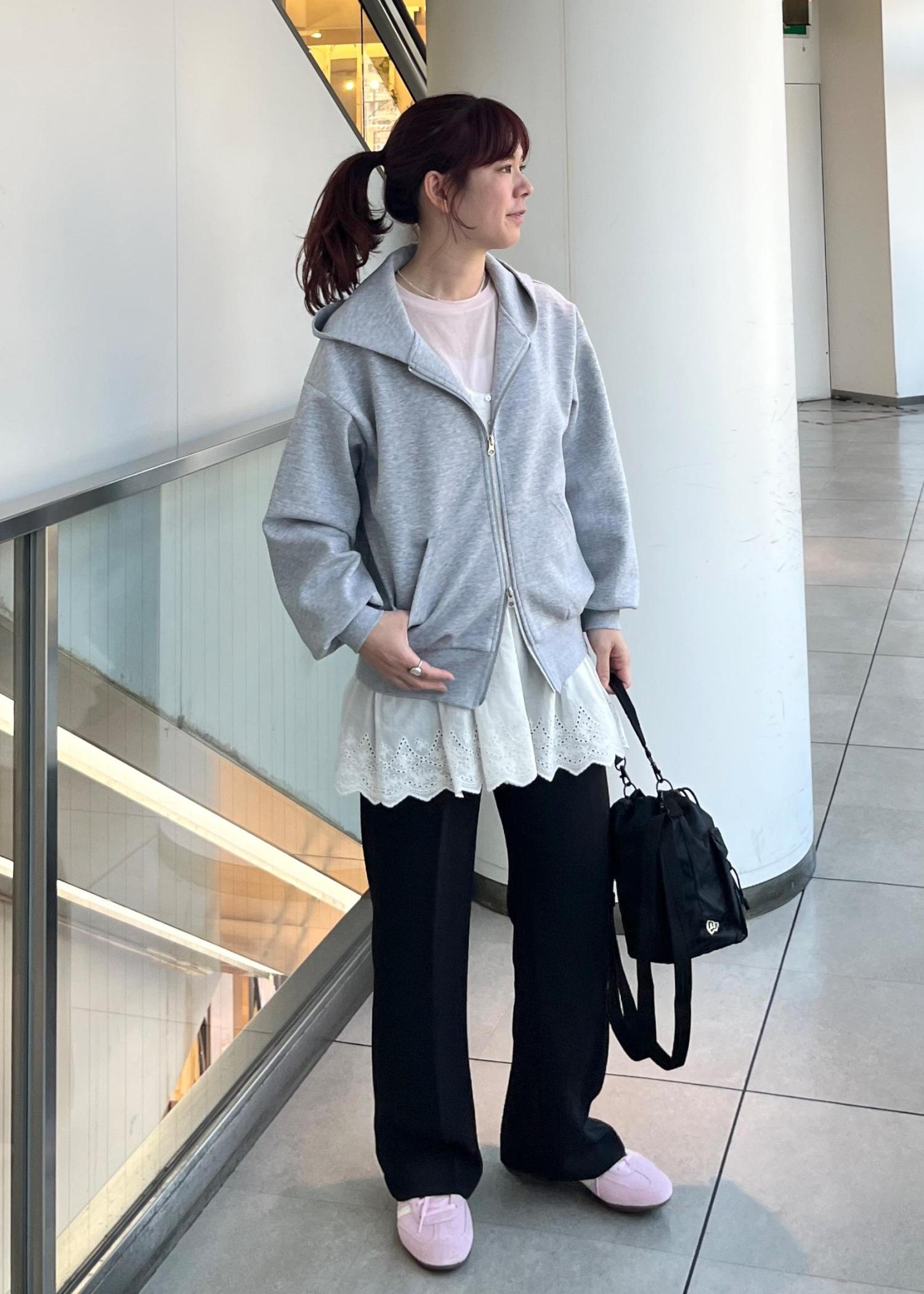 金ボタンが可愛いミラノリブカーディガン。すっきりとしたキチンと感のあるシルエットですが、ベーシックで着回し力も抜群です!フリルブラウスとデニムを合わせてお出掛けに使えるスタイルにしました。