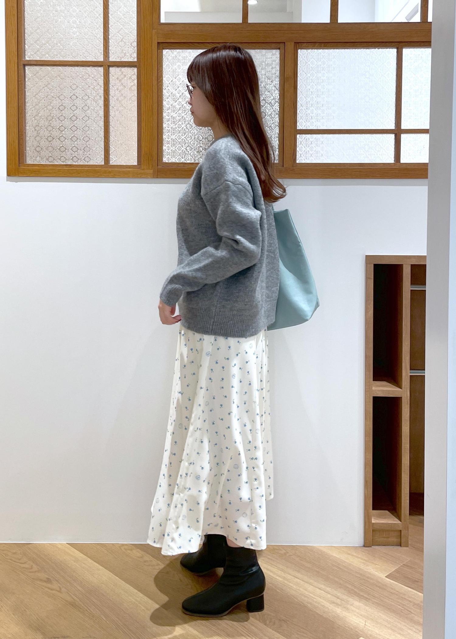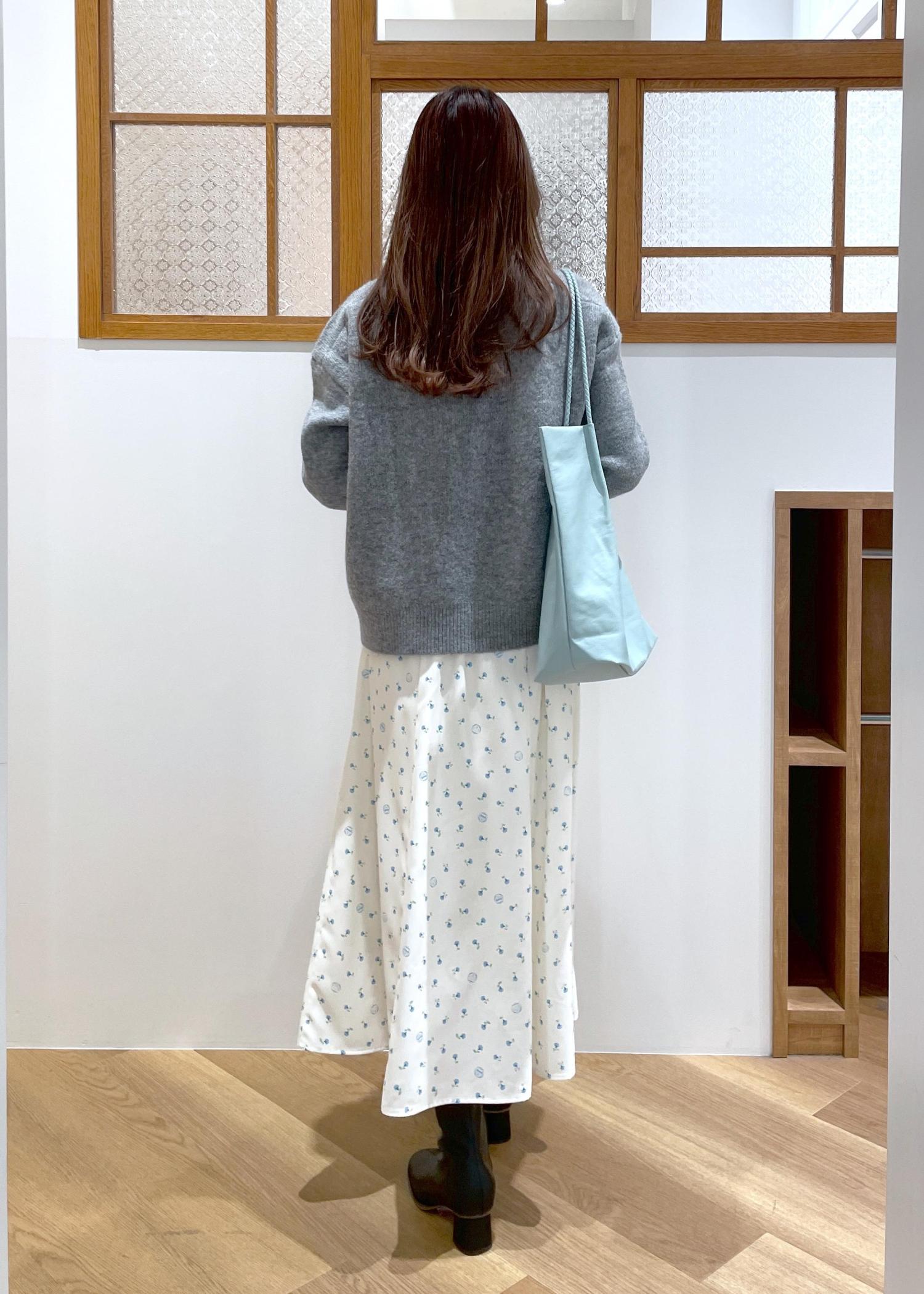 また、白地にブルーのプリントが入ったスカートが爽やかな印象を持たせてくれます。