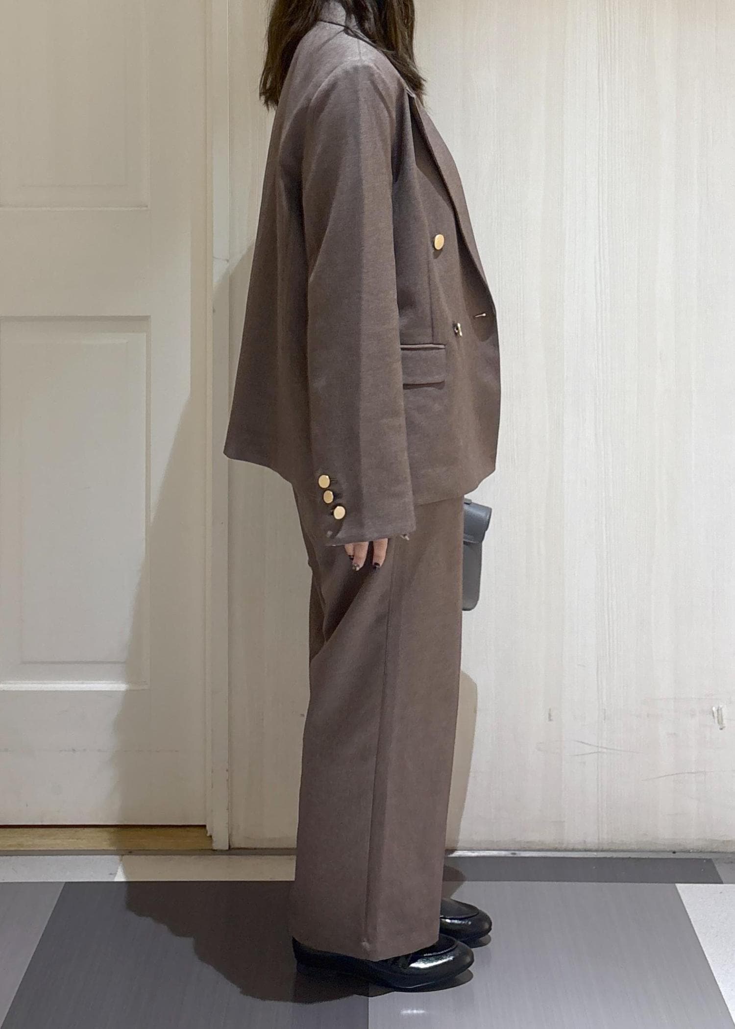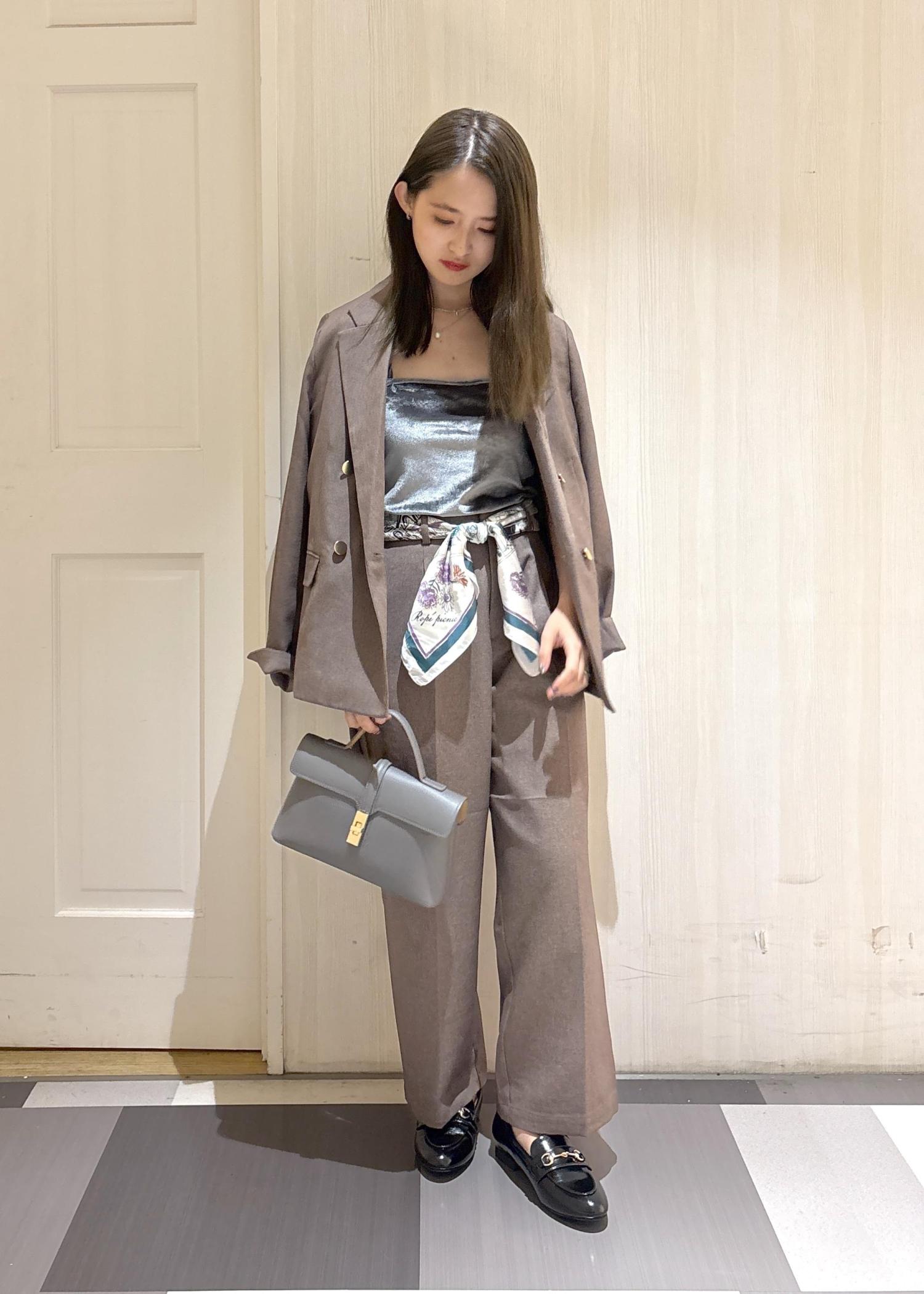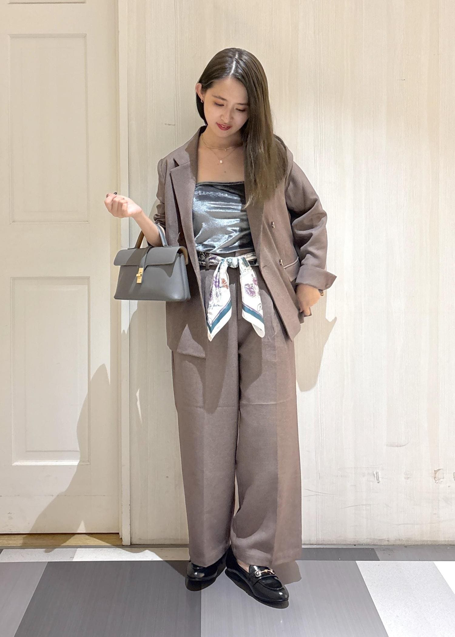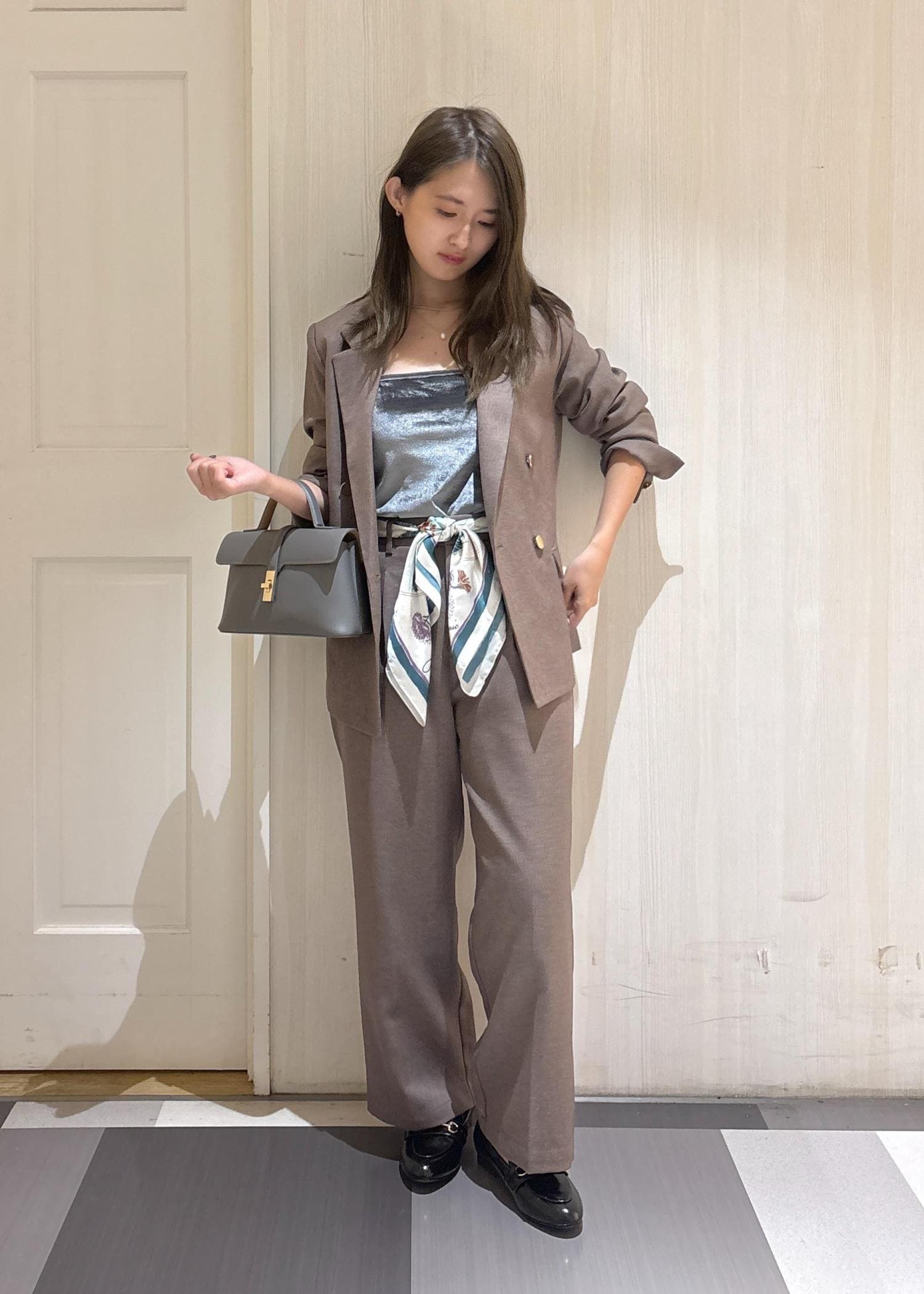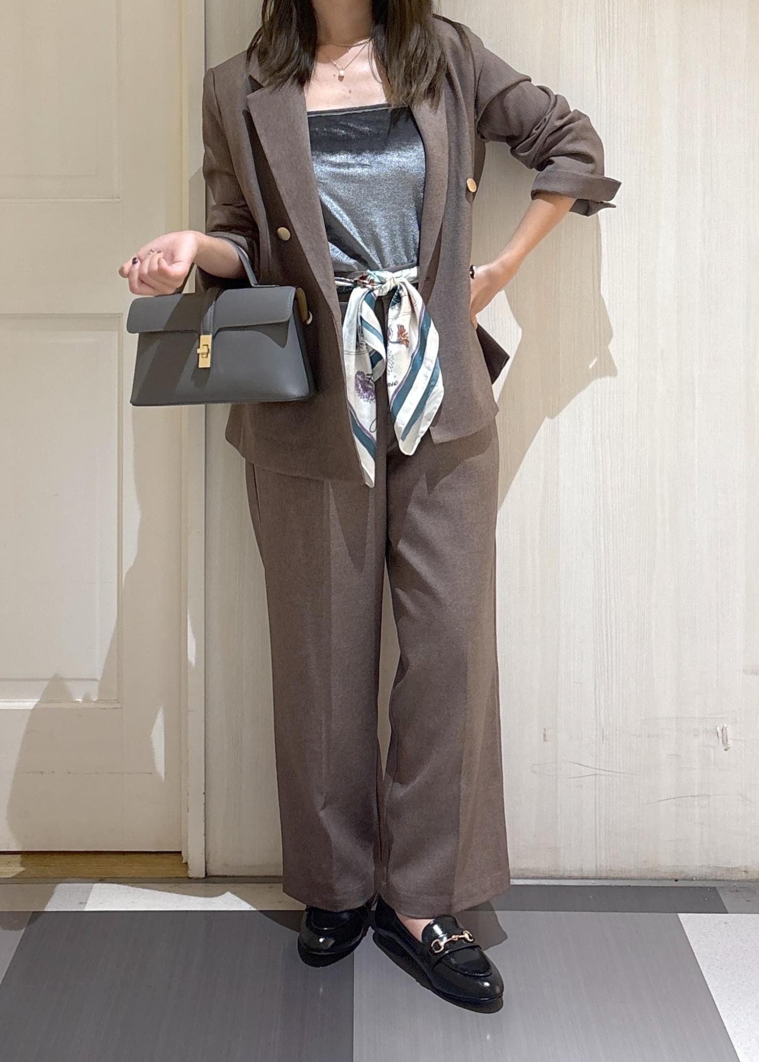 脱マンネリ□ブラウスを合わせてオンシーンに、1つあると大活躍のベージュセットアップです。