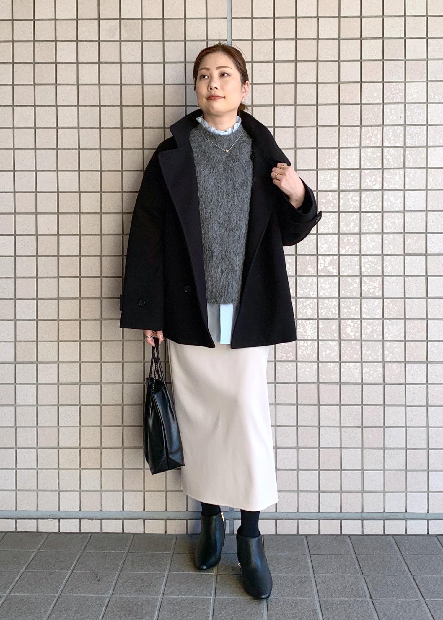外は寒いので、シャツとニットのレイヤードをしています☺︎