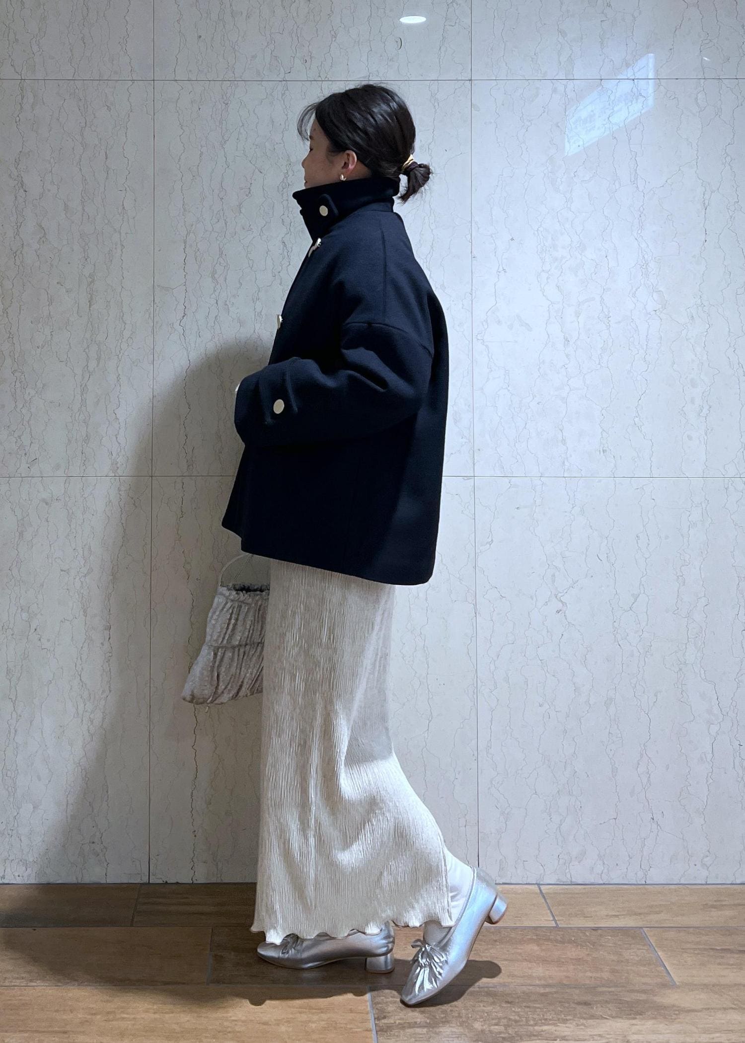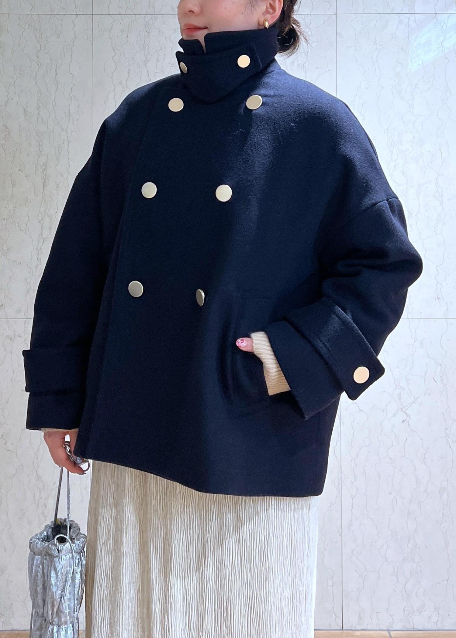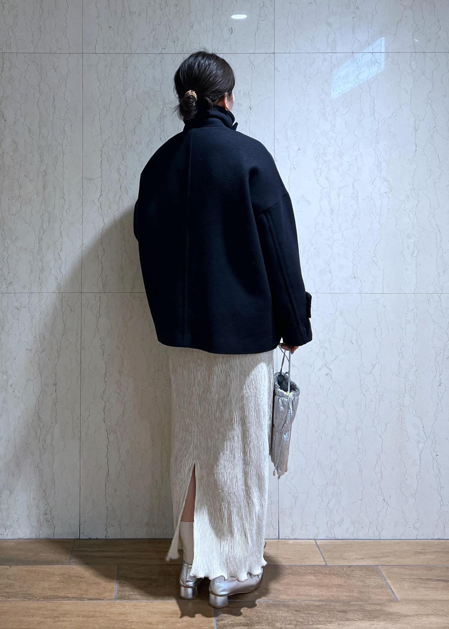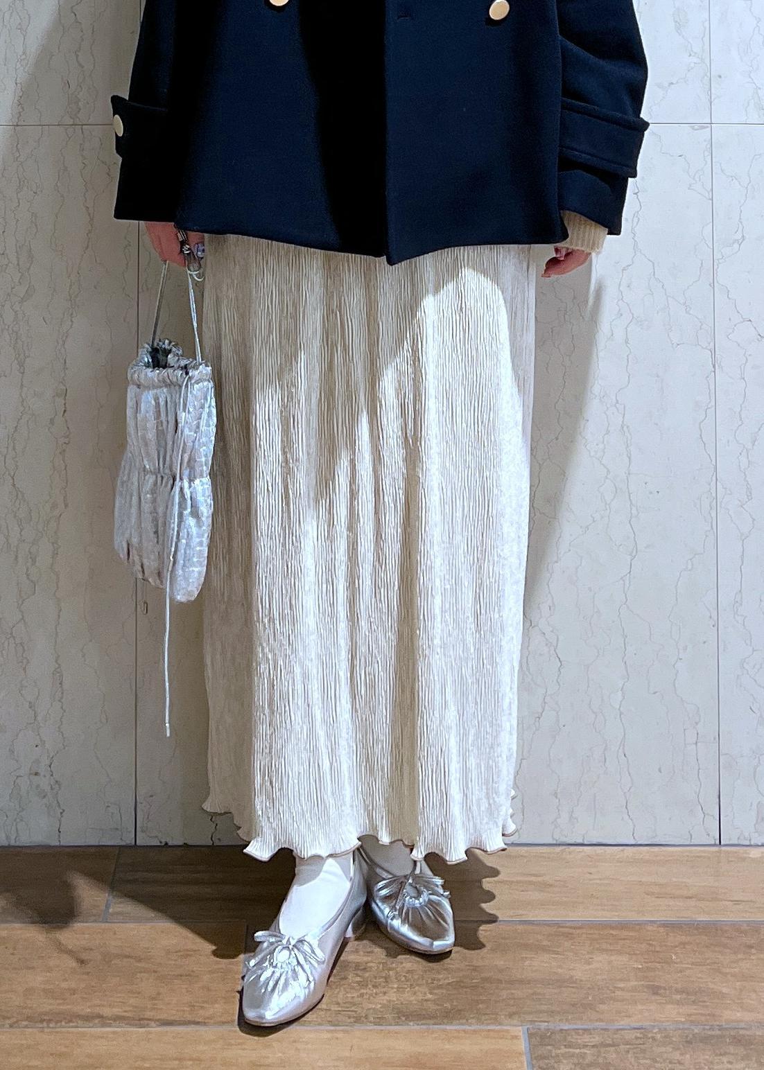 金釦がコーデのポイントになるPコートとベロアスカートでトレンド感もある大人カジュアルコーデにしてみました!