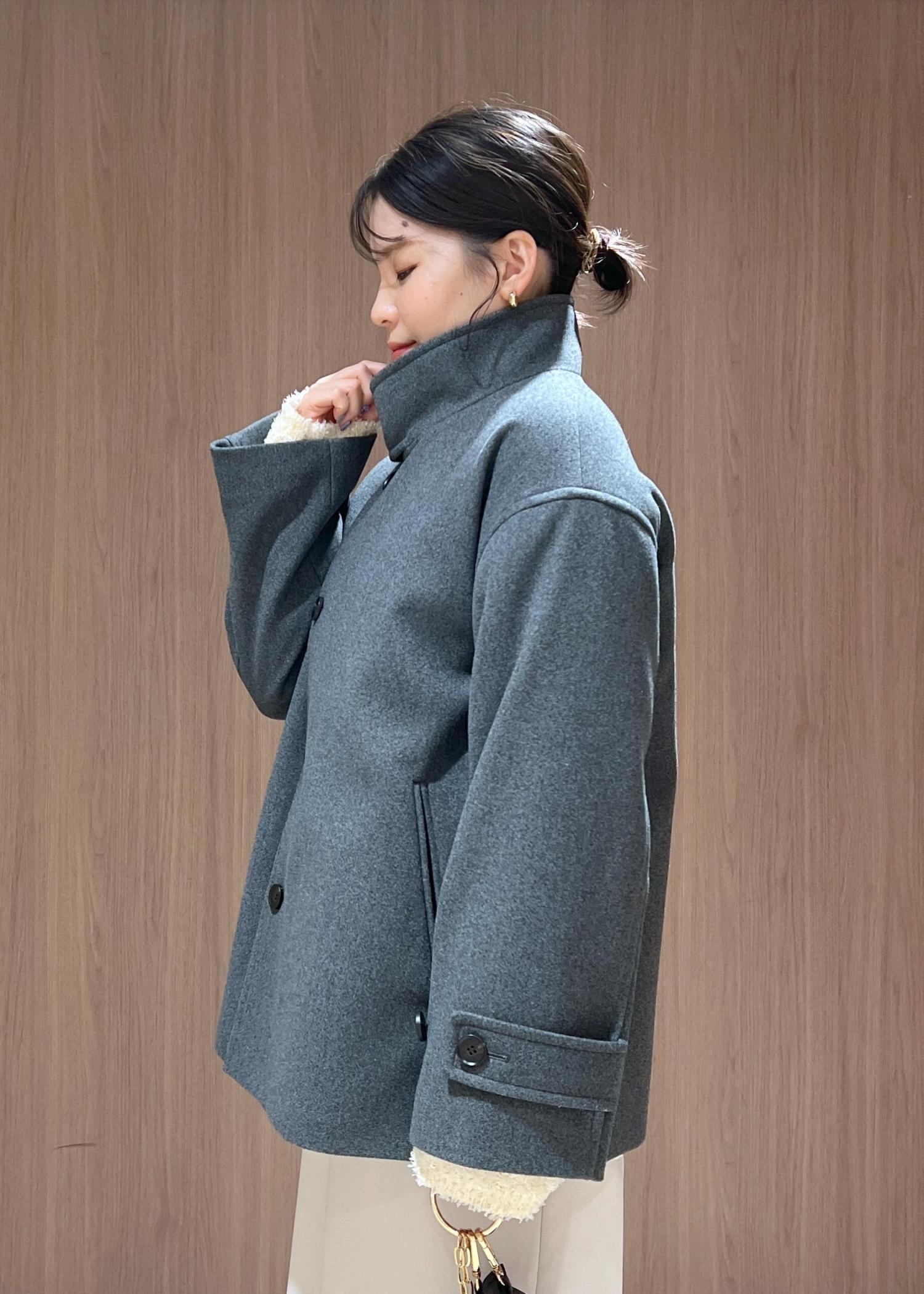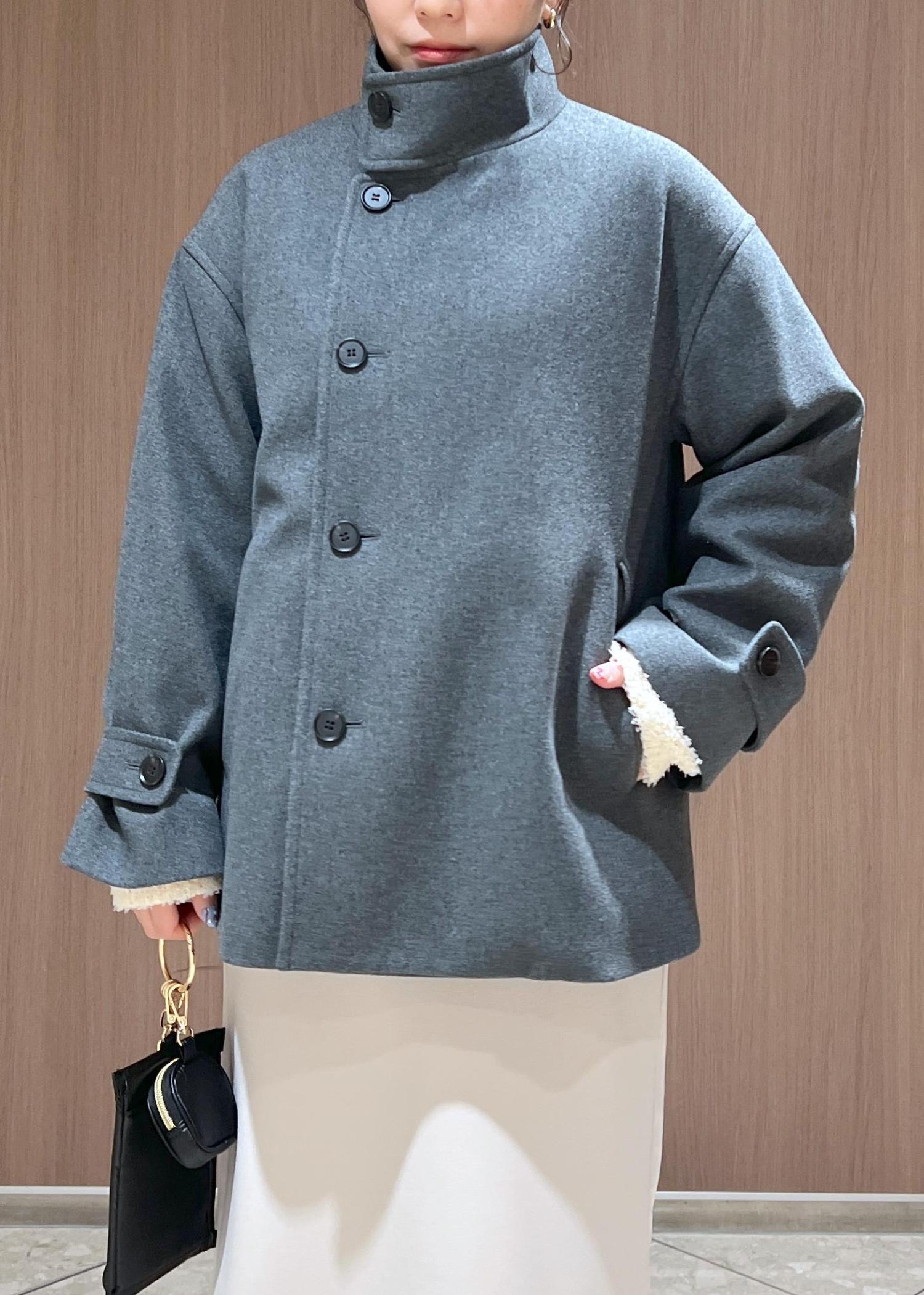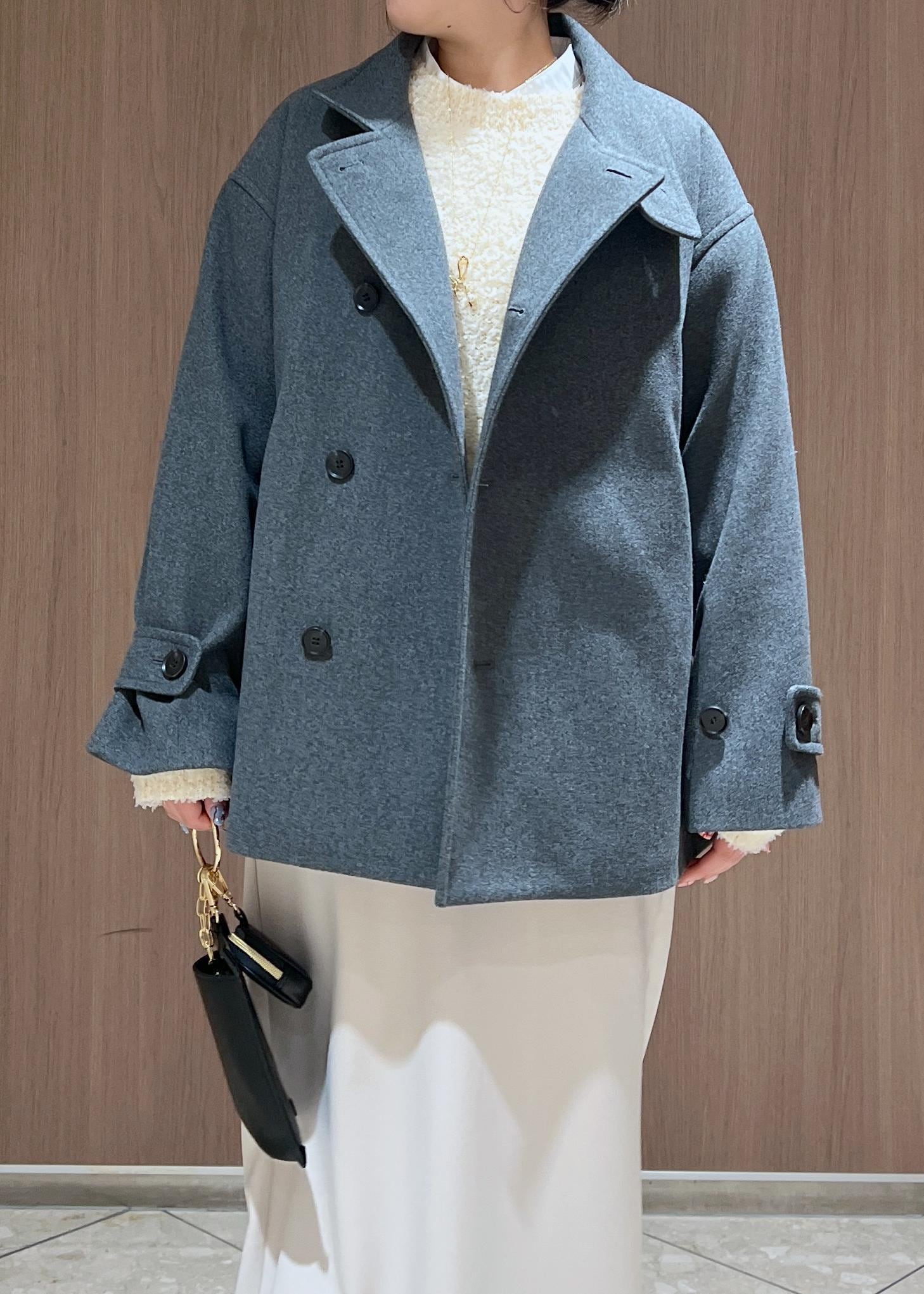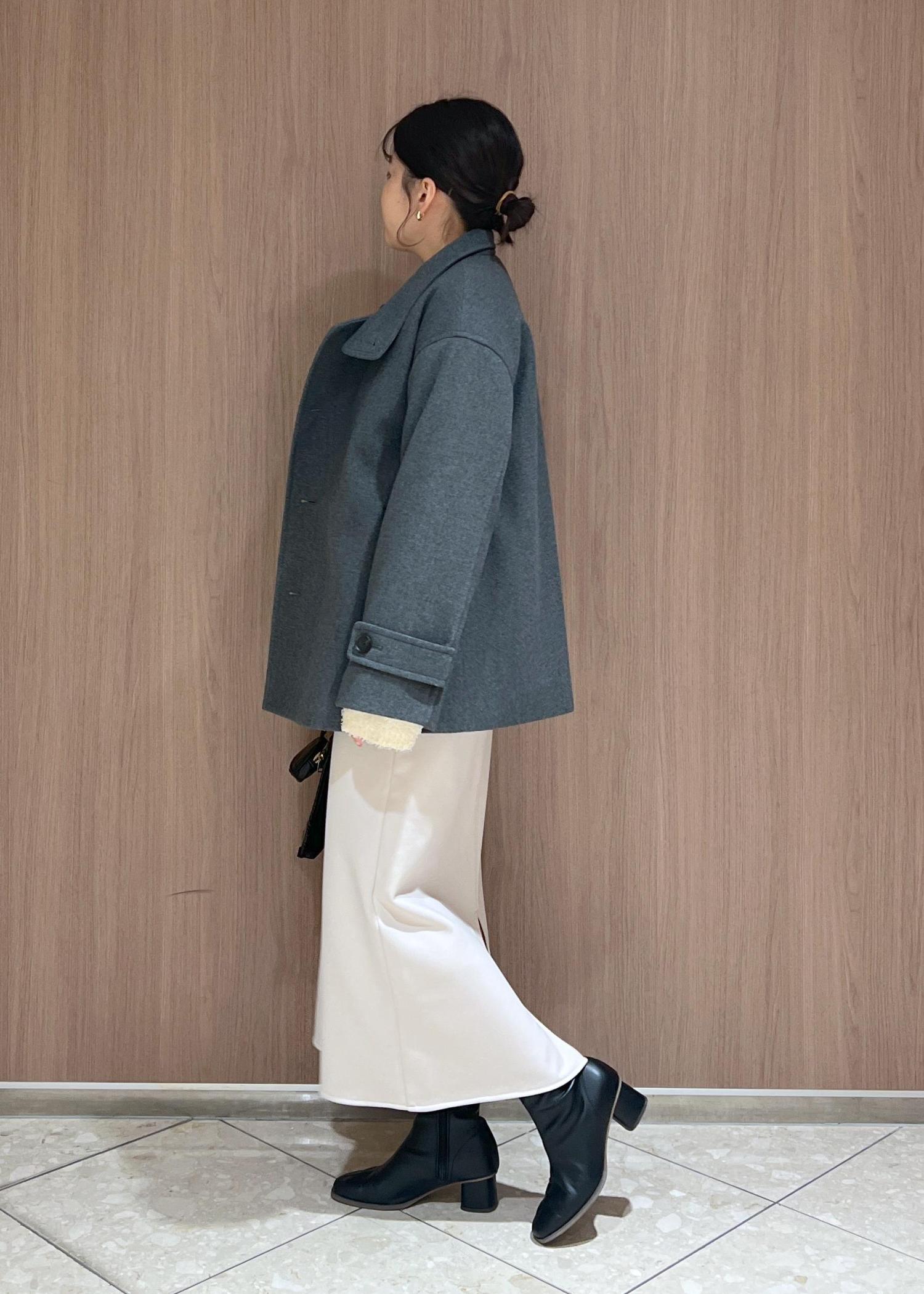 チャコールグレーがトレンド感のあるミドル丈のアウターを主役にコートインは最近ハマっているホワイト系のワントーンコーデにしてみました!