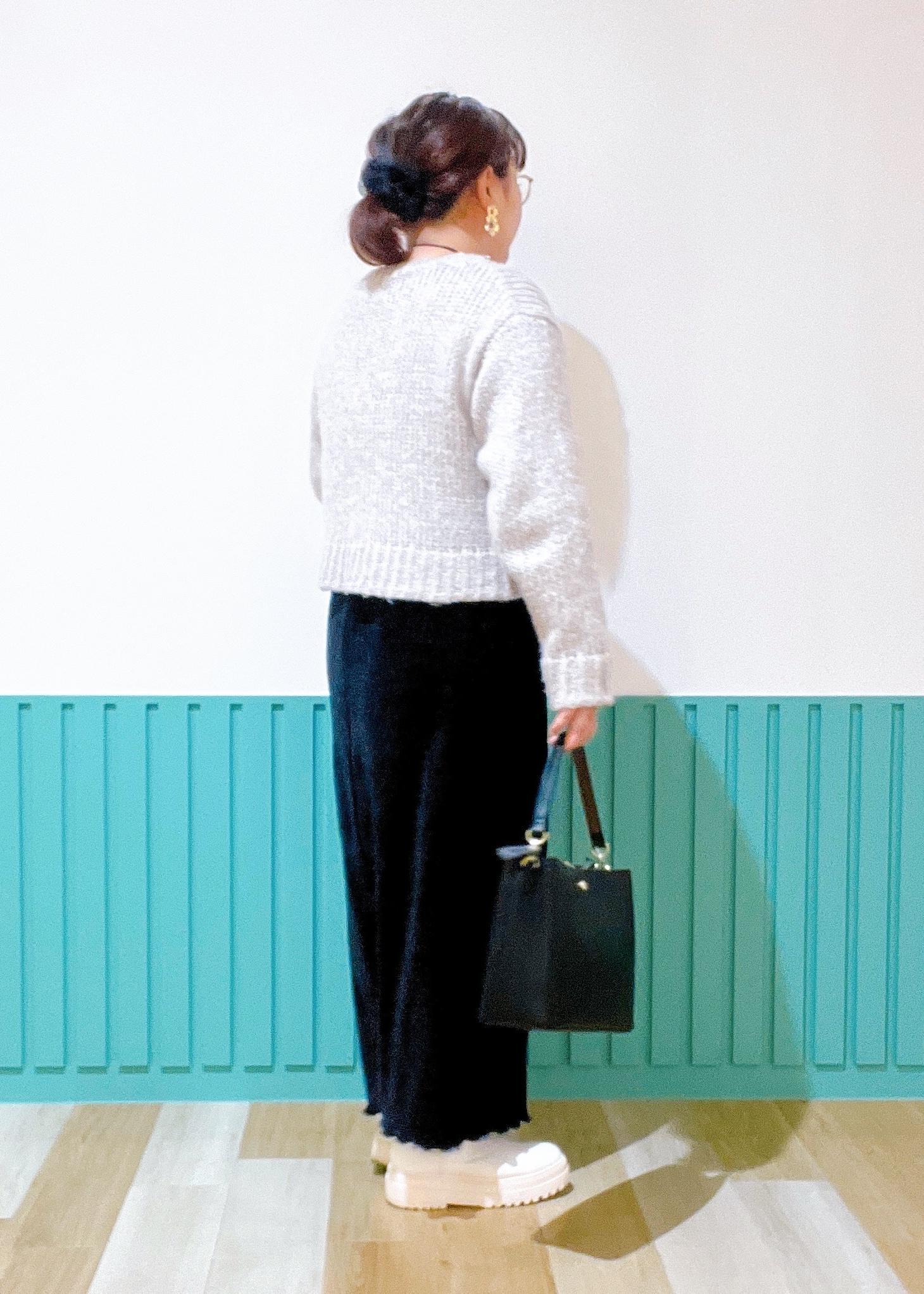 アウトレットROPÉ PICNICベロアプリーツタイトロングスカートブラック / 38¥3,498レビューラインが綺麗で、裾の加工が可愛いです♪