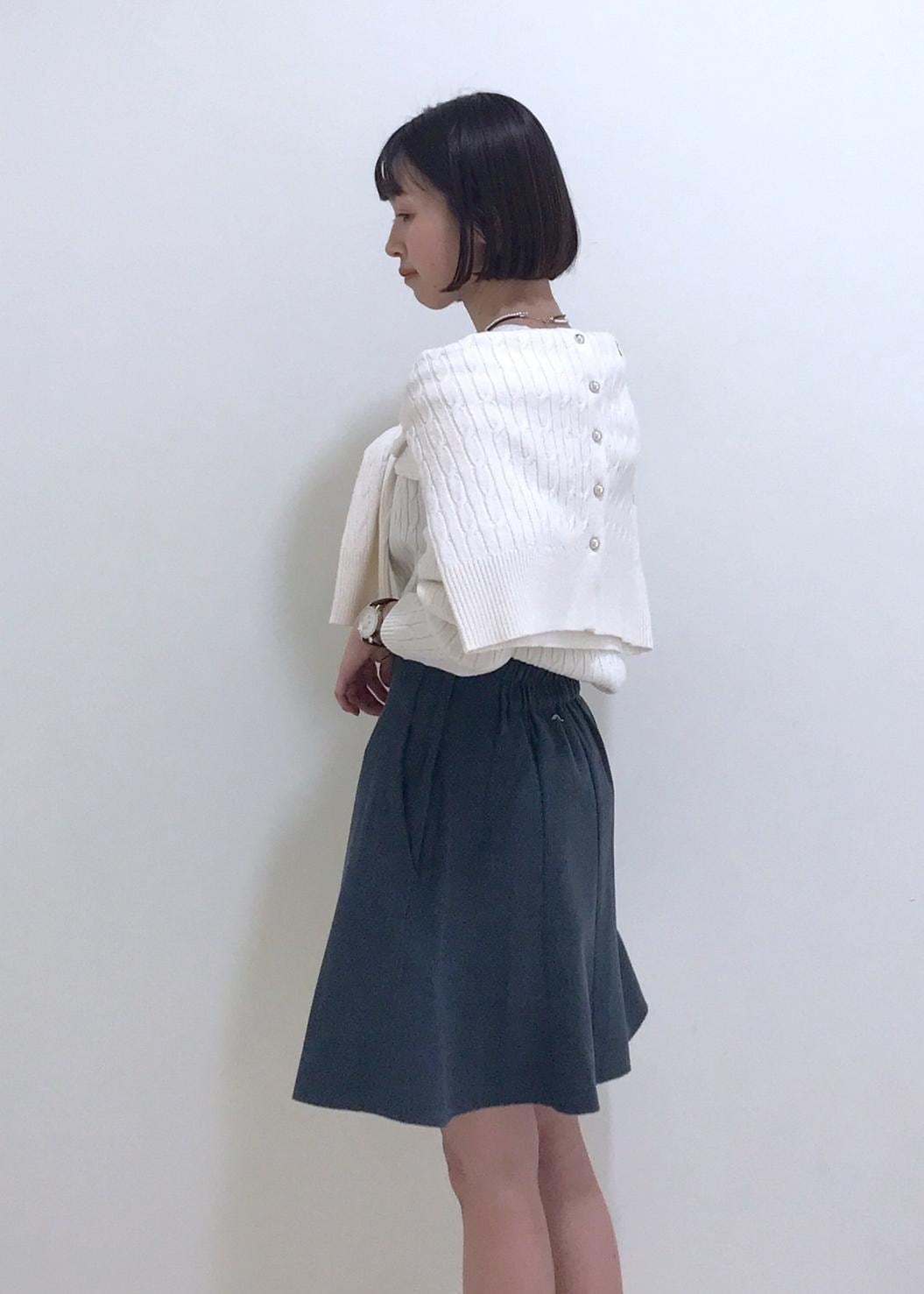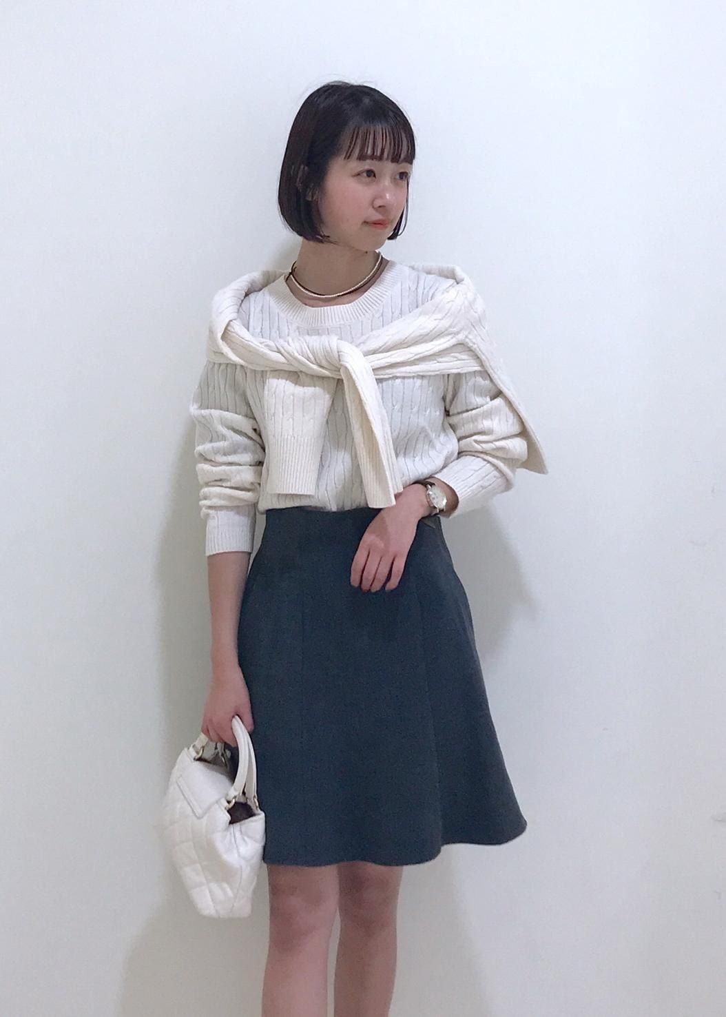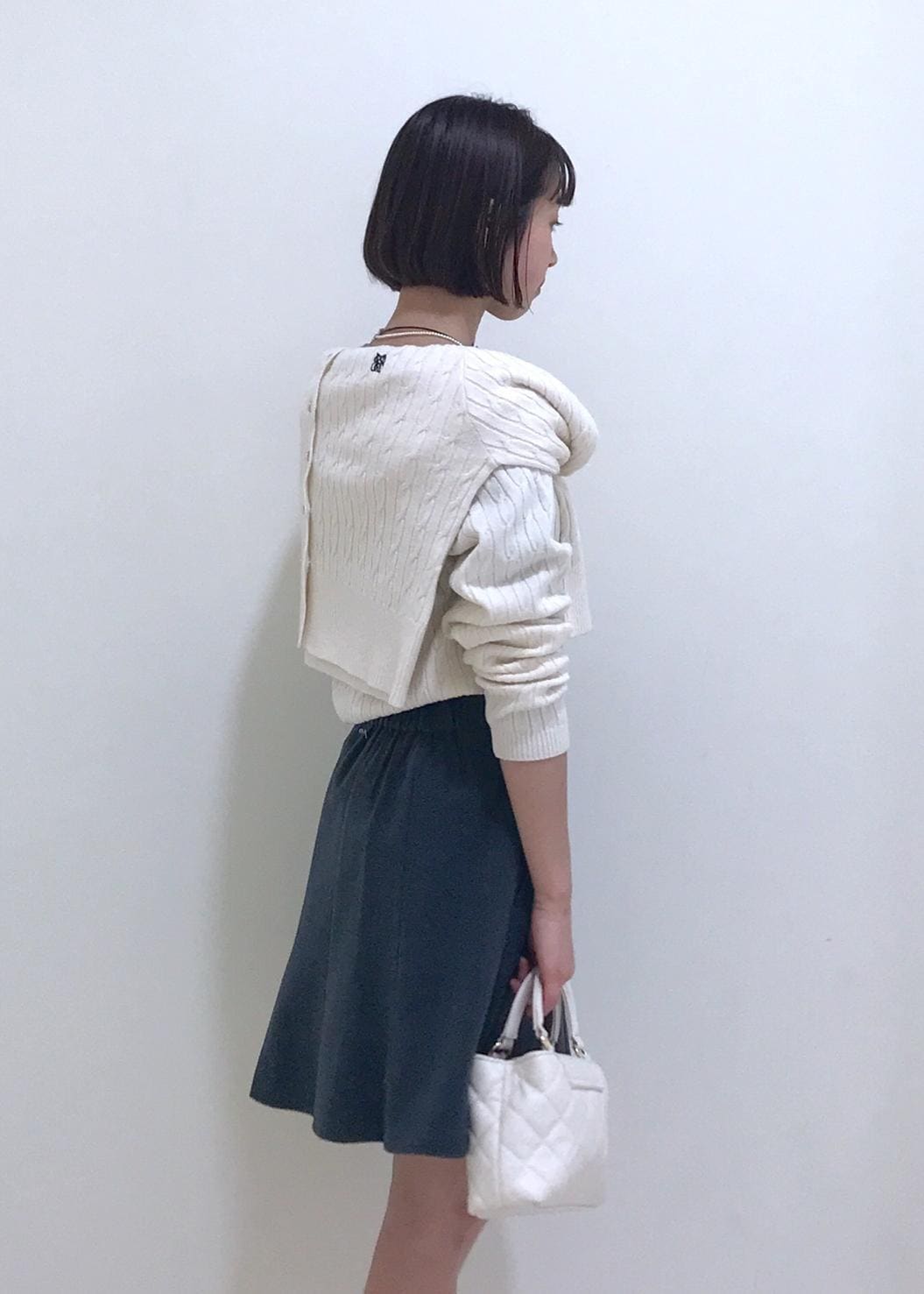 短丈のケーブルニットはハイウエストのミニスカートはバランスが取りやすく相性抜群!
