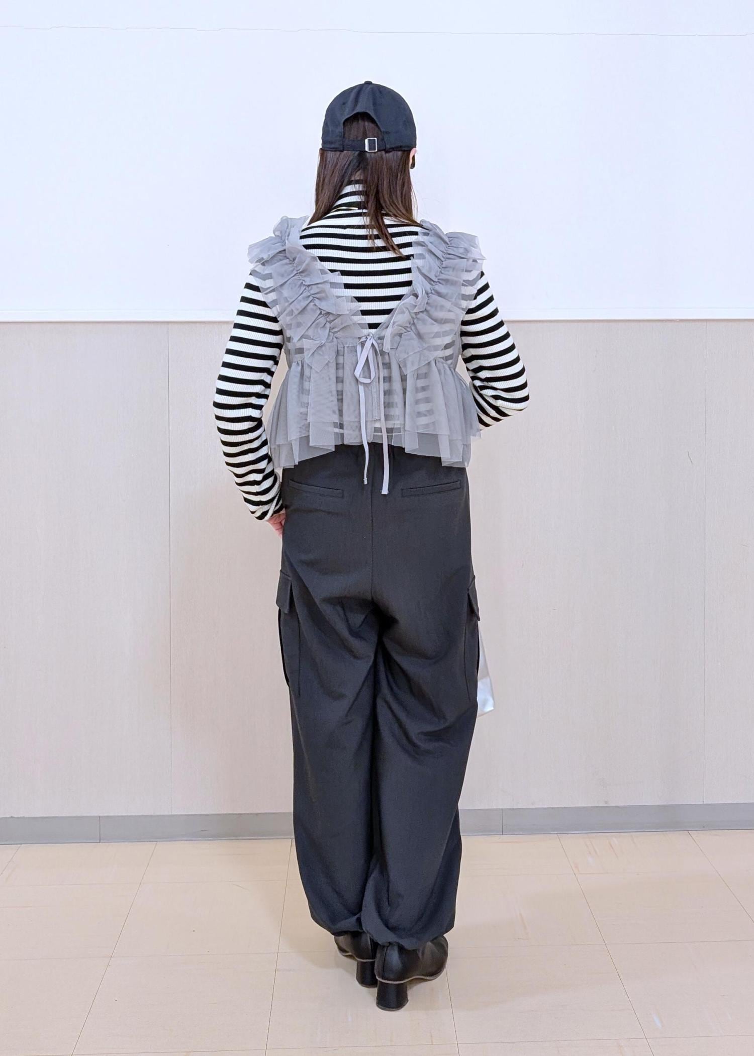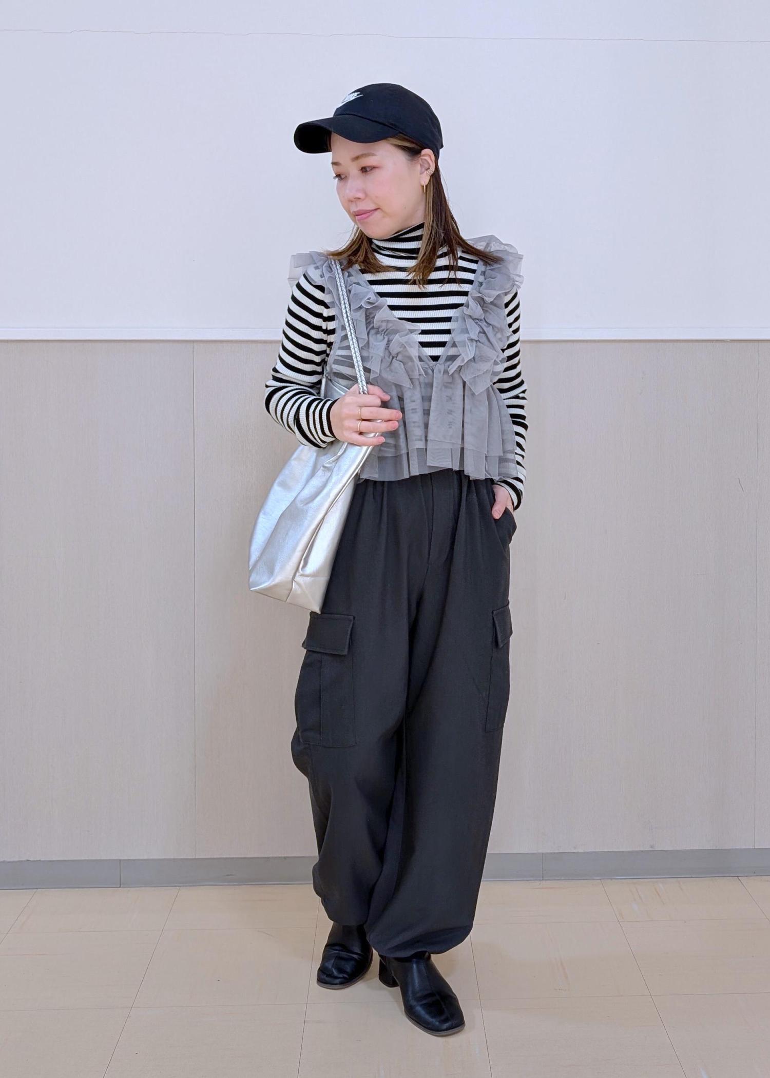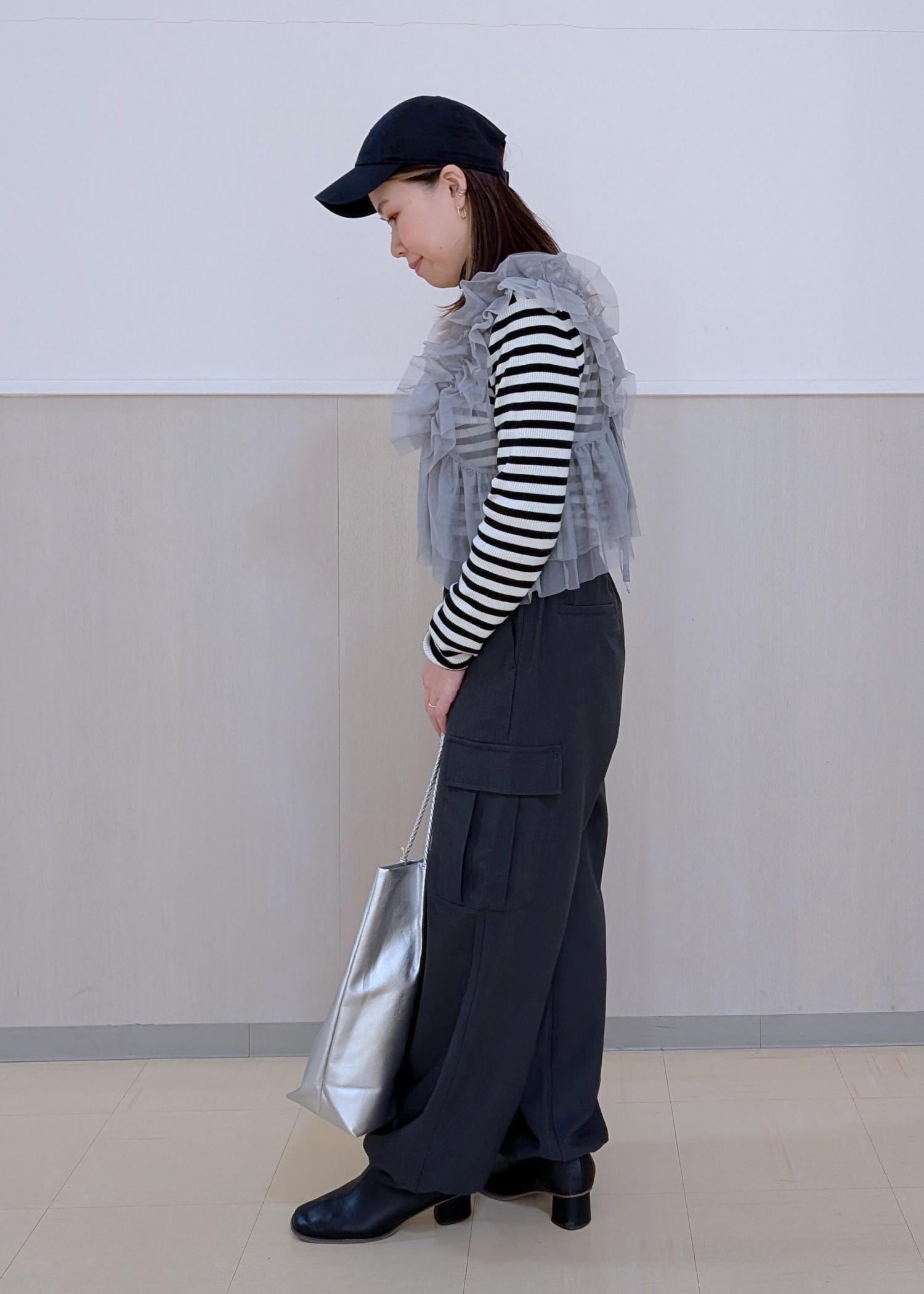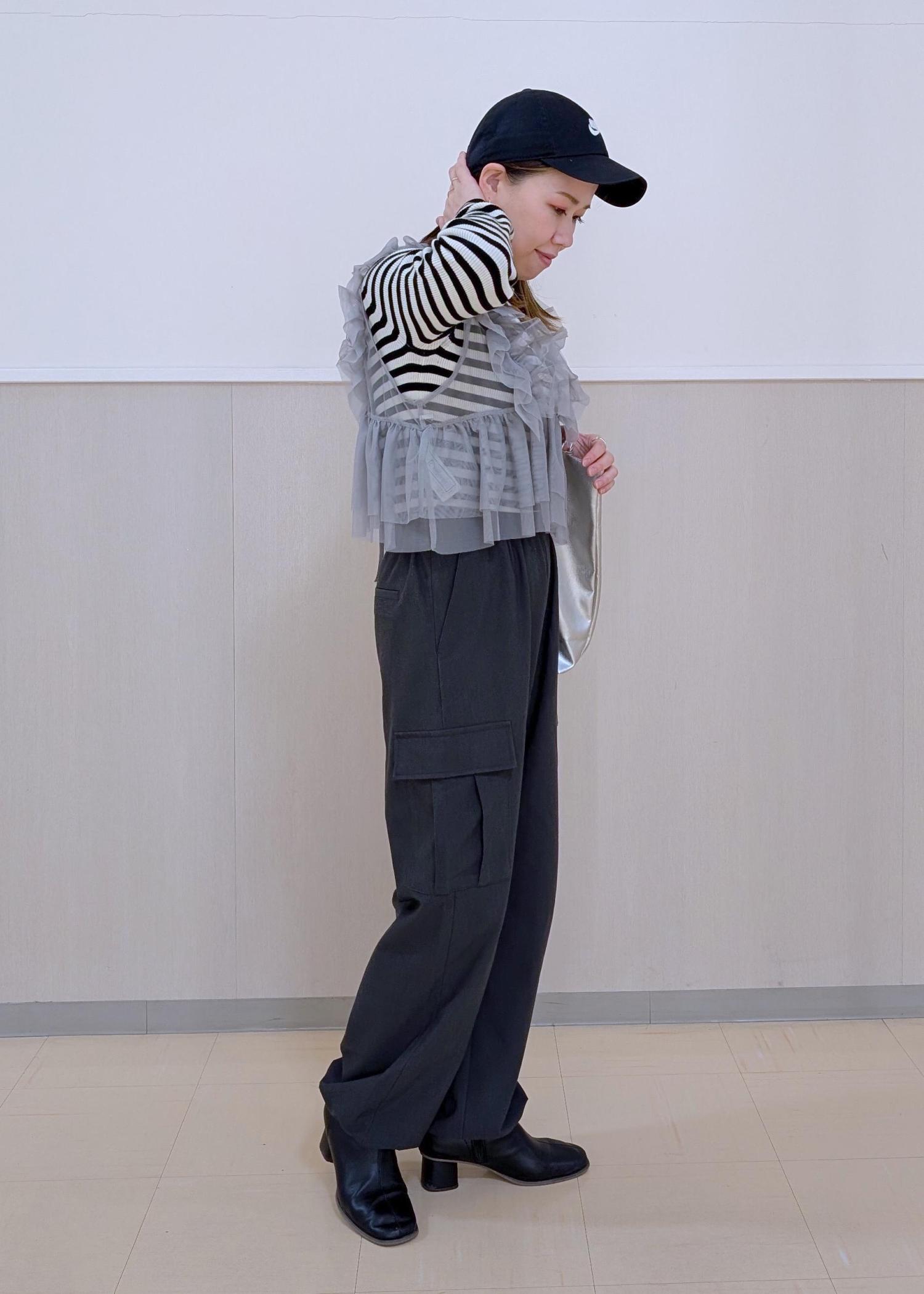 カーゴパンツ+ヒールを合わせることでカジュアルになりすぎないようにバランスが取れるのでオススメです♪