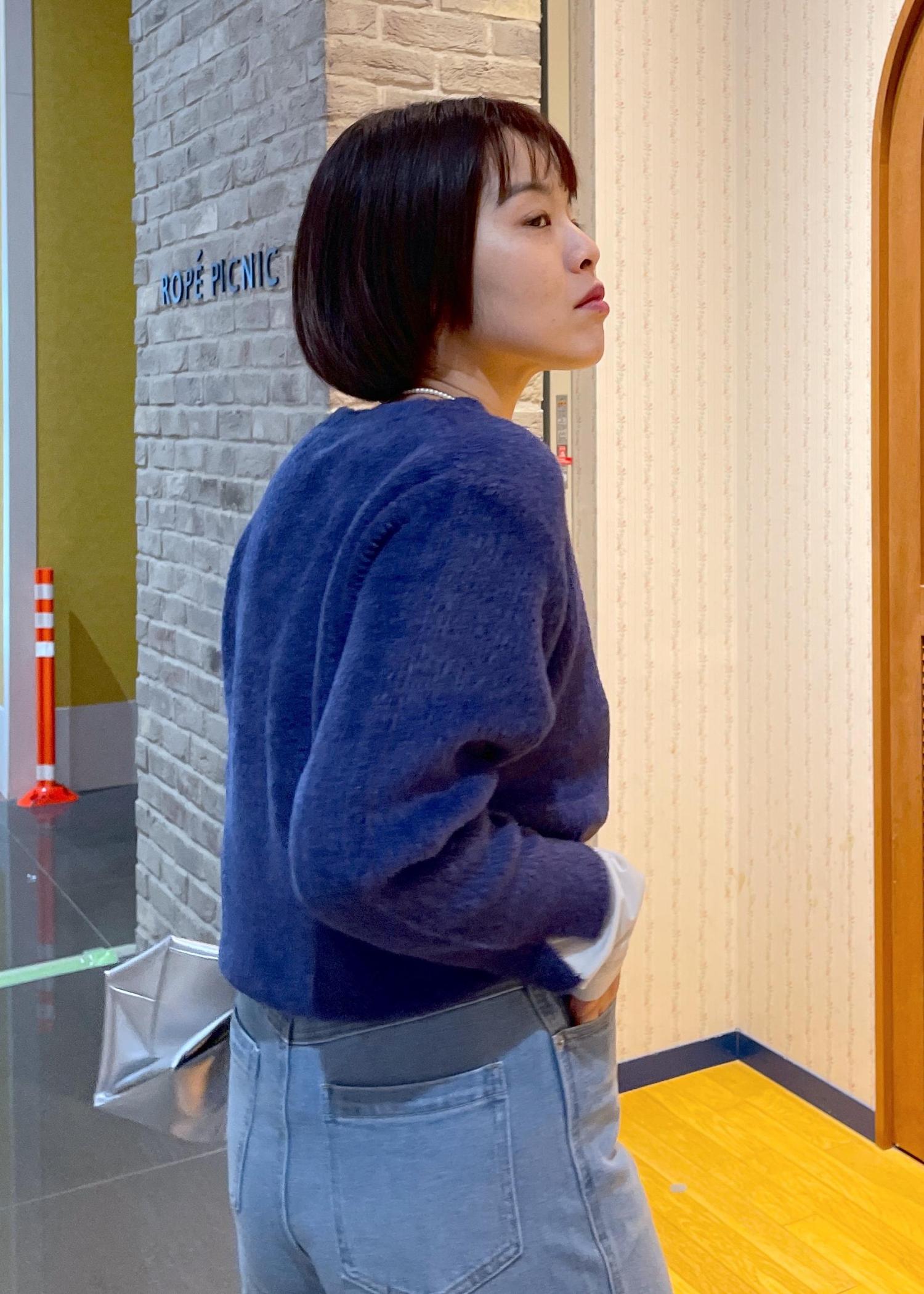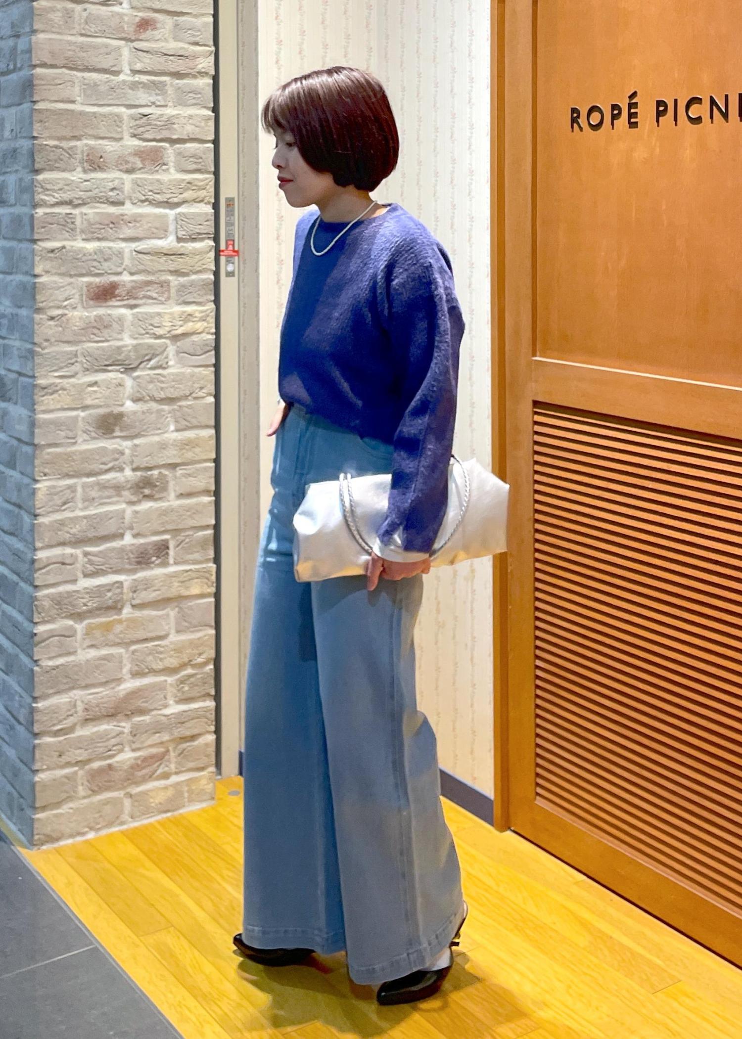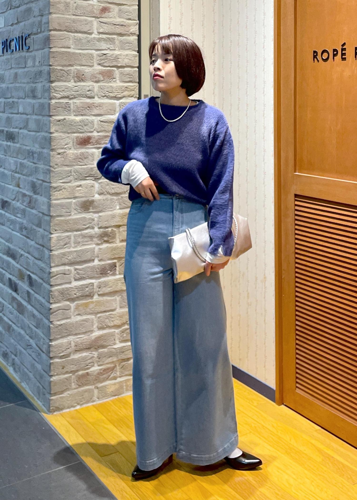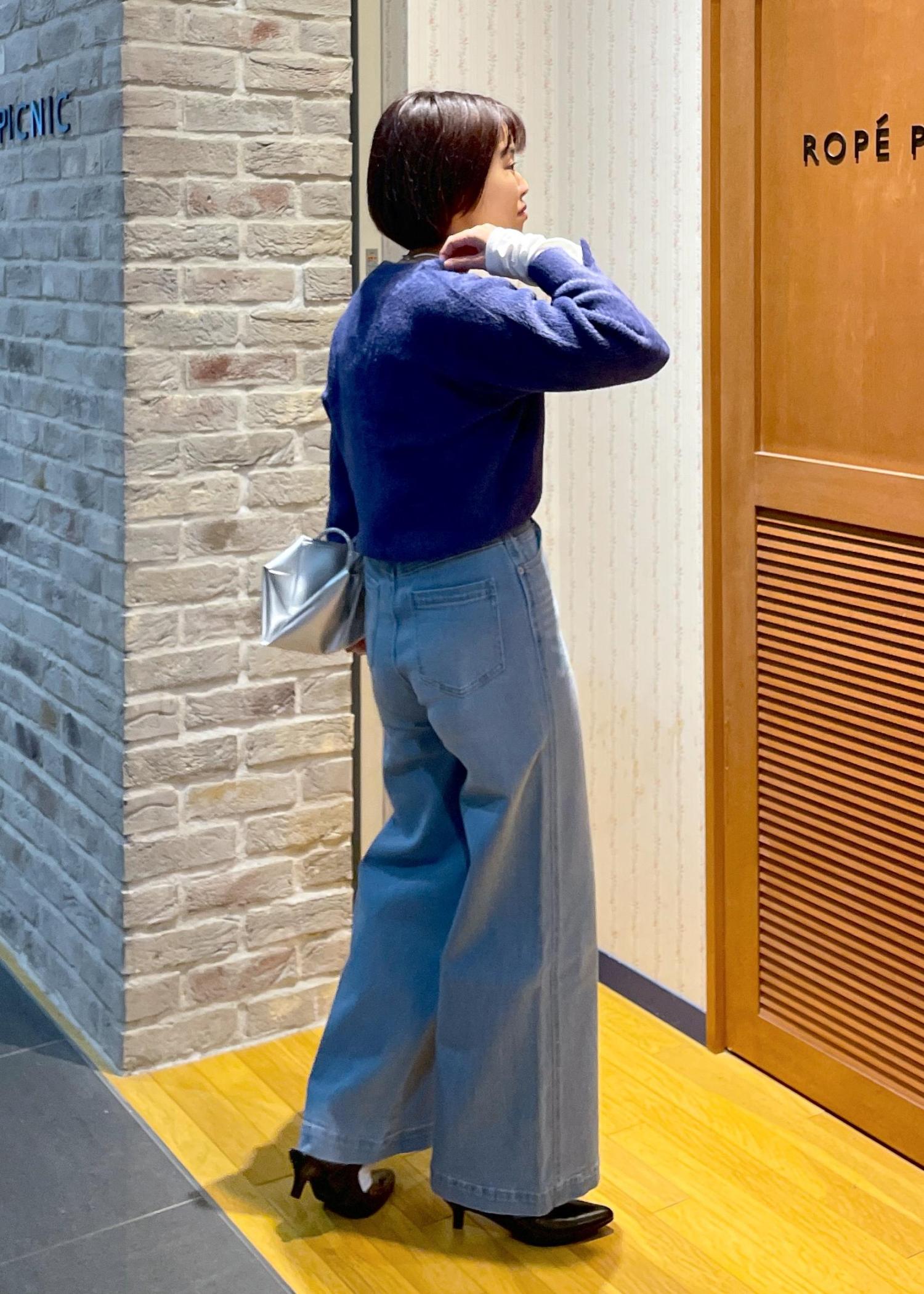 少し甘めな印象のニットなので、今回はネイビーを使って、少し知的な大人なコーデで合わせてみました◎