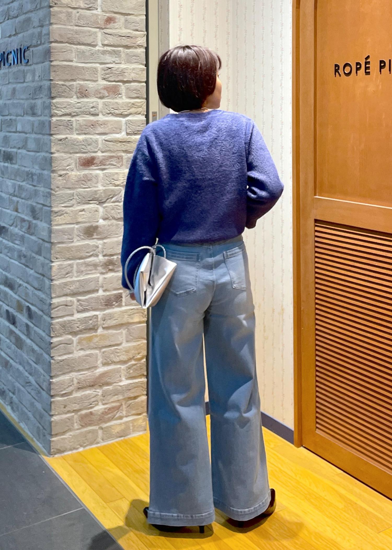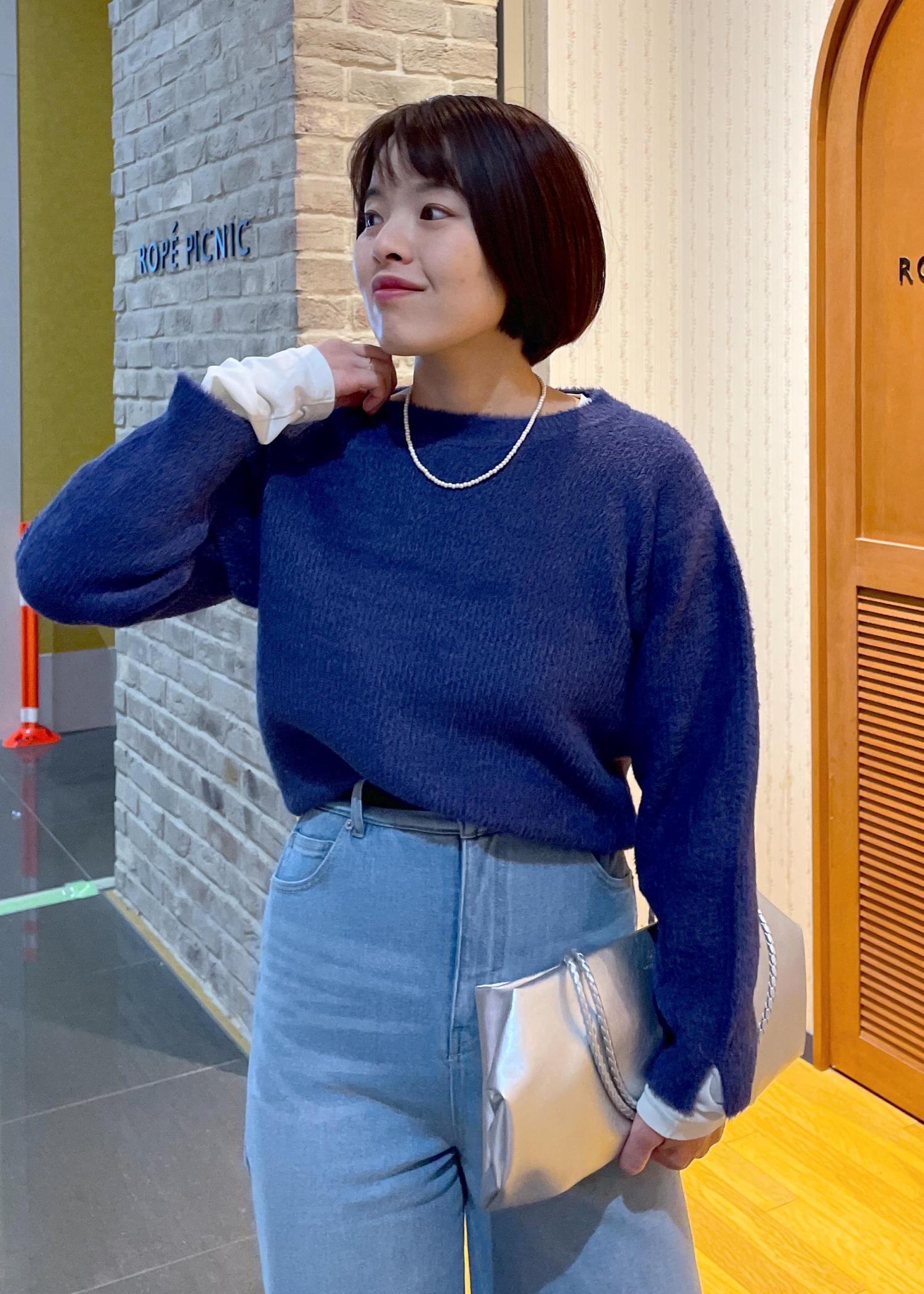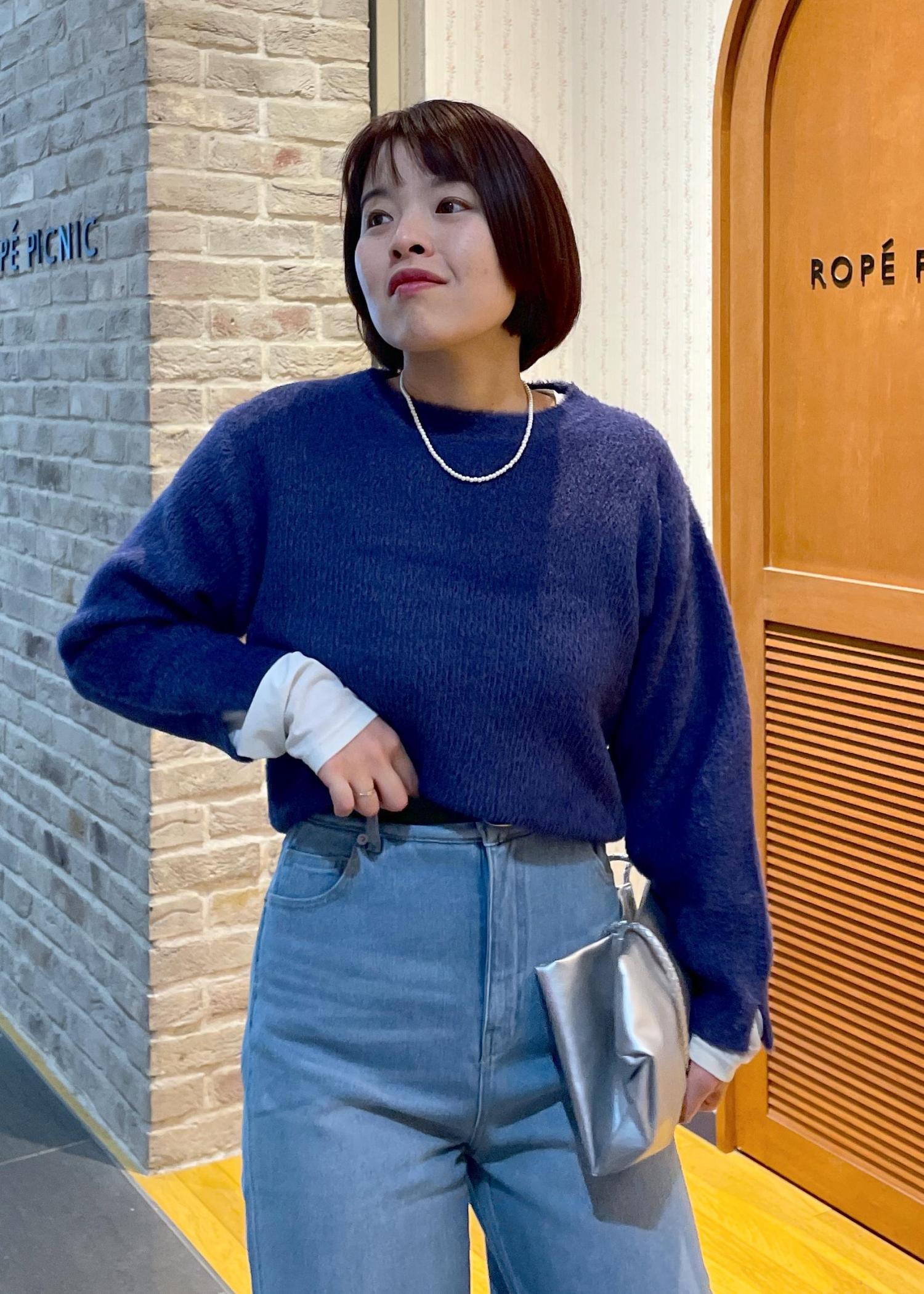 ふわふわな毛足が可愛いフェザーニットにワイドデニムを合わせたカジュアルコーデです!