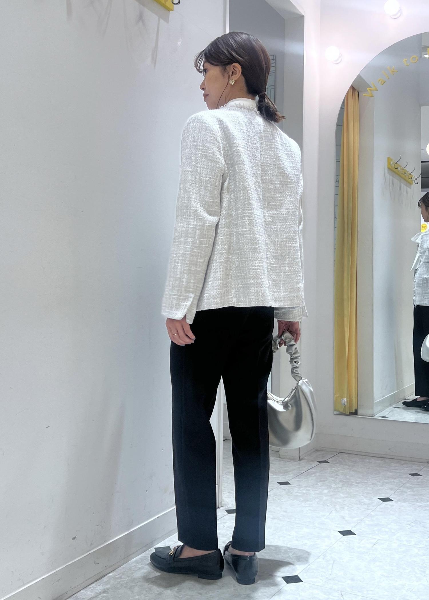 羽織るだけで華やかなツイードジャケットは、セレモニーシーンにおすすめ。