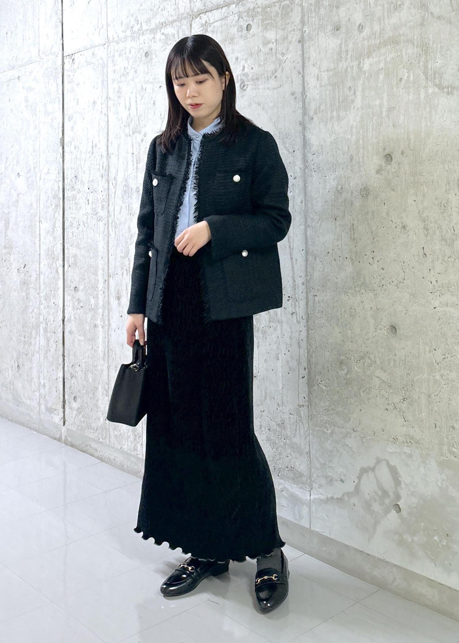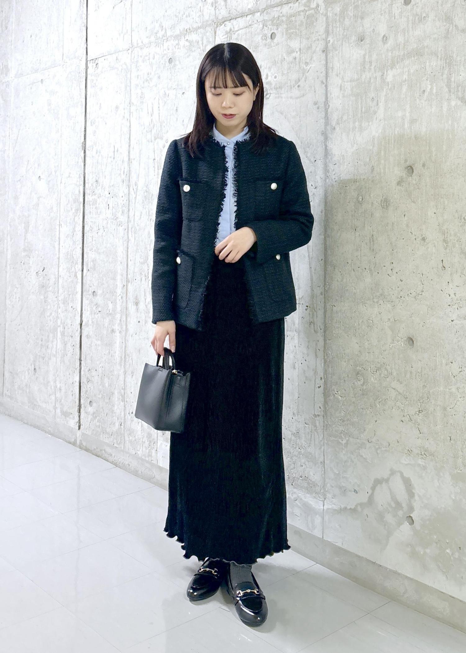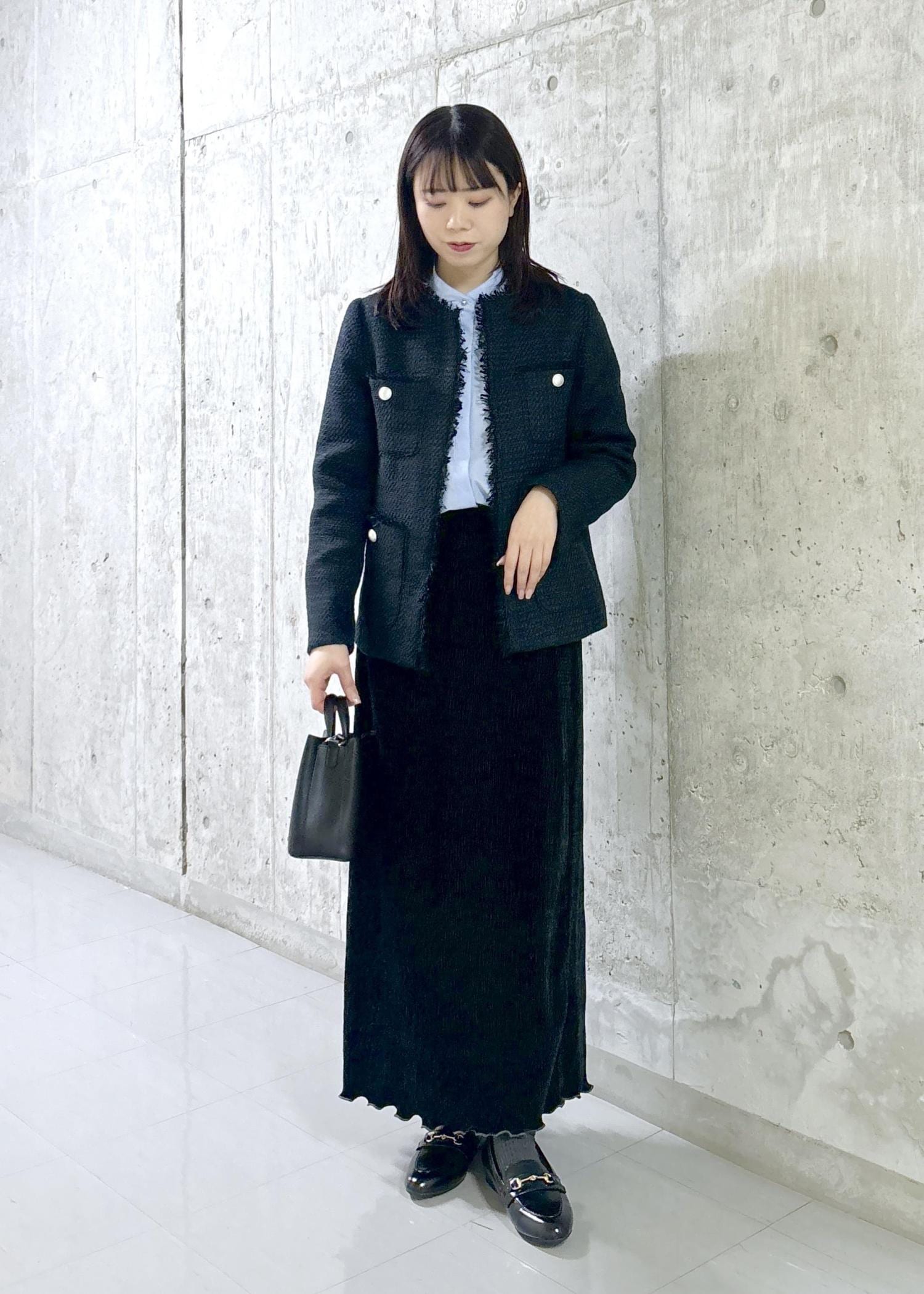 ネイビーのツイードジャケットとブルーのブラウスを合わせてセレモニースタイルに仕上げました◎