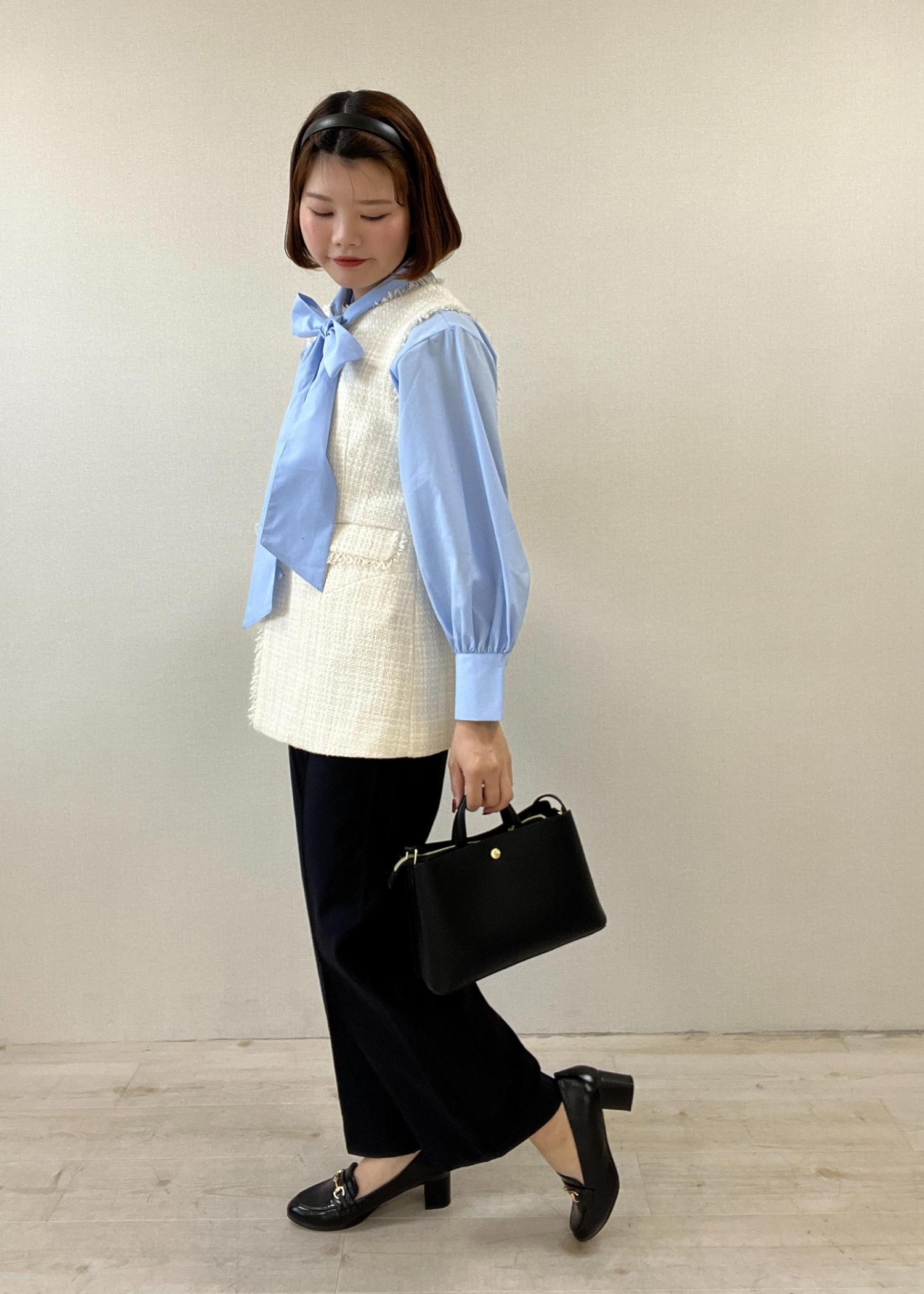 セレモニーシーンに大人気なツイードジレをメインに、綺麗めコーデを組んでみました!