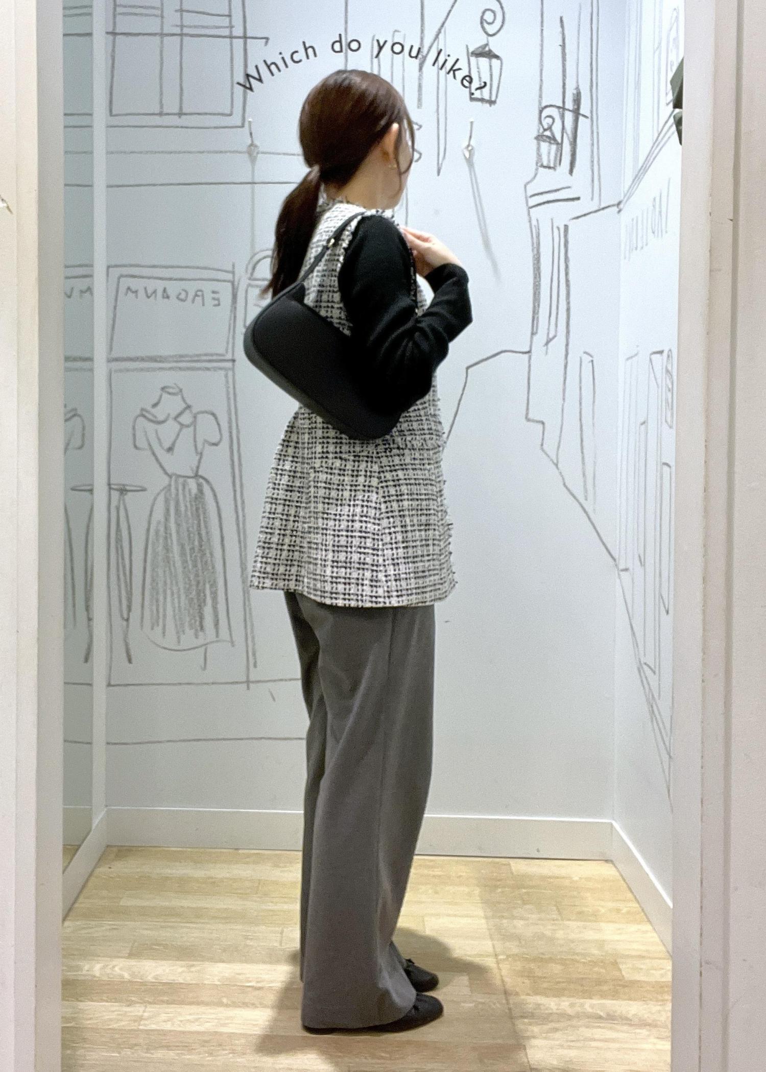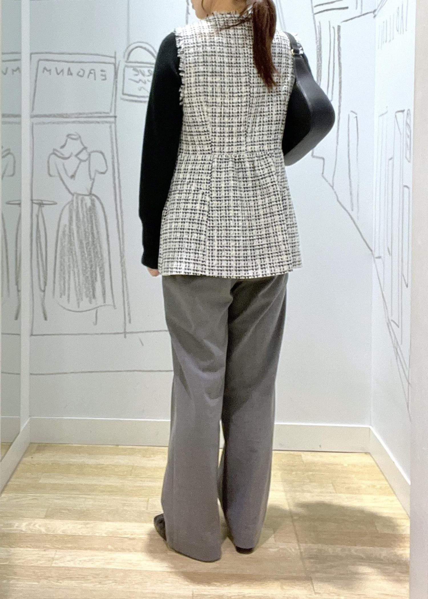 ジレはインナーやボトムをかえていただければ、オケージョンだけではなく、カジュアルにも普段にも合わせて着ていただけるのでおすすめです◎