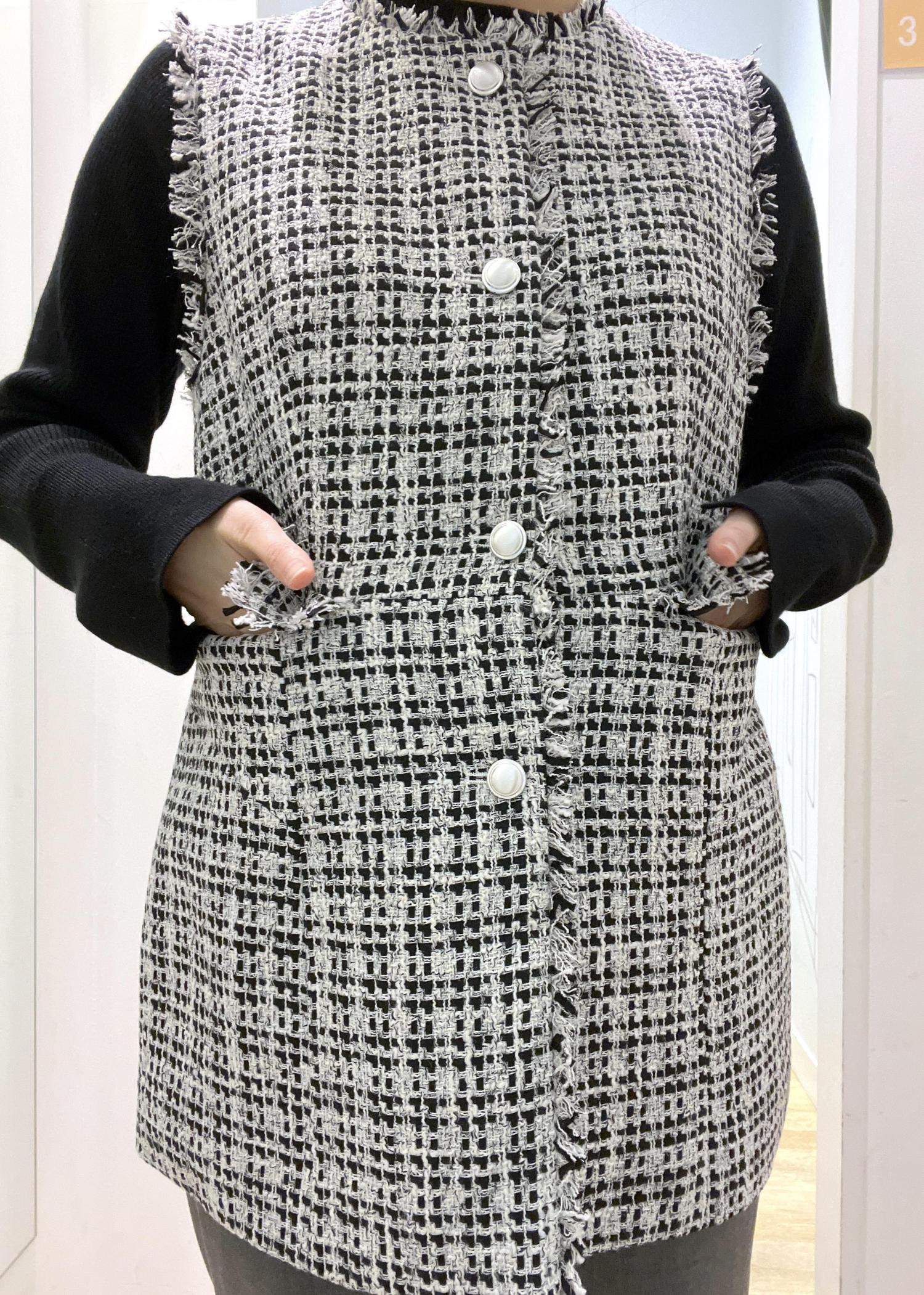 しっかりしたツイード生地ですが、柔らかくて羽織りやすいです。
