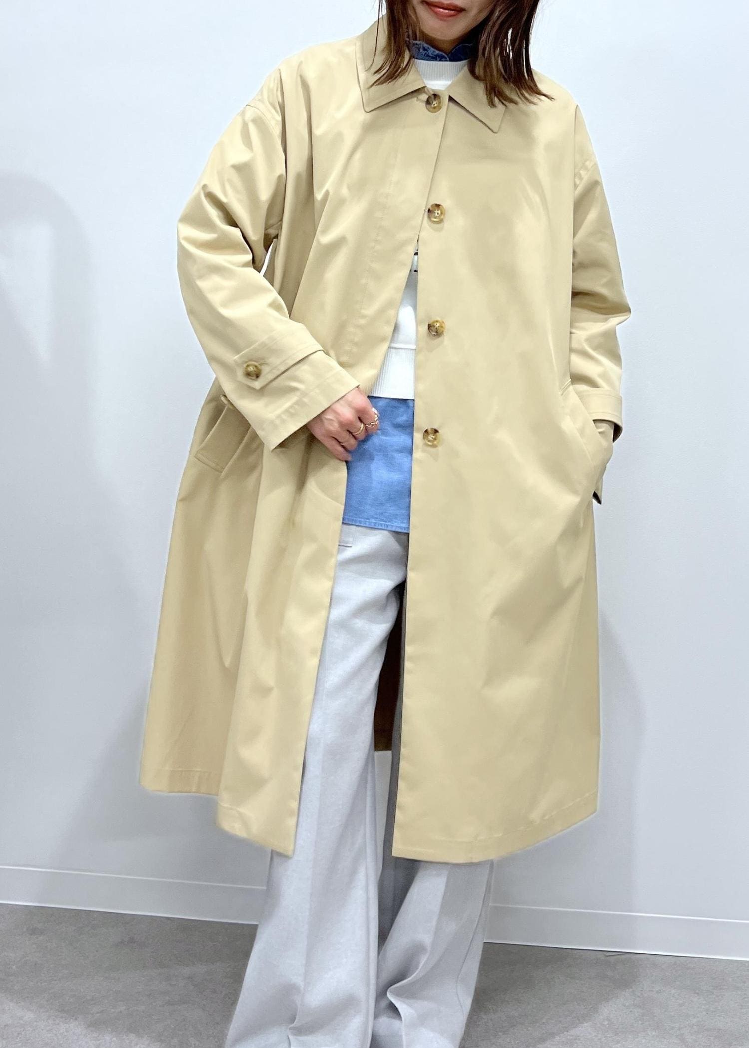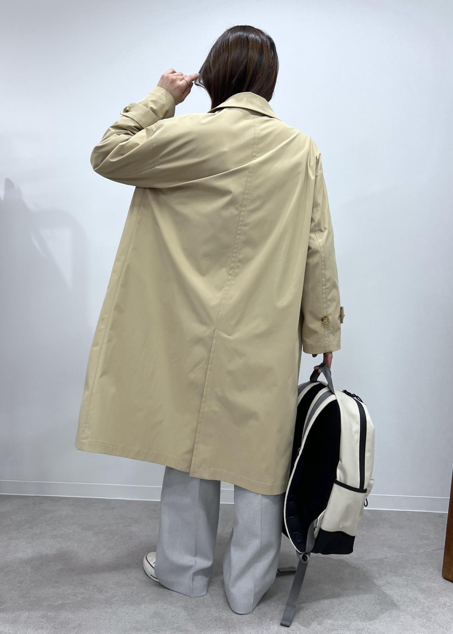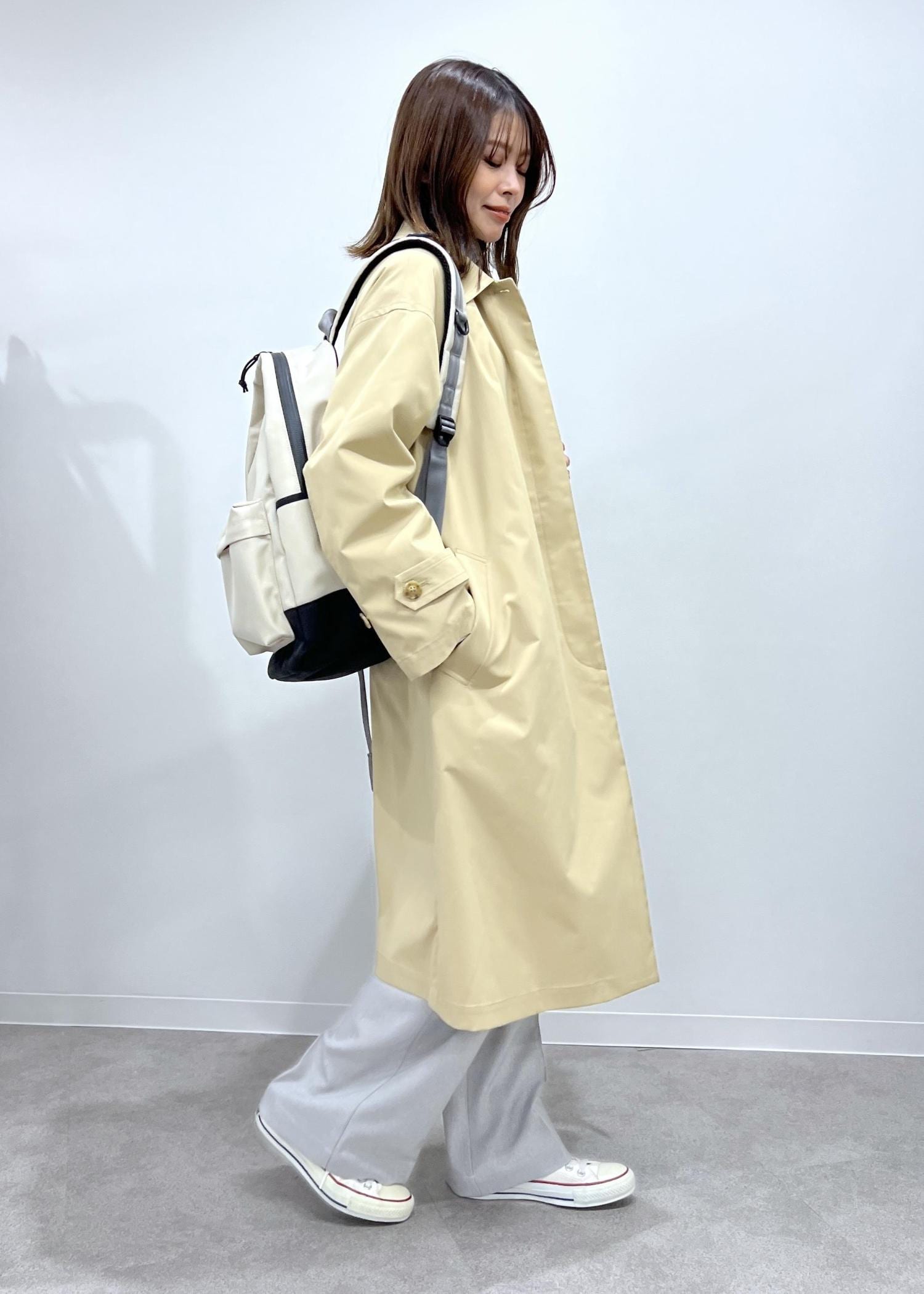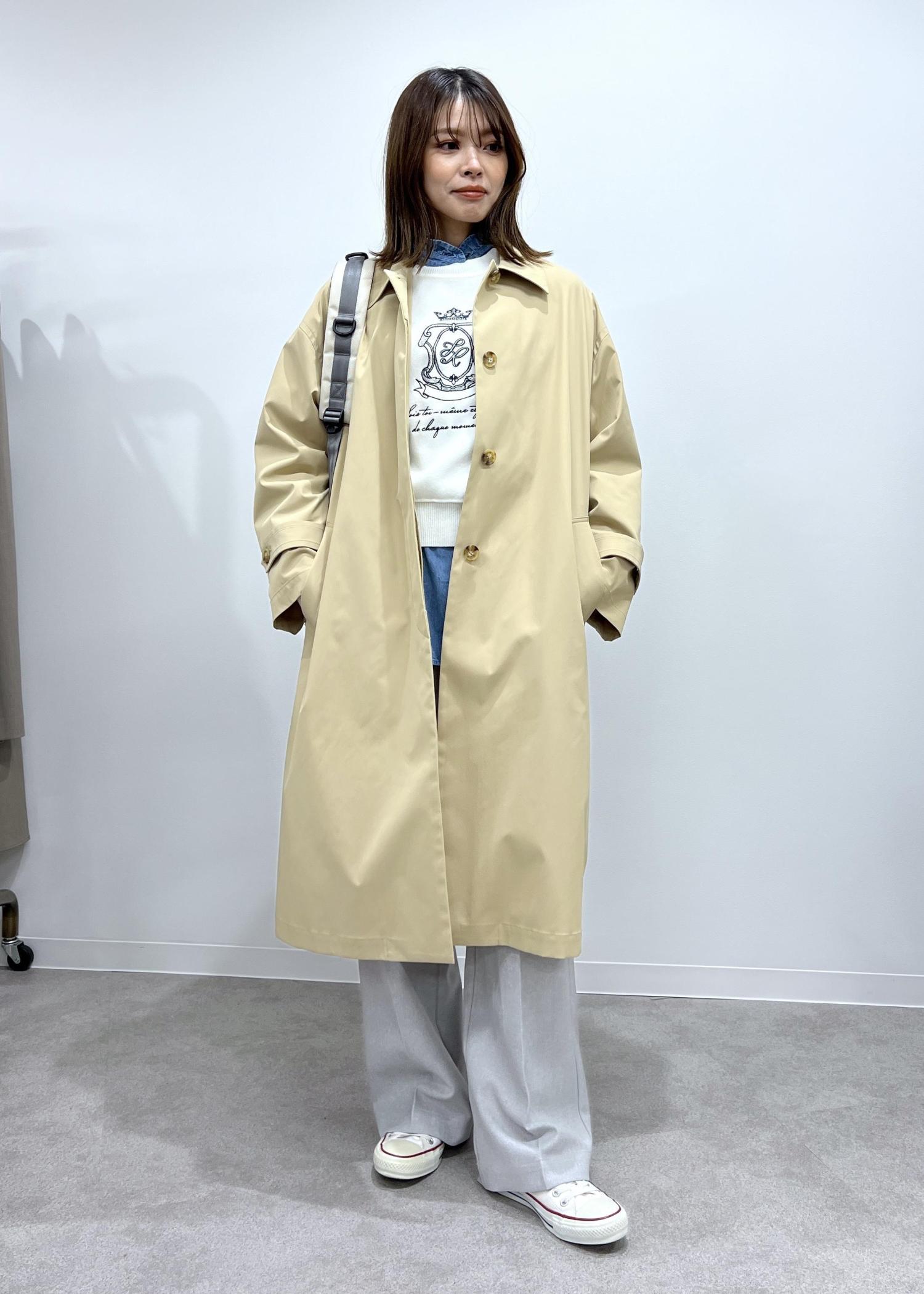 春アウターにおすすめのステンカラーコートは、大人カジュアルスタイルにぴったり。