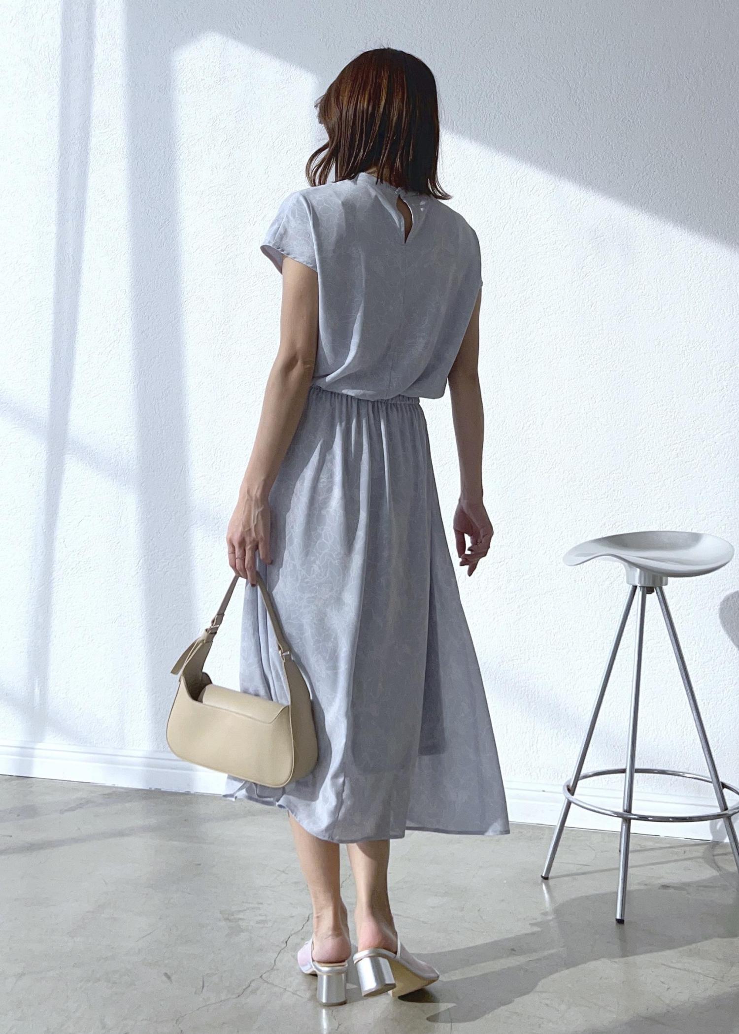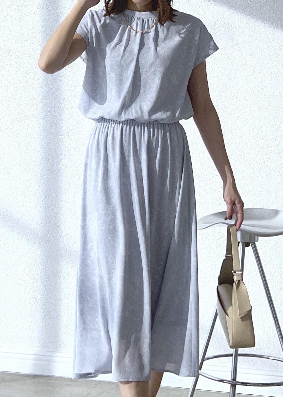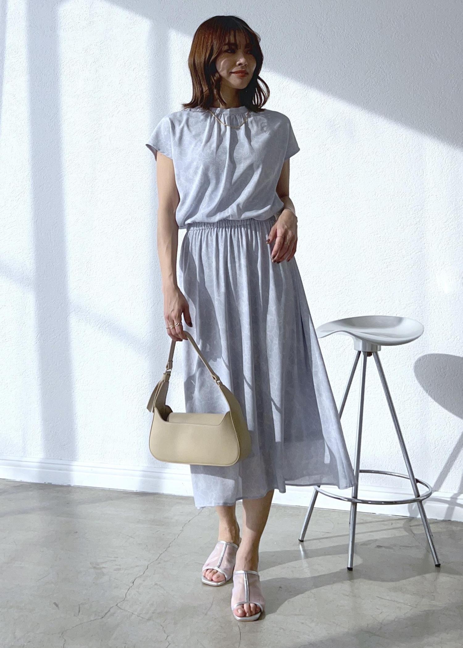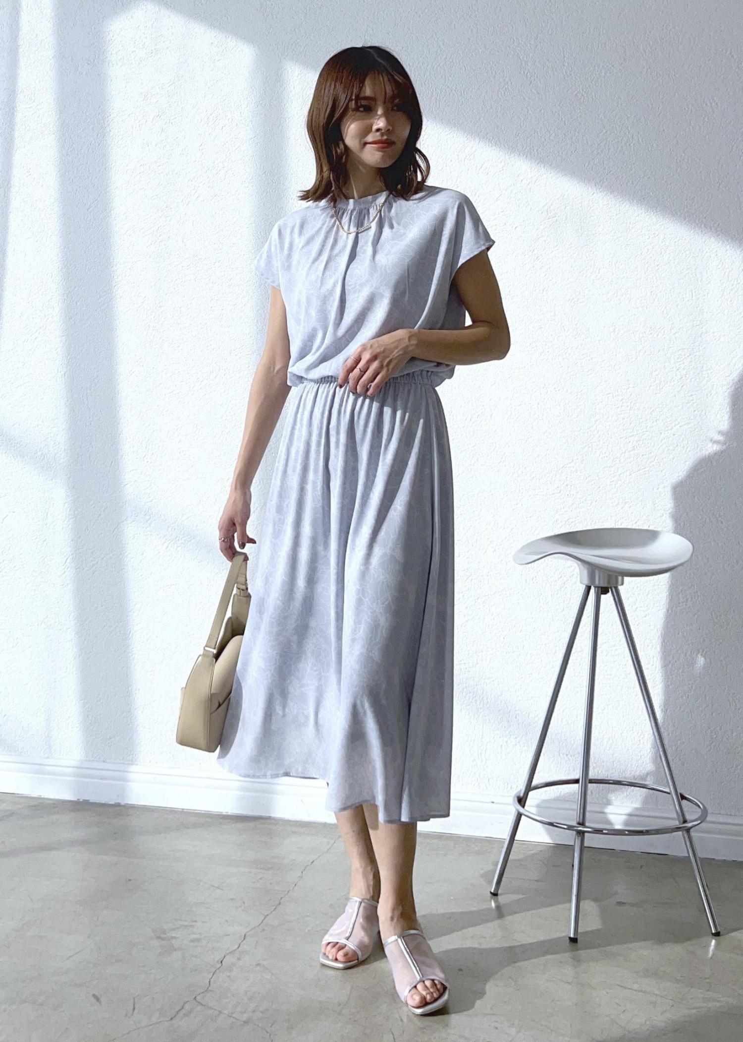 春夏らしい軽やかなワンピースは、ライトブルーで爽やかにお出かけスタイルです。