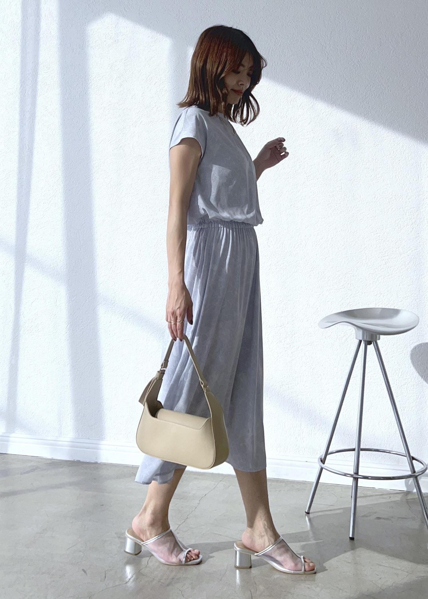 小物もシンプルなアイテムを合わせて、大人フェミニンな着こなしにしました。