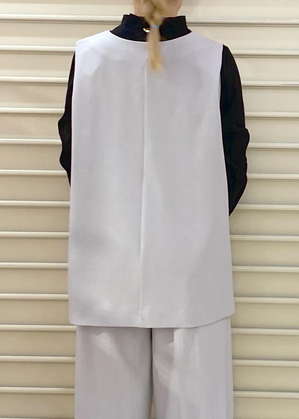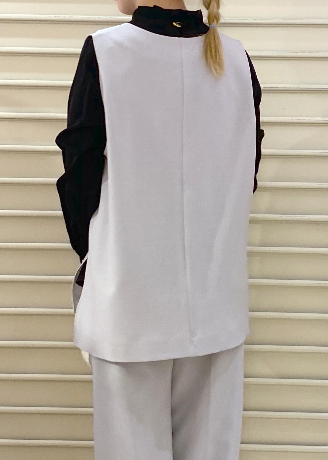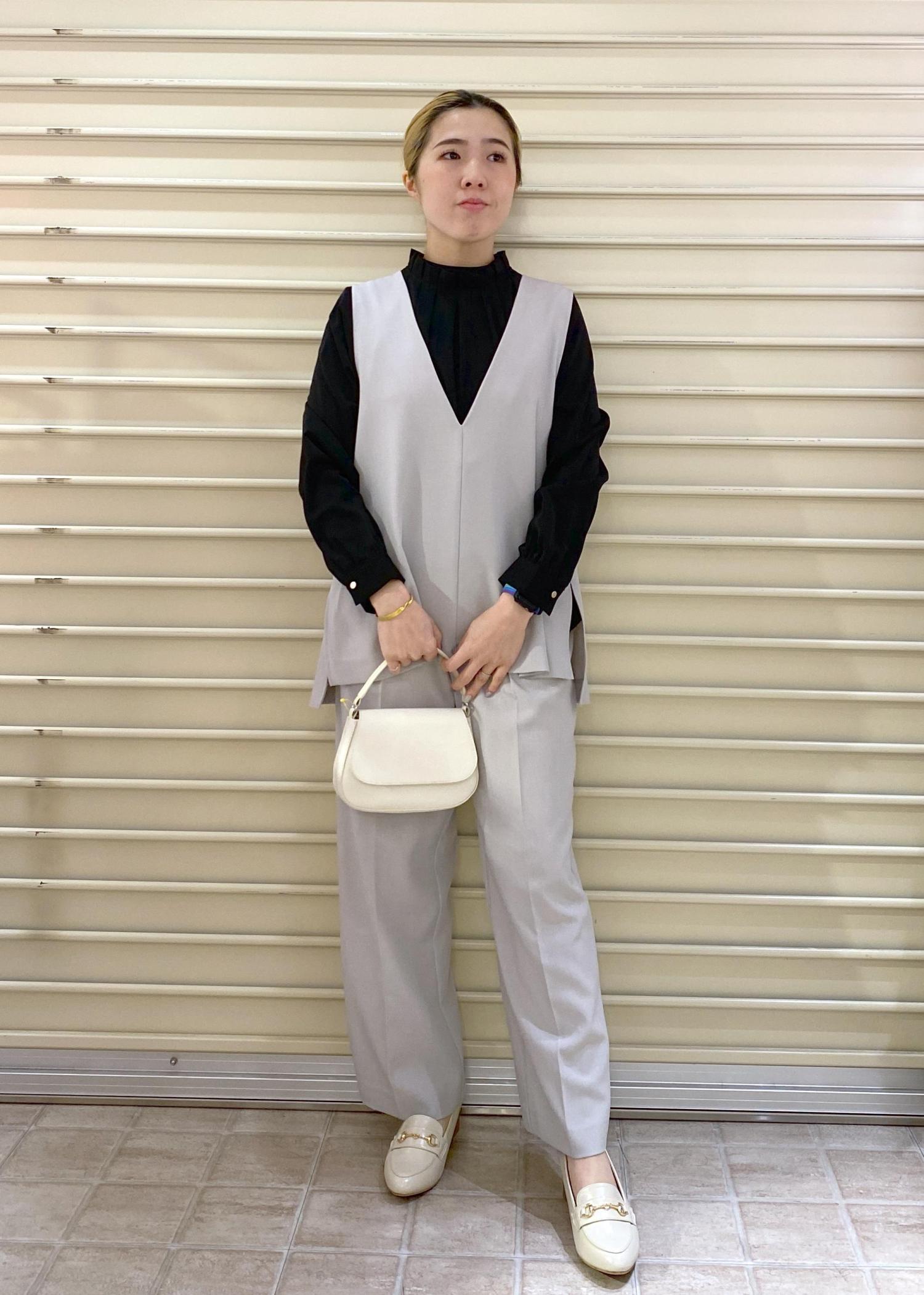 ジレは深めのVネックなので合わせるブラウスで雰囲気を変えられます。