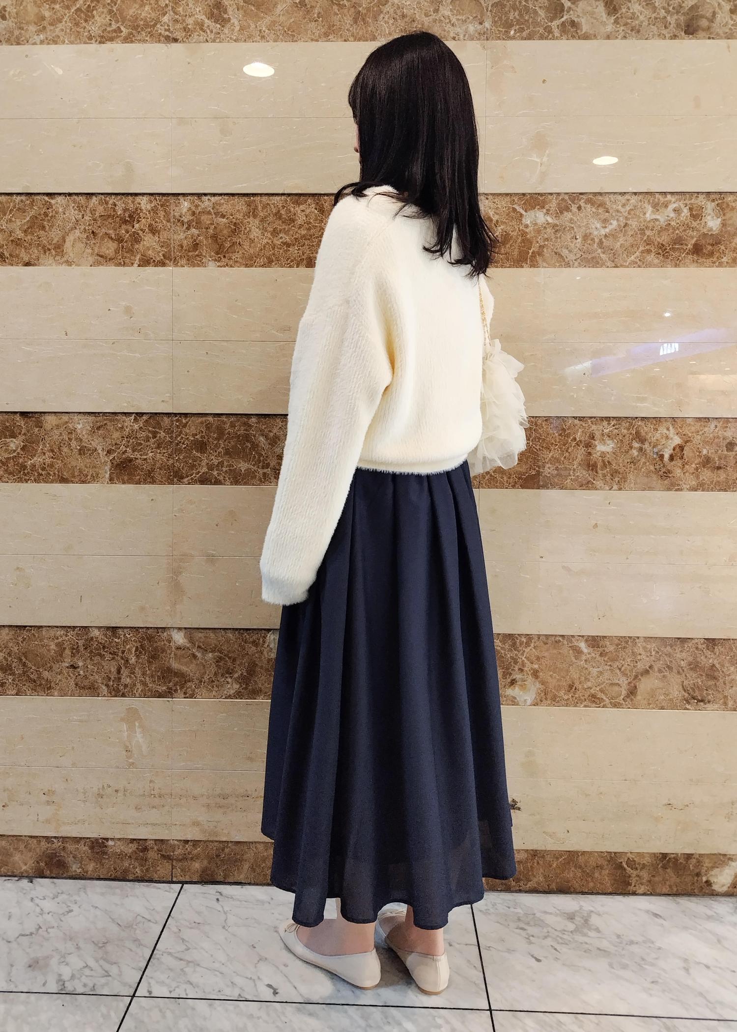 アウトレットROPÉ PICNIC着丈が選べるギャザースカートネイビー / 38T¥3,293レビューシフォン素材で軽い生地ですが透け感はなく、ペチコート無しで着用可能です。